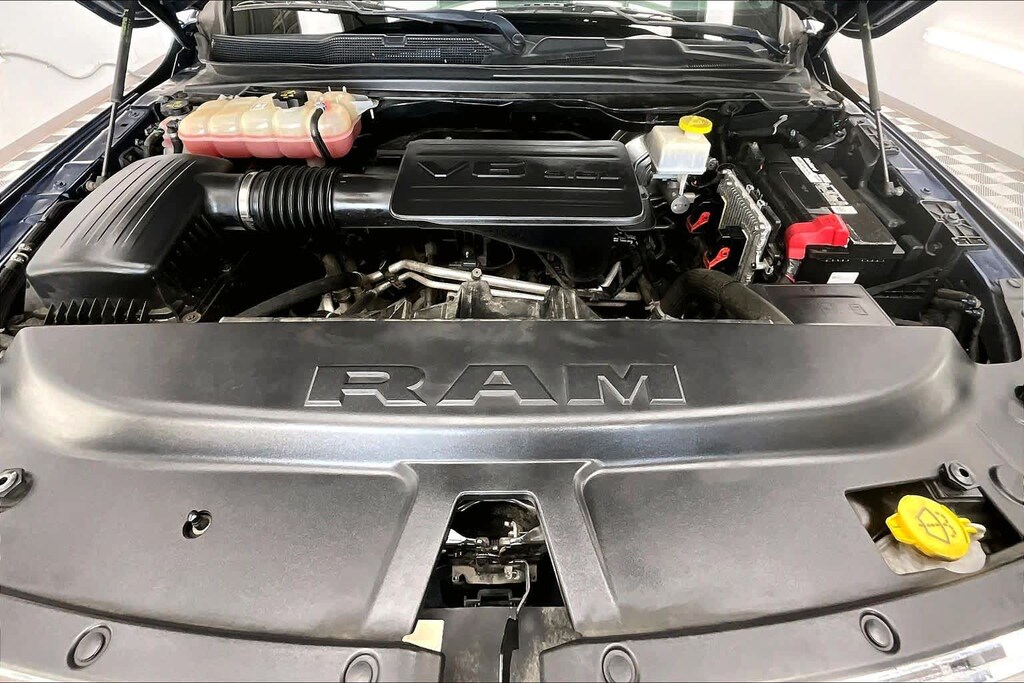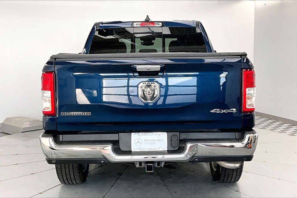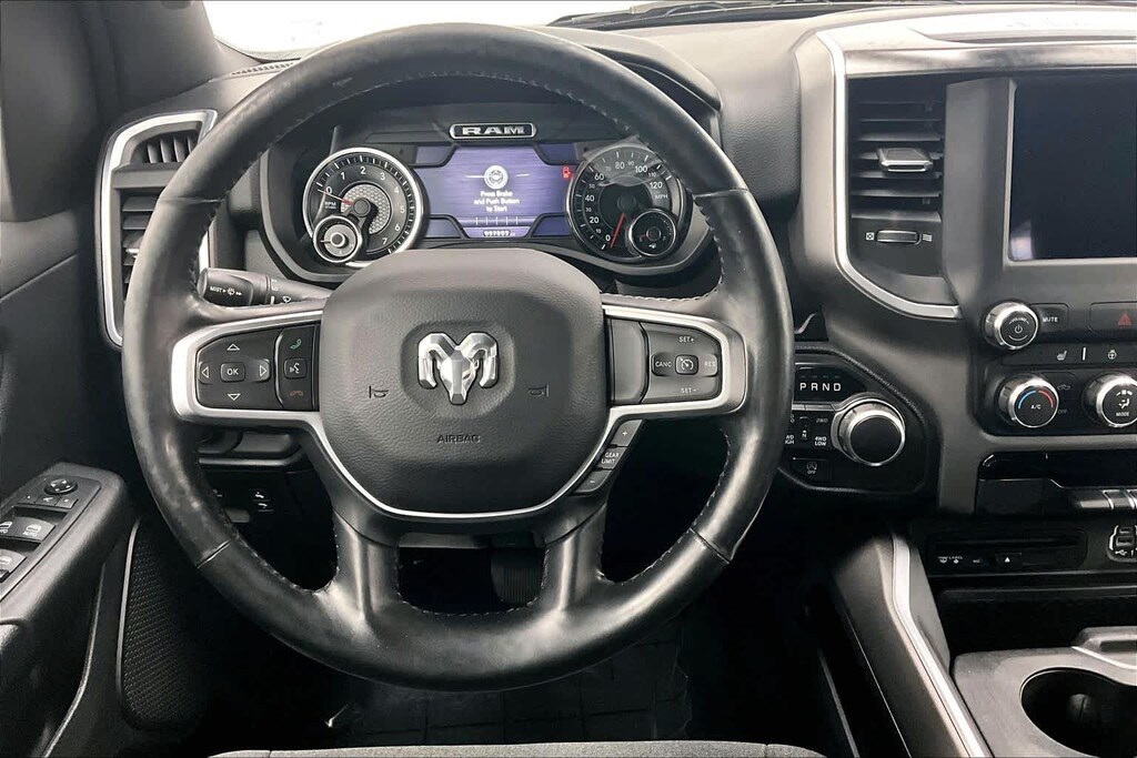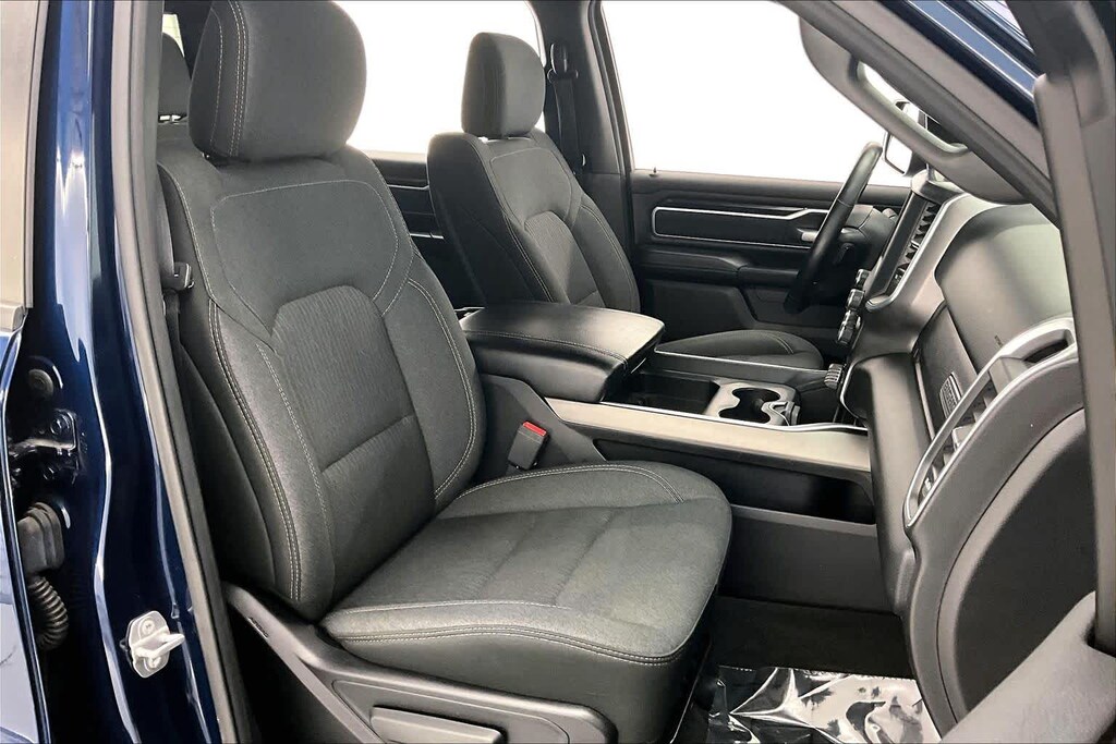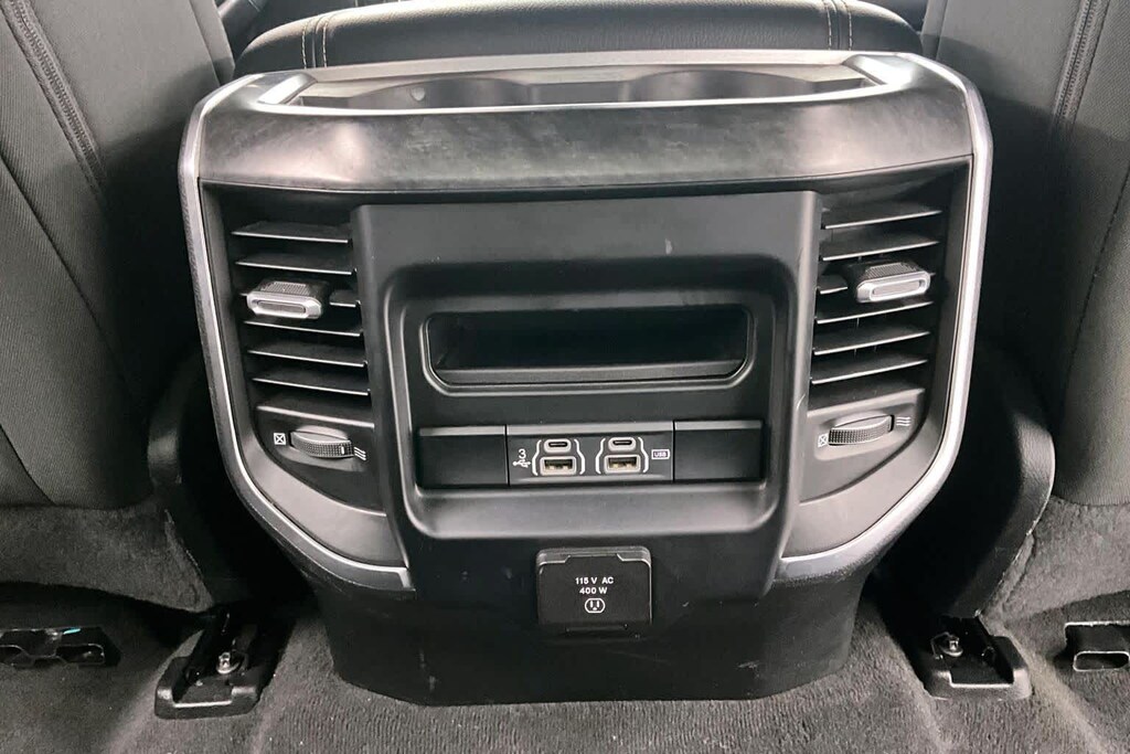 Big Horn Level 2 Equipment Group (115V Auxiliary Power Outlet, 115V Auxiliary Rear Power Outlet, 2 USB Full Function/Charge Only Media Hub, 400W Inverter, 8.4 Touchscreen Display, Air Conditioning ATC w/Dual Zone Control, Auto-Dimming Rear-View Mirror, Big Horn IP Badge, Class IV Receiver Hitch, Cluster 7.0 TFT Color Display, Dampened Tailgate, Foam Bottle Insert (Door Trim Panel), Glove Box Lamp, Heated Front Seats, Heated Steering Wheel, Integrated Center Stack Radio, ParkSense Front/Rear Park Assist w/Stop, Power 4-Way Driver Lumbar Adjust, Power 8-Way Driver Seat, Power Adjustable Pedals, Power Heated Fold Away Mirrors, Radio: Uconnect 4 w/8.4 Display, Rear Dome w/On/Off Switch Lamp, Rear Power Sliding Window, Rear Window Defroster, Remote Start System, Security Alarm, Single Disc Remote CD Player, SiriusXM Satellite Radio, Sun Visors w/Illuminated Vanity Mirrors, and Universal Garage Door Opener), Quick Order Package 23Z Big Horn/Lone Star (Steering Wheel Mounted Audio Controls), Trailer Tow Group (Add Class IV Receiver Hitch, Exterior Mirrors Courtesy Lamps, Exterior Mirrors w/Supplemental Signals, Power Black Trailer Tow Mirrors, Trailer Brake Control, and Trailer Tow Mirrors), 1500 Big Horn/Lone Star, 4WD, 3 Rear Seat Head Restraints, 4 Way Front Headrests, 4-Wheel Disc Brakes, 48V Belt Starter Generator, 6 Speakers, ABS brakes, Air Conditioning, Alloy wheels, AM/FM radio, Brake assist, Bumpers: chrome, Cloth Bench Seat, Compass, Delay-off headlights, Driver door bin, Dual front impact airbags, Dual front side impact airbags, Electronic Stability Control, Front & Rear Rubber Floor Mats, Front anti-roll bar, Front Center Armrest w/Storage, Front fog lights, Front reading lights, Front Seat Back Map Pockets, Front wheel independent suspension, Fully automatic headlights, GPS Antenna Input, Heated door mirrors, Illuminated entry, Leather steering wheel, Low tire pressure warning, Occupant sensing airbag, Outside temperature display, Overhead airbag, Overhead console, Panic alarm, ParkView Rear Back-Up Camera, Passenger door bin, Passenger vanity mirror, Power door mirrors, Power steering, Power windows, Radio data system, Radio: Uconnect 3 w/5 Display, Rear 60/40 Folding Seat, Rear anti-roll bar, Rear seat center armrest, Rear step bumper, Rear Wheelhouse Liners, Remote keyless entry, Speed control, Split folding rear seat, Tachometer, Telescoping steering wheel, Tilt steering wheel, Traction control, Trip computer, Variably intermittent wipers, Voltmeter, Wheel to Wheel Side Steps, Wheels: 18 x 8, and Wheels: 20 x 9 Aluminum Chrome Clad. 1500 Big Horn/Lone Star, 4WD, 115V Auxiliary Power Outlet, 115V Auxiliary Rear Power Outlet, 2 USB Full Function/Charge Only Media Hub, 400W Inverter, 8.4 Touchscreen Display, Add Class IV Receiver Hitch, Air Conditioning ATC w/Dual Zone Control, Auto-Dimming Rear-View Mirror, Big Horn IP Badge, Big Horn Level 2 Equipment Group, Class IV Receiver Hitch, Cluster 7.0 TFT Color Display, Dampened Tailgate, Exterior
