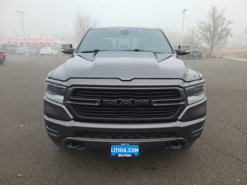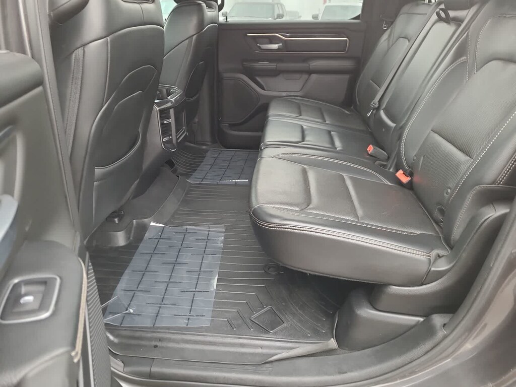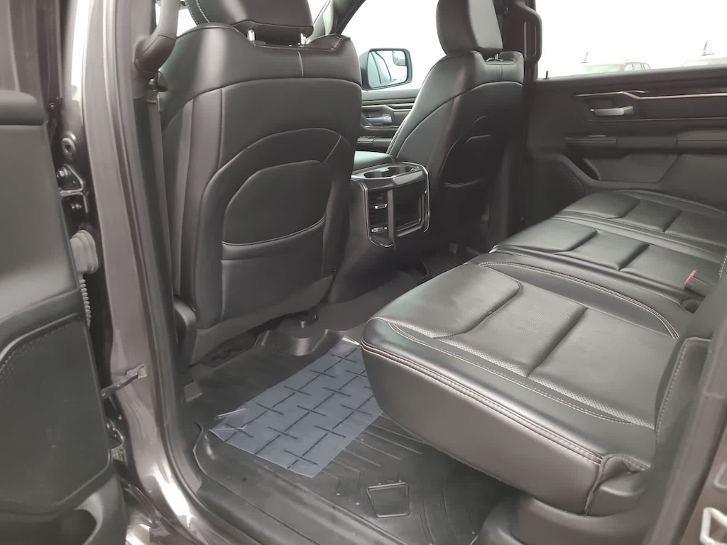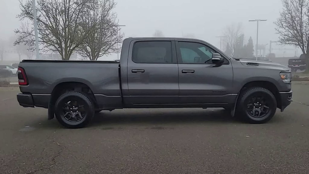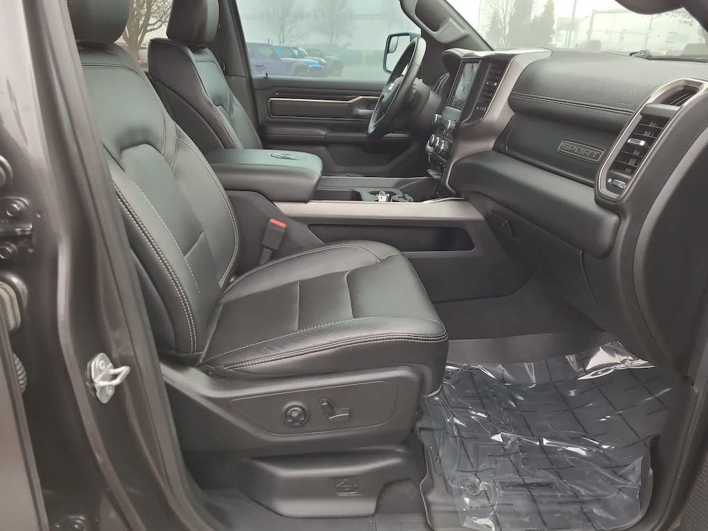 BLACK, LEATHER-FACED FRONT VENTED BUCKET SEATS Bucket Seats, Front Heated Seats, Heated Steering Wheel, 3 Rear Seat Head Restraints, Power 8-Way Adjustable Front Seats, Power 4-Way Front Passenger Lumbar Adjust, Rear 60/40 Split Folding Bench Seat, Front Seatback Map Pockets, Front Ventilated Seats, 4-Way Adjustable Front Headrests, Power 4-Way Driver Lumbar Adjust, CLASS IV RECEIVER HITCH, REMOTE START SYSTEM, QUICK ORDER PACKAGE 25L SPORT Engine: 5.7L HEMI VVT V8 w/FuelSaver MDS, Transmission: 8-Speed Automatic, Google Android Auto®, Instrument Cluster, Rear 60/40 Split Folding Bench Seat, Body-Colour Door Handles, Rear Wheel Spats, 4-Way Adjustable Front Headrests, Front Heavy-Duty Shock Absorbers, Power 4-Way Driver Lumbar Adjust, Overhead LED Lamps, Heated Exterior Mirrors, Auto-Dimming Exterior Driver Mirror, Manual 4-Way Front Passenger Seat, 3 Rear Seat Head Restraints, Front Seatback Map Pockets, Body-Colour Rear Bumper w/Step Pads, Apple CarPlay® Capable, Premium Overhead Console, Sport Group, Bucket Seats, Full-Size Temporary Use Spare Tire, RAMs Head Badge, Exterior Mirrors w/Turn Signals, Power Heated Manual Folding Mirrors, Exterior Mirrors w/Courtesy Lamps, Rear Heavy-Duty Shock, TRANSMISSION: 8-SPEED AUTOMATIC (STD), ENGINE: 5.7L HEMI VVT V8 W/FUELSAVER MDS (STD). Ram Sport with Granite Crystal Metallic exterior and Black interior features a 8 Cylinder Engine with 395 HP at 5600 RPM*.