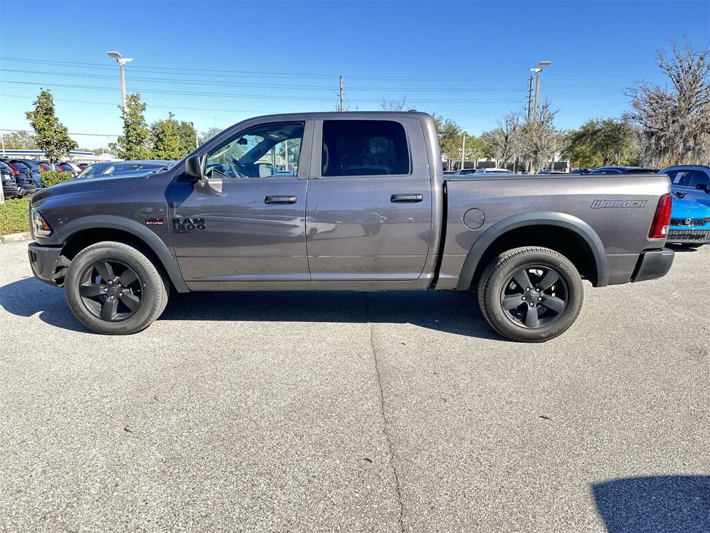 CLEAN AUTO CHECK, CLEAN CARFAX, ONE OWNER, 1500 Classic Warlock, 4D Crew Cab, HEMI 5.7L V8 Multi Displacement VVT, 8-Speed Automatic, 4WD, Granite Crystal Metallic Clearcoat, Black Cloth, 4x4 Decal, 4x4 Flat Black Badge, Bi-Function Halogen Projector Headlamps, Black Exterior Truck Badging, Black Grille w/RAM Lettering, Black Headlamp Bezels, Black Headlamp Filler Panel, Black Powder Coated Front Bumper, Black Powder Coated Rear Bumper, Black RAM Head Tailgate Badge, Black Wheel Flares, Dual Rear Exhaust w/Bright Tips, Front LED Fog Lamps, Front Wheel Well Liners, Hood Decal, ParkSense Rear Park Assist System, Quick Order Package 27F Warlock, Rear Extra HD Shock Absorbers, Rear Floor Mats, Remote Start & Security Alarm Group, Security Alarm, Semi-Gloss Black Hub, Sport Tail Lamps, Tow Hooks, Wheels: 20 x 8 Semi-Gloss Black Aluminum.
