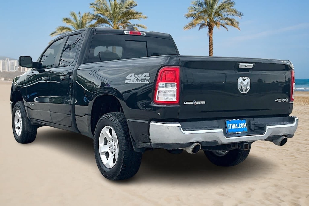 FRESH OIL CHANGE, 3 Rear Seat Head Restraints, 4 Way Front Headrests, 4-Wheel Disc Brakes, 48V Belt Starter Generator, 6 Speakers, ABS brakes, Air Conditioning, Alloy wheels, AM/FM radio, Auto-Dimming Rear-View Mirror, Big Horn IP Badge, Big Horn Level 1 Equipment Group, Brake assist, Bumpers: chrome, Class IV Receiver Hitch, Cloth Bench Seat, Cluster 3.5 TFT Color Display, Compass, Delay-off headlights, Driver door bin, Dual front impact airbags, Dual front side impact airbags, E-Locker Rear Axle, Electronic Stability Control, Foam Bottle Insert (Door Trim Panel), Front & Rear Rubber Floor Mats, Front anti-roll bar, Front Center Armrest w/Storage, Front Extra HD Shock Absorbers, Front fog lights, Front reading lights, Front Seat Back Map Pockets, Front wheel independent suspension, Fully automatic headlights, Glove Box Lamp, GPS Antenna Input, Heated door mirrors, Hill Descent Control, Illuminated entry, Leather steering wheel, Lone Star Badge, Lone Star Package, Low tire pressure warning, Manual Adjust 4-Way Front Passenger Seat, Occupant sensing airbag, Off Road Decals, Off Road Group, Outside temperature display, Overhead airbag, Overhead console, Panic alarm, ParkView Rear Back-Up Camera, Passenger door bin, Passenger vanity mirror, Power 4-Way Driver Lumbar Adjust, Power 8-Way Driver Seat, Power Adjustable Pedals, Power door mirrors, Power Heated Fold Away Mirrors, Power steering, Power windows, Quick Order Package 25Z Big Horn/Lone Star, Radio data system, Radio: Uconnect 3 w/5 Display, Radio: Uconnect 4 w/8.4 Display, Rear 60/40 Folding Seat, Rear anti-roll bar, Rear Dome w/On/Off Switch Lamp, Rear Extra HD Shock Absorbers, Rear Power Sliding Window, Rear seat center armrest, Rear step bumper, Rear Window Defroster, Remote keyless entry, Remote Start System, Single Disc Remote CD Player, SiriusXM Satellite Radio, Speed control, Split folding rear seat, Steering Wheel Mounted Audio Controls, Sun Visors w/Illuminated Vanity Mirrors, Tachometer, Telescoping steering wheel, Tilt steering wheel, Tow Hooks, Traction control, Trailer Brake Control, Trip computer, Universal Garage Door Opener, Variably intermittent wipers, Voltmeter, Wheels: 18 x 8, Wheels: 18 x 8 Premium Paint Cast. Recent Arrival! Diamond Black Crystal Pearlcoat 2019 Ram 1500 Big Horn/Lone Star 4WD 8-Speed Automatic HEMI 5.7L V8 Multi Displacement VVT