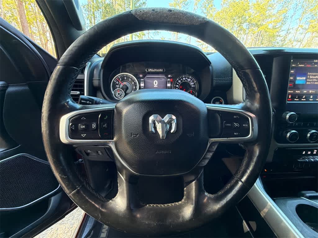 1500 Laramie is nicely equipped with Laramie Level 1 Equipment Group (Auto High Beam Headlamp Control, Blind Spot & Cross Path Detection, Foam Bottle Insert (Door Trim Panel), Rain Sensitive Windshield Wipers, Rear 60/40 Folding Split Recline Seat, Remote Tailgate Release, Single Disc Remote CD Player, and Tailgate Ajar Warning Lamp), Quick Order Package 24H Laramie (DISC), Sport Appearance Package (#1 Seat Foam Cushion, 3 Rear Seat Head Restraints, 4 Way Front Headrests, Black Interior Accents, Body Color Door Handles, Body Color Front Bumper, Body Color Rear Bumper w/Step Pads, Bucket Seats, Center Console Parts Module, Driver Seat Memory, Front Seat Back Map Pockets, Full Length Upgraded Floor Console, Grille B/Color Outline 3 Texture 4, Heated Front Seats, Heated Steering Wheel, Leather Trimmed Bucket Seats, Power 4-Way Driver Lumbar Adjust, Power 4-Way Passenger Lumbar Adjust, Power 8-Way Driver & Passenger Seats, Power Heated Fold-Away Mirrors, Sport Performance Hood, Ventilated Front Seats, and Wheels: 20 x 9 Premium Painted w/Inserts), 10 Speakers, 4-Wheel Disc Brakes, 48V Belt Starter Generator, 8.4 Touchscreen Display, ABS brakes, Adjustable pedals, Air Conditioning, Alloy wheels, AM/FM radio: SiriusXM, Apple CarPlay, Apple CarPlay/Android Auto, Audio memory, Auto-dimming door mirrors, Auto-dimming Rear-View mirror, Automatic temperature control, Brake assist, Bumpers: chrome, Compass, Delay-off headlights, Driver door bin, Driver vanity mirror, Dual front impact airbags, Dual front side impact airbags, Electronic Stability Control, Front & Rear Rubber Floor Mats, Front anti-roll bar, Front Center Armrest w/Storage, Front dual zone A/C, Front fog lights, Front reading lights, Front wheel independent suspension, Fully automatic headlights, Garage door transmitter, Google Android Auto, GPS Antenna Input, Heated door mirrors, Heated front seats, Heated steering wheel, Illuminated entry, Integrated Center Stack Radio, Leather steering wheel, Leather Trim 40/20/40 Bench Seat, Low tire pressure warning, Memory seat, Occupant sensing airbag, Outside temperature display, Overhead airbag, Overhead console, Panic alarm, ParkSense Front/Rear Park Assist w/Stop (DISC), ParkView Rear Back-Up Camera, Passenger door bin, Passenger vanity mirror, Pedal memory, Power door mirrors, Power driver seat, Power passenger seat, Power steering, Power windows, Radio data system, Radio: Uconnect 4 w/8.4 Display, Rear anti-roll bar, Rear seat center armrest, Rear step bumper, Rear window defroster, Remote keyless entry, Security system, SiriusXM Satellite Radio, Speed control, Split folding rear seat, Steering wheel mounted audio controls, Tachometer, Telescoping steering wheel, Tilt steering wheel, Traction control, Trip computer, Turn signal indicator mirrors, Variably intermittent wipers, Ventilated front seats, Voltmeter, and Wheels: 18 x 8 Aluminum Base Painted.