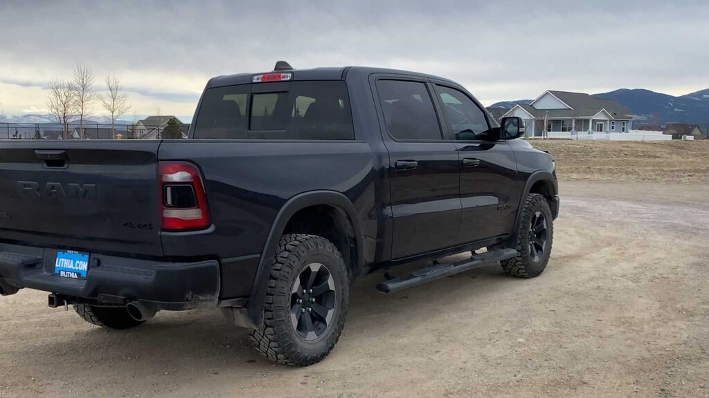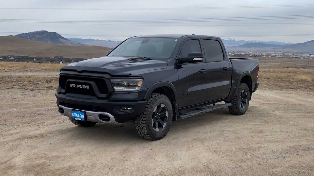 Lithia Chrysler Dodge Jeep RAM FIAT of Helena is pleased to offer this Maximum Steel Metallic Clearcoat 2019 Ram 1500 Rebel for purchase, this vehicle is well equipped with many features including: Quick Order Package 25W Rebel (Body Color Door Handles), Rebel Level 2 Equipment Group (115V Auxiliary Rear Power Outlet, 2 USB Full Function/Charge Only Media Hub, 8.4 Touchscreen Display, Air Conditioning ATC w/Dual Zone Control, Apple CarPlay, Auto-Dimming Exterior Driver Mirror, Auto-Dimming Rear-View Mirror, Exterior Mirrors Courtesy Lamps, Exterior Mirrors w/Supplemental Signals, Foam Bottle Insert (Door Trim Panel), Google Android Auto, Heated Front Seats, Heated Steering Wheel, Integrated Center Stack Radio, ParkSense Front/Rear Park Assist w/Stop, Power Adjustable Pedals, Power Heated Fold Away Mirrors, Power-Folding Mirrors, Radio: Uconnect 4 w/8.4 Display, Rain Sensitive Windshield Wipers, Rear Dome w/On/Off Switch Lamp, Rear Underseat Compartment Storage, Rear Window Defroster, Remote Proximity Keyless Entry, Remote Start System, Security Alarm, Single Disc Remote CD Player, Sun Visors w/Illuminated Vanity Mirrors, and Universal Garage Door Opener), GPS Navigation, 1-Year SiriusXM Radio Service, 1-Yr SiriusXM Guardian Trial, 3.92 Rear Axle Ratio, 4-Wheel Disc Brakes, 48V Belt Starter Generator, 5-Year SiriusXM Traffic Service, 5-Year SiriusXM Travel Link Service, 6 Speakers, ABS brakes, Air Conditioning, Alloy wheels, AM/FM radio: SiriusXM, Brake assist, Cloth/Vinyl Low Back Bucket Seats, Compass, Delay-off headlights, Disassociated Touchscreen Display, Driver door bin, Dual front impact airbags, Dual front side impact airbags, Electronic Stability Control, For Details, Visit DriveUconnect.com, For More Info, Call 800-643-2112, Front anti-roll bar, Front Bucket Seats, Front Center Armrest w/Storage, Front fog lights, Front reading lights, Front wheel independent suspension, Fully automatic headlights, GPS Antenna Input, HD Radio, Heated door mirrors, Illuminated entry, Leather steering wheel, Low tire pressure warning, No Satellite Coverage w/HI/AK/PR/VI/GU, Occupant sensing airbag, Outside temperature display, Overhead airbag, Overhead console, Panic alarm, ParkView Rear Back-Up Camera, Passenger door bin, Passenger vanity mirror, Power door mirrors, Power driver seat, Power steering, Power windows, Radio data system, Radio: Uconnect 3 w/5 Display, Radio: Uconnect 4C Nav w/8.4 Display, Rear anti-roll bar, Rear seat center armrest, Rear step bumper, Remote keyless entry, SiriusXM Satellite Radio, SiriusXM Traffic Plus, SiriusXM Travel Link, Speed control, Split folding rear seat, Steering wheel mounted audio controls, Tachometer, Telescoping steering wheel, Tilt steering wheel, Traction control, Trailer Brake Control, Trip computer, Variably intermittent wipers, Voltmeter, and Wheels: 18 x 8 Painted BlacK. CARFAX One-Owner. Clean CARFAX. Maximum Steel Metallic Clearcoat 2019 Ram 1500 Rebel Rebel 4WD 8-Speed Automatic HEMI 5.7L V8 Multi Displacement VVT