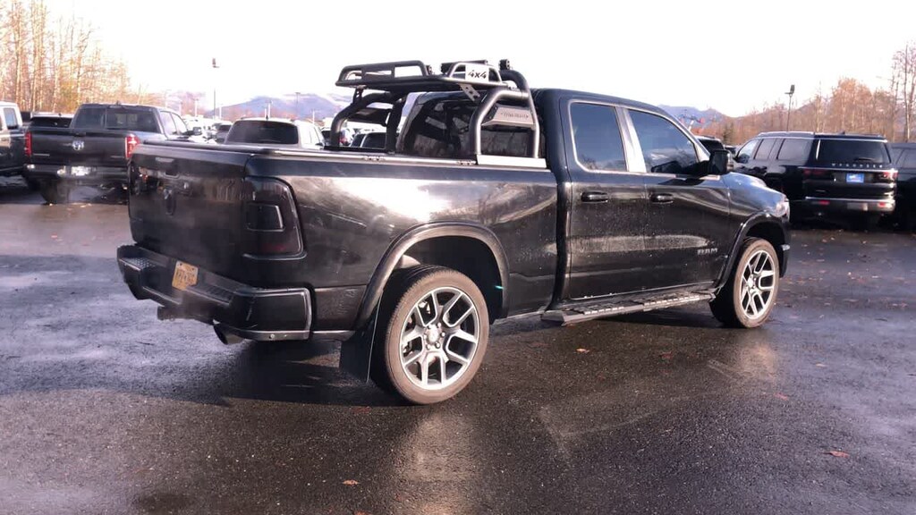 LARAMIE LEVEL 2 EQUIPMENT GROUP Remote Tailgate Release, Auto High Beam Headlamp Control, Blind Spot & Cross Path Detection, Rain Sensitive Windshield Wipers, ParkSense Front/Rear Park Assist w/Stop, Heated Second Row Seats, Wireless Charging Pad, Tailgate Ajar Warning Lamp, Foam Bottle Insert (Door Trim Panel), Single Disc Remote CD Player, Radio: Uconnect 4C Nav w/8.4 Display, SiriusXM Traffic Plus, Disassociated Touchscreen Display, HD Radio, For Details, Visit DriveUconnect.com, 1-Yr SiriusXM Guardian Trial, GPS Navigation, SiriusXM Travel Link, No Satellite Coverage w/HI/AK/PR/VI/GU, BLACK APPEARANCE PACKAGE Black Exterior Truck Badging, Wheels: 22 x 9 Polished Painted, Tires: 285/45R22XL BSW All Season, Black Interior Accents, Dual Exhaust w/Black Tips, Black Headlamp Bezels, Power Heated Fold-Away Mirrors, Sport Performance Hood, Body Color Front Bumper, Body Color Door Handles, Body Color Rear Bumper w/Step Pads, Grille B/Color Outline 3 Texture 4, 4-CORNER AIR SUSPENSION, ADVANCED SAFETY GROUP Adaptive Cruise Control w/Stop & Go, Advanced Brake Assist, Auto High Beam Headlamp Control, Parallel & Perp Park Assist w/Stop, Full Speed Forward Collision Warning Plus, Lane Keep Assist, ENGINE: 5.7L V8 HEMI MDS VVT Active Noise Control System, Heavy Duty Engine Cooling, GVWR: 7,100 lbs, Dual Rear Exhaust w/Bright Tips, HEMI badge, 220 Amp Alternator, 26 Gallon Fuel Tank, POWER SUNROOF LED Dome/Reading Lamp, E-LOCKER REAR AXLE, PROTECTION GROUP Transfer Case Skid Plate, Steering Gear Skid Plate, Front Suspension Skid Plate, Fuel Tank Skid Plate, Tow Hooks, TRANSMISSION: 8-SPEED AUTOMATIC (8HP75).