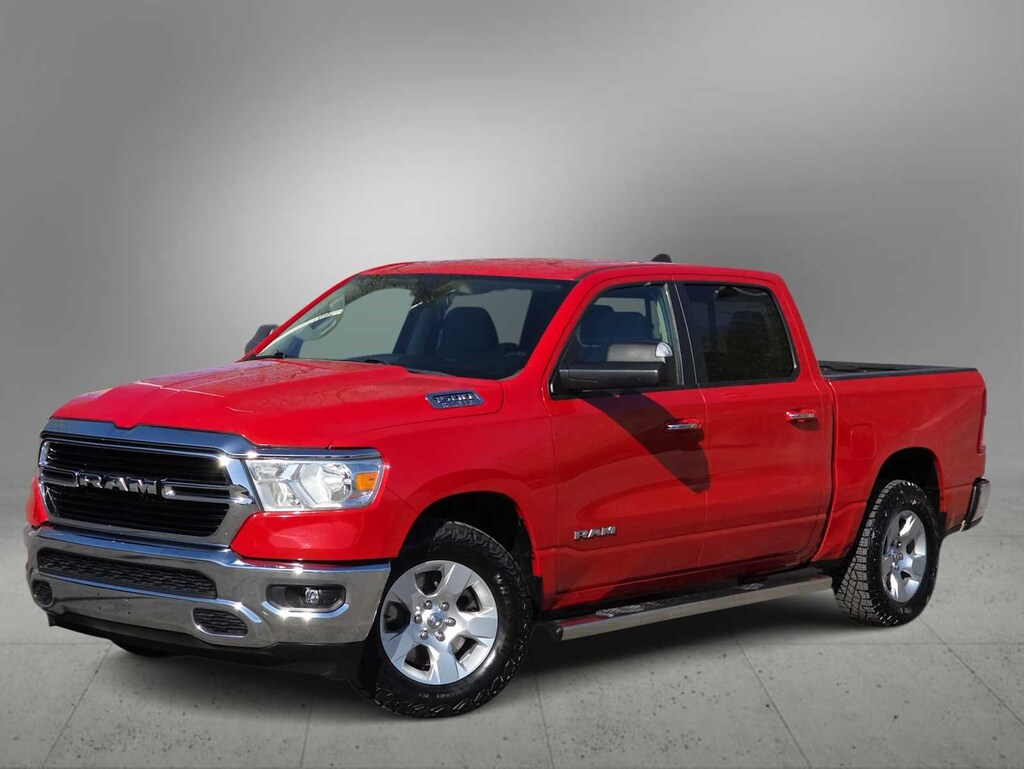 Step up to our One Owner, Low Mileaage 2019 RAM 1500 Big Horn/Lone Star Crew Cab 4X2 in Flame Red and get ready to go! Motivated by a 5.7 Liter HEMI V8 that offers 395hp paired with an 8 Speed Automatic transmission for high-capability pulling power. This Rear Wheel Drive truck also provides a confidence-inspiring ride and the ability to see nearly 22mpg on the highway while grabbing your attention with style and functionality. Check out the quad halogen headlights, fog lamps, step bars, alloy wheels, heated power mirrors, cargo-bed lighting, a spray-on bedliner, and Class III hitch receiver.