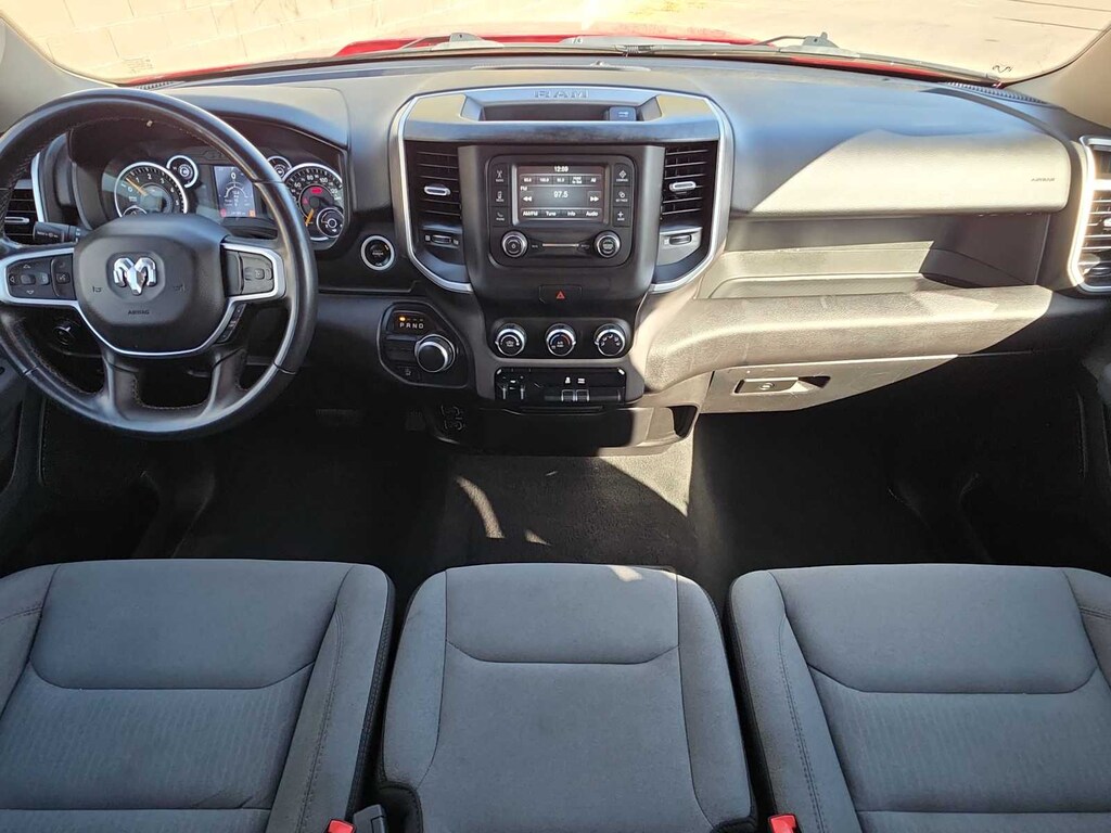 Open the doors of this Big Horn/Lone Star, and youll find a long list of amenities that starts with comfortable cloth seats, a leather-wrapped steering wheel, cruise control, air conditioning, a 5-inch central display, Bluetoothî, and a six-speaker audio system. With all that and more, our RAM is a great traveling companion for work or play!
