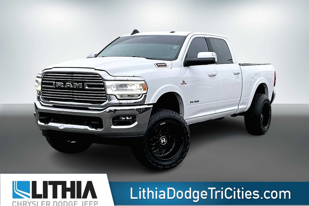 Lithia Chrysler Dodge Jeep Ram of Tri-Cities is pleased to offer this Bright White Clearcoat 2019 Ram 3500 Laramie for purchase, this vehicle is well equipped with many features including:Protection Group, Quick Order Package 2HH Laramie, #1 Seat Foam Cushion, 10 Speakers, 115V Auxiliary Rear Power Outlet, 2 Way Rear Headrest Seat, 220 Amp Alternator, 3.73 Axle Ratio, 4 Way Front Headrests, 4-Wheel Disc Brakes, ABS brakes, Active Noise Control System, Adjustable pedals, Air Conditioning, Alloy wheels, AM/FM radio: SiriusXM, Apple CarPlay, Apple CarPlay/Android Auto, Auto-dimming Rear-View mirror, Automatic temperature control, Brake assist, Bumpers: chrome, Center Hub, Chrome Flat Wheel-to-Wheel Side Steps, Compass, Delay-off headlights, Driver door bin, Driver vanity mirror, Dual front impact airbags, Dual front side impact airbags, Electronic Stability Control, Electronically Controlled Throttle, Folding Flat Load Floor Storage, Front anti-roll bar, Front Bumper Sight Shields, Front Center Armrest w/Storage, Front dual zone A/C, Front fog lights, Front reading lights, Front Seat Back Map Pockets, Fully automatic headlights, Garage door transmitter, Google Android Auto, GPS Antenna Input, Heated door mirrors, Heated Front Seats, Heated front seats, Heated Steering Wheel, Heated steering wheel, High Back Seats, Illuminated entry, Integrated Voice Command w/Bluetooth, Leather steering wheel, Leather Trim 40/20/40 Bench Seat, Low tire pressure warning, Occupant sensing airbag, Outside temperature display, Overhead airbag, Overhead console, Panic alarm, ParkView Rear Back-Up Camera, Passenger door bin, Passenger vanity mirror, Power 8-Way Adjustable Passenger Seat, Power Adjust 8-Way Driver Seat, Power door mirrors, Power driver seat, Power passenger seat, Power steering, Power windows, Radio data system, Radio: Uconnect 4 w/8.4 Display, Rear 60/40 Folding Seat, Rear reading lights, Rear seat center armrest, Rear step bumper, Rear window defroster, Remote keyless entry, Security system, SiriusXM Satellite Radio, Speed control, Split folding rear seat, Steering wheel mounted audio controls, Tachometer, Tilt steering wheel, Tip Start, Traction control, Trip computer, Turn signal indicator mirrors, USB Host Flip, Variably intermittent wipers, Voltmeter, and Wheels: 18 x 8.0 Polished Aluminum. 2019 Ram 3500 Laramie