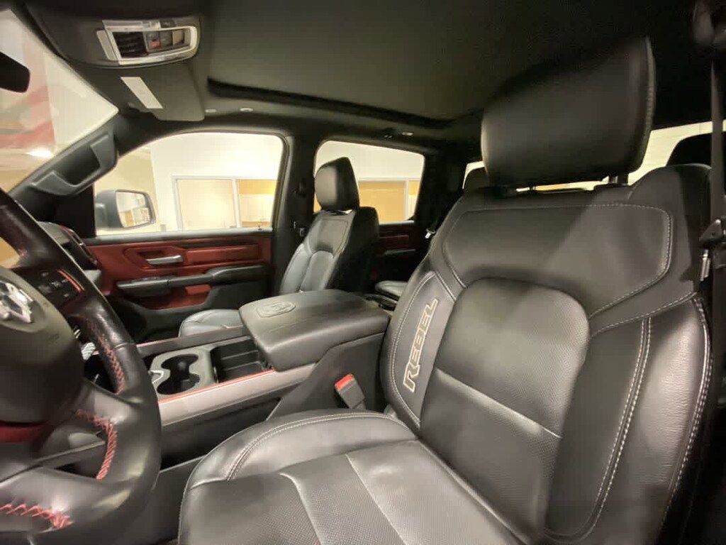 LEVEL 2 EQUIPMENT GROUP Remote Start System, Rear Window Defroster, Rain-Sensing Windshield Wipers, Auto-Dimming Rearview Mirror, Park-Sense Front & Rear Park Assist, Power Adjustable Pedals, Rear Dome Lamp w/On/Off Switch, A/C w/Dual-Zone Automatic Temperature Control, 115V Rear Auxiliary Power Outlet, Rear Media Hub w/2 USB Ports, Rear Underseat Compartment Storage, Remote Proximity Keyless Entry, Universal Garage Door Opener, Front Heated Seats, Heated Steering Wheel, Door Trim Panel Foam Bottle Insert, Security Alarm, Sun Visors w/Illuminated Vanity Mirrors, ALPINE LEATHER & SOUND GROUP W/2_W 9 Alpine Speakers w/Subwoofer, Radio: Uconnect 4C Nav w/12 Display, Google Android Auto®, SiriusXM Traffic, Disassociated Touchscreen Display, HD Radio, For Details Visit DriveUconnect.ca, 12 Touchscreen, 5-Year SiriusXM Travel Link Subscription, GPS Navigation, 5-Year SiriusXM Traffic Subscription, SiriusXM Travel Link, 4G LTE Wi-Fi Hot Spot, SiriusXM w/360L On-Demand Content, LED Footwell Lighting, QUICK ORDER PACKAGE 25W REBEL Engine: 5.7L HEMI VVT V8 w/FuelSaver MDS, Transmission: 8-Speed Automatic, Black Rear Bumper, Rebel Instrument Cluster, 18 Full-Size Steel Spare Wheel, Exterior Mirrors w/Turn Signals, Vinyl Door Trim Panel, Body-Colour Door Handles, Exterior Mirrors w/Courtesy Lamps, Auto-Dimming Exterior Driver Mirror, Electronic Shift-On-The-Fly Partime Transfer Case, Off-Road Group, Power Folding Exterior Mirrors, Fuel Tank Skid Plate, Powder-Coated Front Bumper, Black Power Fold Heated Mirrors w/Signals, Hill Descent Control, DARK RUBY RED/BLACK, LUXURY LEATHER-FACED FRONT BUCKET SEATS Front Heated Seats, Heated Steering Wheel, Power 4-Way Front Passenger Lumbar Adjust, Power 8-Way Adjustable Front Seats, Full-Length Upgraded Floor Console, TRANSMISSION: 8-SPEED AUTOMATIC (STD), ENGINE: 5.7L HEMI VVT V8 W/FUELSAVER MDS 220 Amp Alternator (STD), POWER DUAL-PANE PANORAMIC SUNROOF Premium Overhead Console, LED Dual Dome Reading Lamps, Overhead LED Lamps, RADIO: UCONNECT 4C NAV W/12 DISPLAY Google Android Auto®, SiriusXM Traffic, Disassociated Touchscreen Display, HD Radio, For Details Visit DriveUconnect.ca, 12 Touchscreen, 5-Year SiriusXM Travel Link Subscription, GPS Navigation, 5-Year SiriusXM Traffic Subscription, SiriusXM Travel Link, 4G LTE Wi-Fi Hot Spot, SiriusXM w/360L On-Demand Content, LED Footwell Lighting. Ram Rebel with Granite Crystal Metallic exterior and Dark Ruby Red/Black interior features a 8 Cylinder Engine with 305 HP at 6400 RPM*.