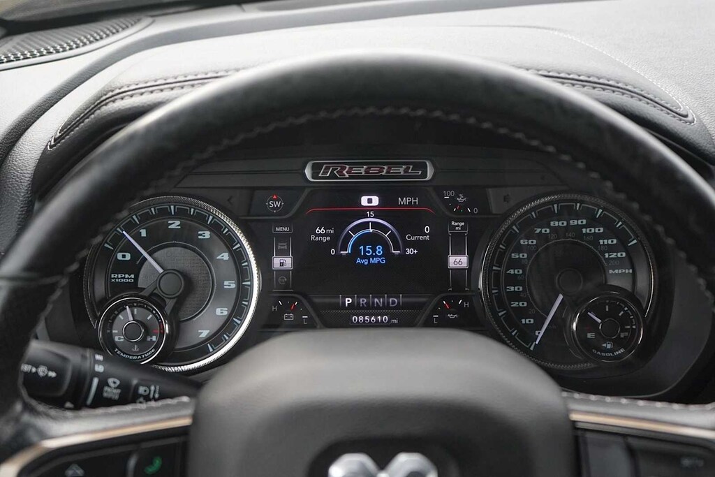 LOCAL TRADE, BLUETOOTH, CLEAN CARFAX, NON-SMOKER, CARFAX ONE OWNER, Service Records Available!, ** LEATHER SEATS, ** SUNROOF, ** TRAILER HITCH, ** HEATED SEATS, ** REARVIEW CAMERA, ** NAVIGATION SYSTEM, ** KEYLESS ENTRY, ** APPLE CARPLAY, ** REMOTE ENGINE START, ** BLUETOOTH, HANDS-FREE, ** BLIND SPOT ALERT, ** KEYLESS START, ** PREMIUM WHEELS, ** PREMIUM SOUND SYSTEM, ** LANE DEPARTURE WARNING, ** SATELLITE RADIO, ** STEERING WHEEL CONTROLS, ** ALARM SYSTEM, ** WIFI HOTSPOT, ** AUXILIARY AUDIO INPUT, ** LOCAL TRADE-IN, ** LOCALLY OWNED AND SERVICED, ** ALL WHEEL DRIVE, ** FOUR WHEEL DRIVE, ** PANORAMIC ROOF, ** ADVANCED SAFETY TECHNOLOGY, ** BACK UP CAMERA, ** POWER TAILGATE, ** ALLOY WHEELS, 1500 Rebel, 4D Crew Cab, HEMI 5.7L V8 Multi Displacement VVT, 8-Speed Automatic, 4WD, Diamond Black Crystal Pearlcoat, Black Leather, 1-Yr SiriusXM Guardian Trial, 115V Auxiliary Rear Power Outlet, 12 Touchscreen Display, 2 USB Full Function/Charge Only Media Hub, 3.92 Rear Axle Ratio, 4 Way Front Headrests, 4-Wheel Disc Brakes, 48V Belt Starter Generator, 4G LTE Wi-Fi Hot Spot, 5-Year SiriusXM Traffic Service, 5-Year SiriusXM Travel Link Service, 6 Speakers, 9 Amplified Speakers w/Subwoofer, ABS brakes, Air Conditioning, Alloy wheels, AM/FM radio: SiriusXM, Apple CarPlay, Auto-Dimming Rear-View Mirror, Black 4x4 Tailgate Badge, Black Appearance Package, Black Exterior Truck Badging, Black Front Bumper w/Black Plate, Black Headlamp Bezels, Black Outline Mustache Grille Texture 3, Black Premium Power Mirrors, Black Tubular Side Steps, Blind Spot & Cross Path Detection, Body Color Door Handles, Brake assist, Bucket Seats, Cloth/Vinyl Low Back Bucket Seats, Compass, Delay-off headlights, Disassociated Touchscreen Display, Dome Dual LED Reading Lamp, Driver door bin, Dual front impact airbags, Dual front side impact airbags, Dual-Pane Panoramic Sunroof, Electronic Stability Control, Foam Bottle Insert (Door Trim Panel), For Details, Visit DriveUconnect.com, Front anti-roll bar, Front Bucket Seats, Front Center Armrest w/Storage, Front fog lights, Front reading lights, Front Seat Back Map Pockets, Front wheel independent suspension, Full Length Upgraded Floor Console, Fully automatic headlights, Google Android Auto, GPS Antenna Input, GPS Navigation, HD Radio, Heated door mirrors, Heated Front Seats, Heated Steering Wheel, Illuminated entry, Integrated Center Stack Radio, Leather steering wheel, LED Footwell Lighting, Low tire pressure warning, Manufacturers Statement of Origin, Occupant sensing airbag, Outside temperature display, Overhead airbag, Overhead console, Overhead LED Lamps, Panic alarm, ParkSense Front/Rear Park Assist w/Stop, ParkView Rear Back-Up Camera, Passenger door bin, Passenger vanity mirror, Power 4-Way Driver Lumbar Adjust, Power Adjustable Pedals, Power door mirrors, Power driver seat, Power steering, Power windows, Premium Overhead Console, Quick Order Package 25W Rebel, Radio data system, Radio: Uconnect 12 w/Navigation, Radio: Uconnect 3 w/5 Display, Radio: Uconnect 4 w/8.4 Display, Rain Sensitive Windshield Wipers, RAM Grille Badge - Black, Rear 60/40 Folding Seat, Rear anti-roll bar, Rear Dome w/On/Off Switch Lamp, Rear seat center armrest, Rear step bumper, Rear Underseat Compartment Storage, Rear Window Defroster, Rebel Level 2 Equipment Group, Remote keyless entry, Remote Proximity Keyless Entry, Remote Start System, Security Alarm, Single Disc Remote CD Player, SiriusXM Satellite Radio, SiriusXM Traffic Plus, SiriusXM Travel Link, SiriusXM w/360L, Speed control, Split folding rear seat, Spray In Bedliner, Steering wheel mounted audio controls, Sun Visors w/Illuminated Vanity Mirrors, Tachometer, Telescoping steering wheel, Tilt steering wheel, Traction control, Trailer Brake Control, Trip computer, Universal Garage Door Opener, USB Host Flip, Variably intermittent wipers, Voltmeter, Wheels: 18 x 8.0 Gloss Black, Wheels: 18 x 8 Painted Black, 1500 Rebel, 4D Crew Cab, HEMI 5.7L V8 Multi Displacement VVT,