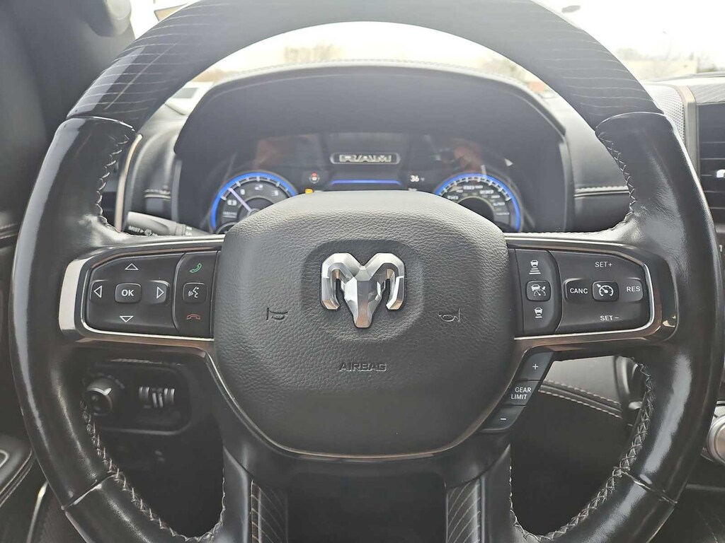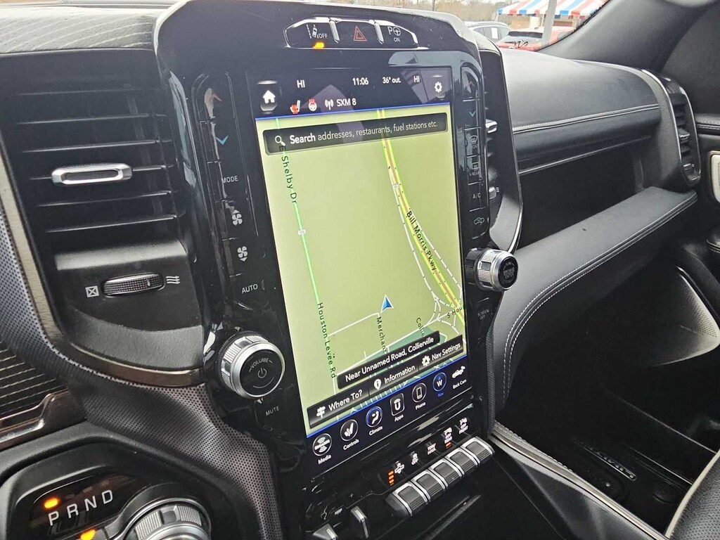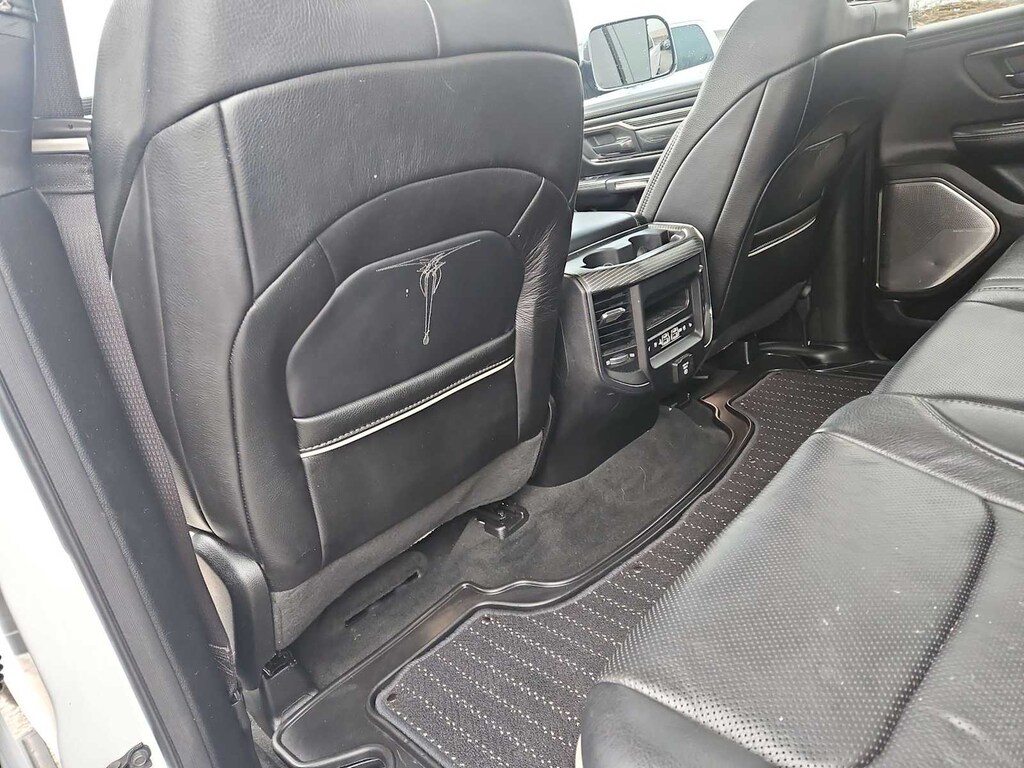 Bright White Clearcoat This 1500 Limited is nicely equipped with Limited Level 1 Equipment Group (Adaptive Cruise Control w/Stop & Go, Full Speed Forward Collision Warning Plus, Lane Keep Assist, Parallel & Perp Park Assist w/Stop, and Ventilated Rear Seats), Quick Order Package 25M Limited, Trailer Tow Group (Trailer Brake Control), 10 Speakers, 3.21 Rear Axle Ratio, 33 Gallon Fuel Tank, 4-Wheel Disc Brakes, 48V Belt Starter Generator, ABS brakes, Adjustable pedals, Air Conditioning, Alloy wheels, AM/FM radio: SiriusXM with 360L, Apple CarPlay/Android Auto, Audio memory, Auto High-beam Headlights, Auto-dimming door mirrors, Auto-dimming Rear-View mirror, Auto-leveling suspension, Automatic temperature control, Bodyside moldings, Brake assist, Bumpers: chrome, Compass, Delay-off headlights, Driver door bin, Driver vanity mirror, Dual front impact airbags, Dual front side impact airbags, Electronic Stability Control, Emergency communication system: SiriusXM Guardian, Front anti-roll bar, Front Bucket Seats, Front Center Armrest w/Storage, Front dual zone A/C, Front fog lights, Front reading lights, Front wheel independent suspension, Fully automatic headlights, Garage door transmitter, Genuine wood console insert, Genuine wood dashboard insert, Genuine wood door panel insert, Heated door mirrors, Heated front seats, Heated rear seats, Heated steering wheel, Illuminated entry, Leather steering wheel, Low tire pressure warning, Memory seat, Navigation System, Occupant sensing airbag, Outside temperature display, Overhead airbag, Overhead console, Panic alarm, ParkView Rear Back-Up Camera, Passenger door bin, Passenger vanity mirror, Pedal memory, Power door mirrors, Power driver seat, Power passenger seat, Power steering, Power windows, Premium Leather Trimmed Bucket Seats, Radio data system, Radio: Uconnect 12 w/Navigation, Rain sensing wipers, Rear anti-roll bar, Rear seat center armrest, Rear step bumper, Rear window defroster, Remote keyless entry, Security system, Speed control, Split folding rear seat, Steering wheel mounted audio controls, Tachometer, Telescoping steering wheel, Tilt steering wheel, Traction control, Trip computer, Turn signal indicator mirrors, Variably intermittent wipers, Ventilated front seats, Voltmeter, Wheels: 20 x 9 Polished w/Inserts, and Wheels: 22 x 9 Polish/Painted w/Inserts. Price does not include licensing costs, registration fees, taxes and dealer doc fee of $899.50 which are to be paid by the consumer. Mileage is EPA Estimated.