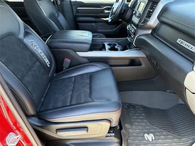 THIS VEHICLE ALSO IS EQUIPPED WITH THE FOLLOWING OPTIONS AND FEATURES: Quick Order Package 25W Rebel (Body Color Door Handles), 3.92 Rear Axle Ratio, 4 Way Front Headrests, 4-Wheel Disc Brakes, 48V Belt Starter Generator, 6 Speakers, ABS brakes, Air Conditioning, Alloy wheels, AM/FM radio: SiriusXM, Brake assist, Bucket Seats, Cloth/Vinyl Low Back Bucket Seats, Compass, Delay-off headlights, Driver door bin, Dual front impact airbags, Dual front side impact airbags, Electronic Stability Control, Front anti-roll bar, Front Bucket Seats, Front Center Armrest w/Storage, Front fog lights, Front reading lights, Front Seat Back Map Pockets, Front wheel independent suspension, Full Length Upgraded Floor Console, Fully automatic headlights, GPS Antenna Input, Heated door mirrors, Illuminated entry, Leather steering wheel, Low tire pressure warning, Occupant sensing airbag, Outside temperature display, Overhead airbag, Overhead console, Panic alarm, ParkView Rear Back-Up Camera, Passenger door bin, Passenger vanity mirror, Power 4-Way Driver Lumbar Adjust, Power door mirrors, Power driver seat, Power steering, Power windows, Radio data system, Radio: Uconnect 3 w/5 Display, Rear 60/40 Folding Seat, Rear anti-roll bar, Rear seat center armrest, Rear step bumper, Remote keyless entry, SiriusXM Satellite Radio, Speed control, Split folding rear seat, Steering wheel mounted audio controls, Tachometer, Telescoping steering wheel, Tilt steering wheel, Traction control, Trip computer, Variably intermittent wipers, Voltmeter, and Wheels: 18 x 8 Painted Black.