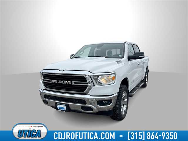 1500 Big Horn/Lone Star, 4D Crew Cab, HEMI 5.7L V8 Multi Displacement VVT, 8-Speed Automatic, 4WD, Bright White Clearcoat, Diesel Gray/Black Cloth, 115V Auxiliary Power Outlet, 115V Auxiliary Rear Power Outlet, 2 USB Full Function/Charge Only Media Hub, 2nd Row In Floor Storage Bins, 3.21 Rear Axle Ratio, 400W Inverter, Air Conditioning ATC w/Dual Zone Control, Alloy wheels, Auto-Dimming Rear-View Mirror, Big Horn Badge, Big Horn IP Badge, Big Horn Level 2 Equipment Group, Black Premium Power Mirrors, Class IV Receiver Hitch, Dampened Tailgate, Foam Bottle Insert (Door Trim Panel), Front Seat Back Map Pockets, Glove Box Lamp, Heated Front Seats, Heated Steering Wheel, ParkSense Front/Rear Park Assist w/Stop, Passenger door bin, Power 4-Way Driver Lumbar Adjust, Power 8-Way Driver Seat, Power Adjustable Pedals, Quick Order Package 25Z Big Horn, Radio: Uconnect 4 w/8.4 Display, Rear Dome w/On/Off Switch Lamp, Rear Power Sliding Window, Rear Window Defroster, Security Alarm, SiriusXM Satellite Radio, Sun Visors w/Illuminated Vanity Mirrors, Universal Garage Door Opener, Wheels: 18 x 8 Cast-Aluminum Painted.