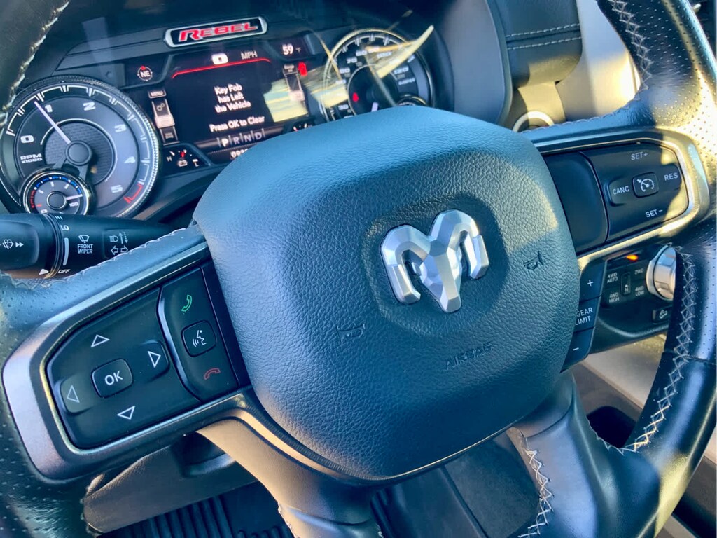 Lower Active Grille Shutters, 800 Amp Maintenance Free Battery, EcoDiesel Badge, Heavy Duty Engine Cooling, 250 Amp Alternator, Dual Exhaust w/Black Tips, GVWR: 7,200 lbs, Rear Window Defroster, Power Adjustable Pedals, Exterior Mirrors w/Supplemental Signals, Rear Dome w/On/Off Switch Lamp, Exterior Mirrors Courtesy Lamps, Auto Dim Exterior Driver Mirror, Universal Garage Door Opener, Heated Front Seats, Heated Steering Wheel, Power-Folding Mirrors, Foam Bottle Insert (Door Trim Panel), Black Premium Power Mirrors, Sun Visors w/Illuminated Vanity Mirrors, 9 AMPLIFIED SPEAKERS W/SUBWOOFER, Black Front Bumper w/Black Plate, Wheels: 18" x 8.0" Gloss Black, Grille Moustache Black Outline Texture 3, RAM Grille Badge - Black, PARKSENSE FRONT/REAR PARK ASSIST W/STOP, REMOTE START SYSTEM, TRANSMISSION: 8-SPEED AUTOMATIC (8HP75) (DFV).