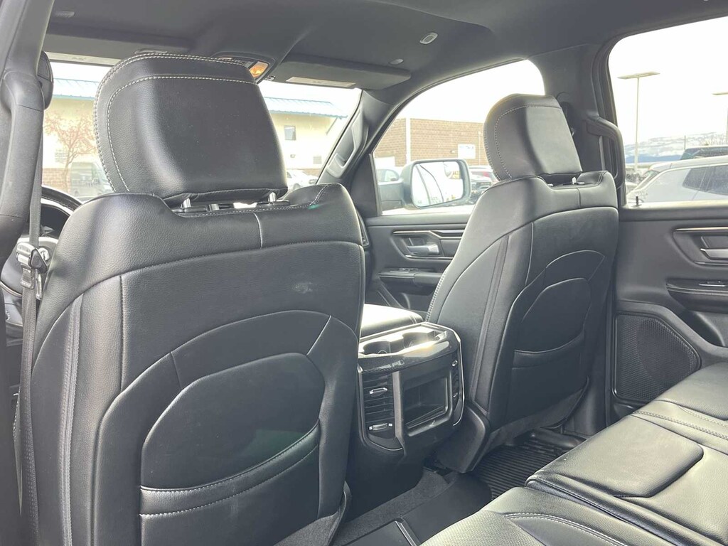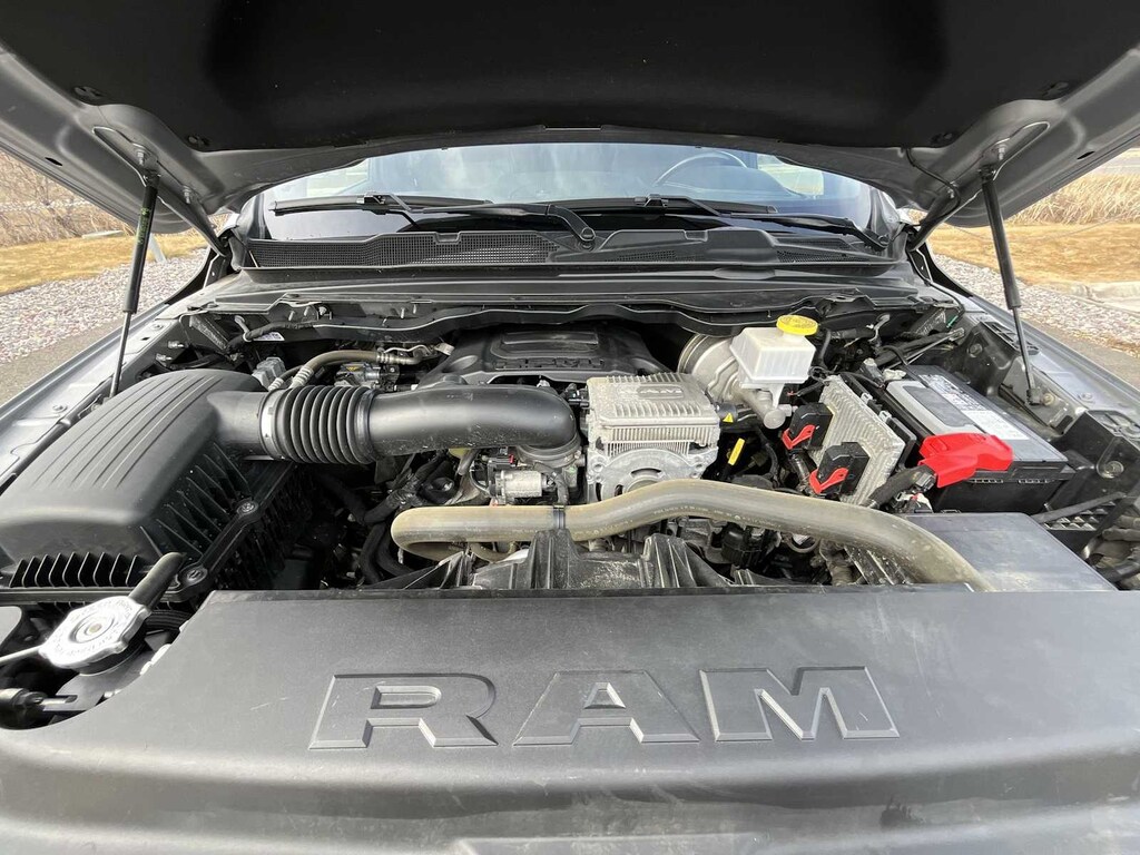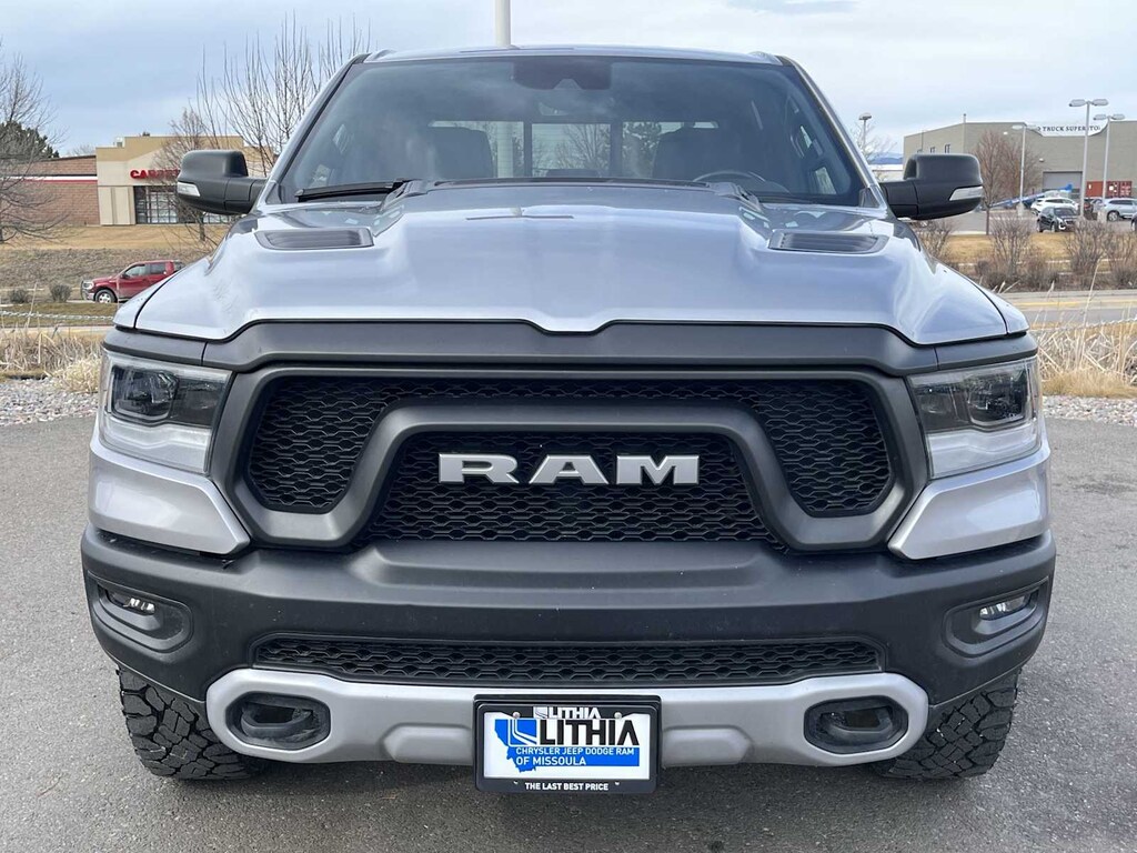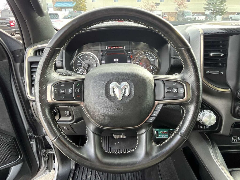 ENGINE: 5.7L V8 HEMI MDS VVT ETORQUE Active Noise Control System, Heavy Duty Engine Cooling, Dual Exhaust w/Black Tips, GVWR: 7,100 lbs, HEMI Badge, 23 Gallon Fuel Tank, 18 Aluminum Spare Wheel, REBEL LEVEL 1 EQUIPMENT GROUP Rear Window Defroster, Power Adjustable Pedals, Exterior Mirrors w/Supplemental Signals, Rear Dome w/On/Off Switch Lamp, Exterior Mirrors Courtesy Lamps, Auto Dim Exterior Driver Mirror, Universal Garage Door Opener, Heated Front Seats, Heated Steering Wheel, Power-Folding Mirrors, Foam Bottle Insert (Door Trim Panel), Black Premium Power Mirrors, Sun Visors w/Illuminated Vanity Mirrors, BLACK, LUX LEATHER TRIMMED BUCKET SEATS Heated Front Seats, Heated Steering Wheel, Power 4-Way Passenger Lumbar Adjust, Power 8-Way Driver & Passenger Seats, TRANSMISSION: 8-SPEED AUTOMATIC (8HP75), RADIO: UCONNECT 4 W/8.4 DISPLAY. Ram Rebel with Billet Silver Metallic Clearcoat exterior and Black interior features a 8 Cylinder Engine with 305 HP at 6400 RPM*.