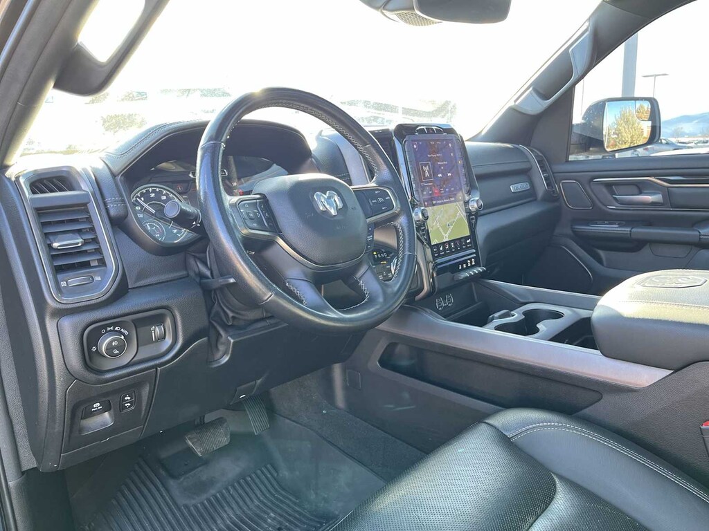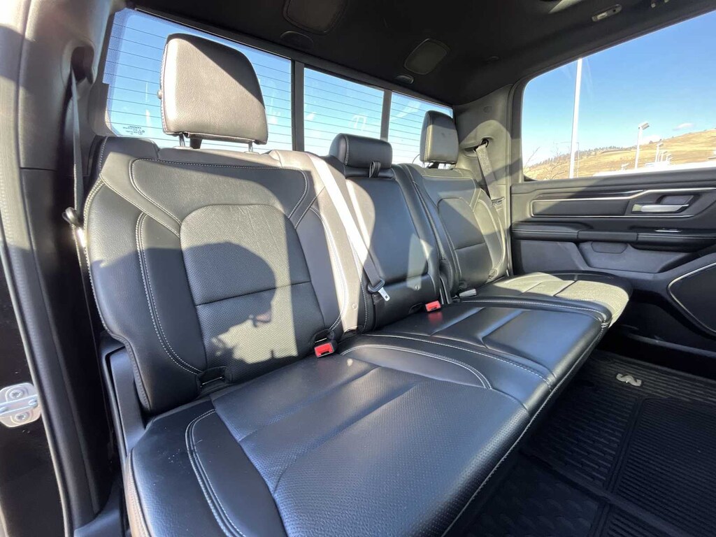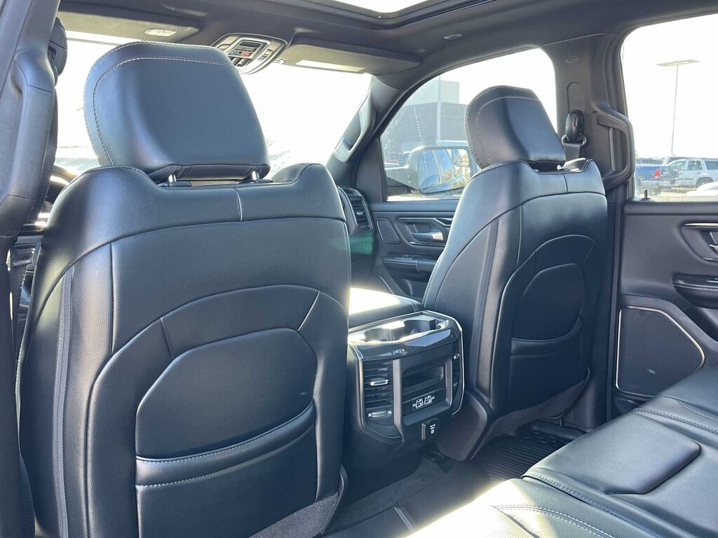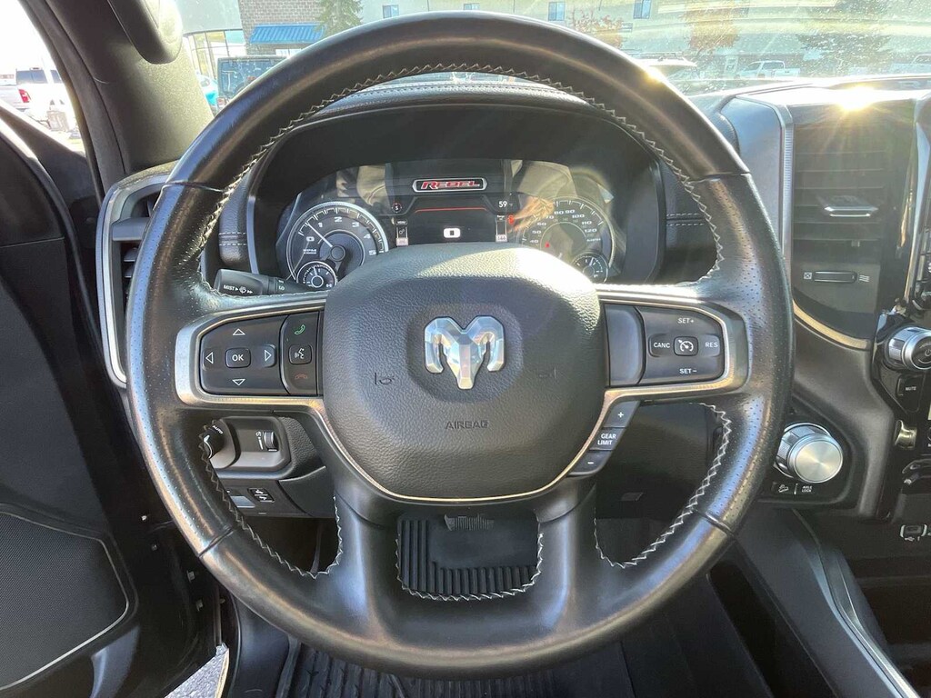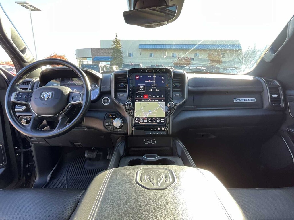 REBEL LEVEL 2 EQUIPMENT GROUP Radio: Uconnect 4 w/8.4 Display, Rear Window Defroster, Rain Sensitive Windshield Wipers, ParkSense Front/Rear Park Assist w/Stop, Power Adjustable Pedals, Rear Dome w/On/Off Switch Lamp, Body Color Door Handles, 115V Auxiliary Rear Power Outlet, Media Hub w/2 Charge Only USBs, Auto Dim Exterior Driver Mirror, Rear Underseat Compartment Storage, Heated Front Seats, Heated Steering Wheel, Foam Bottle Insert (Door Trim Panel), Security Alarm, Black Premium Power Mirrors, Remote Start System, Exterior Mirrors w/Supplemental Signals, Exterior Mirrors Courtesy Lamps, Air Conditioning ATC w/Dual Zone Control, Remote Proximity Keyless Entry, Universal Garage Door Opener, Power-Folding Mirrors, Sun Visors w/Illuminated Vanity Mirrors, REBEL 12 harman/kardon® 19 Speaker Premium Sound, Radio: Uconnect 12 w/Navigation, Google Android Auto®, SiriusXM Traffic Plus, USB Host Flip, Disassociated Touchscreen Display, HD Radio, For Details, Visit DriveUconnect.com, Integrated Center Stack Radio, 1-Yr SiriusXM Guardian Trial, 12 Touchscreen Display, GPS Navigation, SiriusXM Travel Link, 4G LTE Wi-Fi Hot Spot, SiriusXM w/360L, Apple CarPlay®, LED Footwell Lighting, ENGINE: 5.7L V8 HEMI MDS VVT ETORQUE Active Noise Control System, Heavy Duty Engine Cooling, Dual Exhaust w/Black Tips, GVWR: 7,100 lbs, HEMI Badge, 23 Gallon Fuel Tank, 18 Aluminum Spare Wheel, DUAL-PANE PANORAMIC SUNROOF Premium Overhead Console, Dome Dual LED Reading Lamp, Overhead LED Lamps, NIGHT EDITION Black Front Bumper w/Black Plate, Wheels: 18 x 8.0 Gloss Black, Grille Moustache Black Outline Texture 3, RAM Grille Badge - Black, REMOTE START SYSTEM, TRANSMISSION: 8-SPEED AUTOMATIC (8HP75), BLACK, LUX LEATHER TRIMMED BUCKET SEATS Heated Front Seats, Heated Steering Wheel, Power 4-Way Passenger Lumbar Adjust, Power 8-Way Driver & Passenger Seats. Ram Rebel with Diamond Black Crystal Pearlcoat exterior and Black interior features a 8 Cylinder Engine with 305 HP at 6400 RPM*.