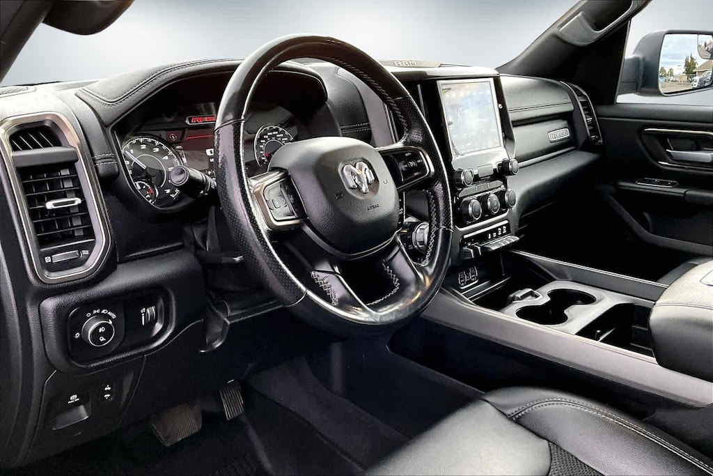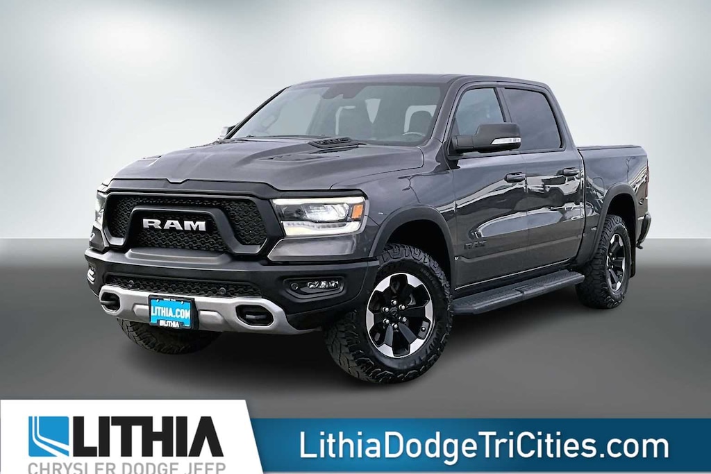 Lithia Chrysler Dodge Jeep Ram of Tri-Cities is pleased to offer this Granite Crystal Metallic Clearcoat 2021 Ram 1500 Rebel for purchase, this vehicle is well equipped with many features including:Bed Utility Group (MOPAR 4 Adjustable Cargo Tie-Down Hooks, MOPAR Deployable Bed Step, and Pick-Up Box Lighting), Quick Order Package 25W Rebel, Rebel Level 2 Equipment Group (115V Auxiliary Rear Power Outlet, Air Conditioning ATC w/Dual Zone Control, Auto-Dimming Exterior Driver Mirror, Black Premium Power Mirrors, Body Color Door Handles, Exterior Mirrors Courtesy Lamps, Exterior Mirrors w/Supplemental Signals, Foam Bottle Insert (Door Trim Panel), Heated Front Seats, Heated Steering Wheel, Media Hub w/2 Charge Only USBs, ParkSense Front/Rear Park Assist w/Stop, Power Adjustable Pedals, Power-Folding Mirrors, Radio: Uconnect 4 w/8.4 Display, Rain Sensitive Windshield Wipers, Rear Dome w/On/Off Switch Lamp, Rear Underseat Compartment Storage, Rear Window Defroster, Remote Proximity Keyless Entry, Security Alarm, Sun Visors w/Illuminated Vanity Mirrors, and Universal Garage Door Opener), 3.92 Rear Axle Ratio, 4 Way Front Headrests, 4-Wheel Disc Brakes, 48V Belt Starter Generator, 6 Speakers, 9 Amplified Speakers w/Subwoofer, ABS brakes, Air Conditioning, Alloy wheels, AM/FM radio: SiriusXM, Auto-dimming Rear-View mirror, Black Exterior Mirrors, Brake assist, Bucket Seats, Cloth/Vinyl Low Back Bucket Seats, Compass, Delay-off headlights, Dome Dual LED Reading Lamp, Driver door bin, Dual front impact airbags, Dual front side impact airbags, Dual-Pane Panoramic Sunroof, Electronic Stability Control, For More Info, Call 800-643-2112, Front anti-roll bar, Front Bucket Seats, Front Center Armrest w/Storage, Front fog lights, Front reading lights, Front Seat Back Map Pockets, Front wheel independent suspension, Full Length Upgraded Floor Console, Fully automatic headlights, GPS Antenna Input, Heated door mirrors, Illuminated entry, Integrated Voice Command w/Bluetooth, Leather steering wheel, Low tire pressure warning, Mopar Black Tubular Side Steps, MOPAR Spray In Bedliner, Occupant sensing airbag, Outside temperature display, Overhead airbag, Overhead console, Overhead LED Lamps, Panic alarm, ParkView Rear Back-Up Camera, Passenger door bin, Passenger vanity mirror, Power 4-Way Driver Lumbar Adjust, Power door mirrors, Power driver seat, Power steering, Power windows, Premium Overhead Console, Radio data system, Radio: Uconnect 3 w/5 Display, Rear 60/40 Folding Seat, Rear anti-roll bar, Rear seat center armrest, Rear step bumper, Rear Wheelhouse Liners, Remote keyless entry, Remote Start System, SiriusXM Radio Service, SiriusXM Satellite Radio, Speed control, Split folding rear seat, Steering wheel mounted audio controls, Tachometer, Telescoping steering wheel, Tilt steering wheel, Traction control, Trailer Brake Control, Trip computer, Variably intermittent wipers, Voltmeter, and Wheels: 18 x 8.0 Painted Mid-Gloss Black. 2021 Ram 1500 Rebel