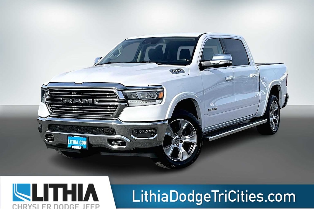 Lithia Chrysler Dodge Jeep Ram of Tri-Cities is pleased to offer this Bright White Clearcoat 2021 Ram 1500 Laramie for purchase, this vehicle is well equipped with many features including:Chrome Appearance Group (Bright Day Light Opening Moldings, Chrome Tow Hooks, and Wheel to Wheel Side Steps), Laramie Level An Equipment Group (Auto High Beam Headlamp Control, Foam Bottle Insert (Door Trim Panel), ParkSense Front/Rear Park Assist w/Stop, Rain Sensitive Windshield Wipers, Rear 60/40 Folding Split Recline Seat, Remote Tailgate Release, and Tailgate Ajar Warning Lamp), Protection Group (Tow Hooks), Quick Order Package 27H Laramie, #1 Seat Foam Cushion, 1-Yr SiriusXM Guardian Trial, 10 Speakers, 3 Rear Seat Head Restraints, 3.21 Rear Axle Ratio, 33 Gallon Fuel Tank, 4 Way Front Headrests, 4-Wheel Disc Brakes, 48V Belt Starter Generator, 4G LTE Wi-Fi Hot Spot, 5-Year SiriusXM Traffic Service, 5-Year SiriusXM Travel Link Service, 8.4 Touchscreen Display, ABS brakes, Adjustable pedals, Air Conditioning, Alloy wheels, AM/FM radio: SiriusXM, Anti-Spin Differential Rear Axle, Apple CarPlay, Apple CarPlay/Android Auto, Audio memory, Auto-dimming door mirrors, Auto-dimming Rear-View mirror, Automatic temperature control, Brake assist, Bumpers: chrome, Chrome Exterior Mirrors, Compass, Delay-off headlights, Disassociated Touchscreen Display, Driver door bin, Driver Seat Memory, Driver vanity mirror, Dual front impact airbags, Dual front side impact airbags, Electronic Stability Control, For Details, Visit DriveUconnect.com, For More Info, Call 800-643-2112, Front anti-roll bar, Front Center Armrest w/Storage, Front dual zone A/C, Front fog lights, Front License Plate Bracket, Front reading lights, Front Seat Back Map Pockets, Front wheel independent suspension, Fully automatic headlights, Garage door transmitter, Google Android Auto, GPS Antenna Input, GPS Navigation, HD Radio, Heated door mirrors, Heated Front Seats, Heated front seats, Heated Steering Wheel, Heated steering wheel, Illuminated entry, Integrated Center Stack Radio, Integrated Voice Command w/Bluetooth, Leather steering wheel, Leather Trim 40/20/40 Bench Seat, Low tire pressure warning, Manufacturers Statement of Origin, Memory seat, MOPAR Front & Rear Rubber Floor Mats, Occupant sensing airbag, Outside temperature display, Overhead airbag, Overhead console, Panic alarm, ParkView Rear Back-Up Camera, Passenger door bin, Passenger vanity mirror, Pedal memory, Power 4-Way Driver Lumbar Adjust, Power 4-Way Passenger Lumbar Adjust, Power 8-Way Driver & Passenger Seats, Power door mirrors, Power driver seat, Power passenger seat, Power steering, Power windows, Radio data system, Radio: Uconnect 4 w/8.4 Display, Radio: Uconnect 4C Nav w/8.4 Display, Rear anti-roll bar, Rear seat center armrest, Rear step bumper, Rear Underseat Compartment Storage, Rear Wheelhouse Liners, Rear window defroster, Remote keyless entry, Security system, SiriusXM Radio Service, SiriusXM Satellite Radio, SiriusXM Traffic Plus, SiriusXM Travel Link, Speed control, Split folding rear seat, Steering wheel mounted audio controls, Tachometer, Telescoping steering wheel, Tilt steering wheel, Traction control, Trailer Brake Control, Trip computer, Turn signal indicator mirrors, USB Host Flip, Variably intermittent wipers, Ventilated Front Seats, Ventilated front seats, Voltmeter, Wheels: 18 x 8 Aluminum Base Painted, and Wheels: 20 x 9 Premium Paint/PolisheD. 2021 Ram 1500 Laramie