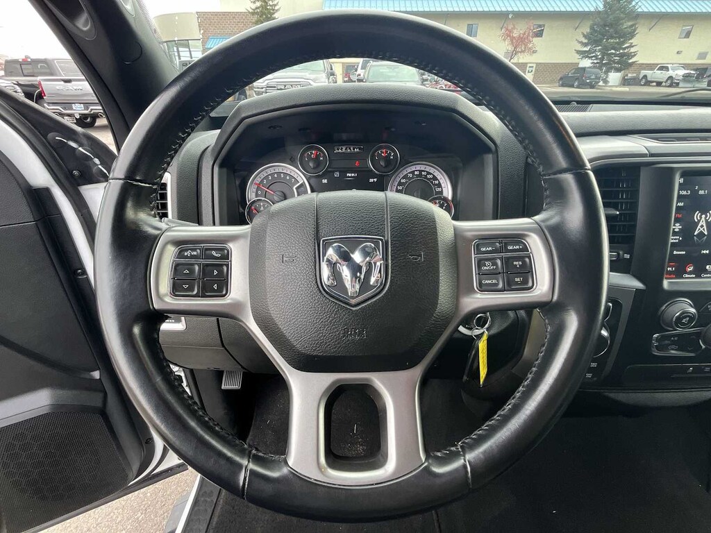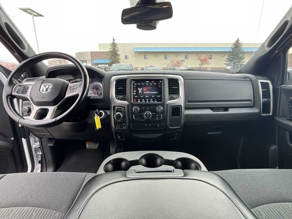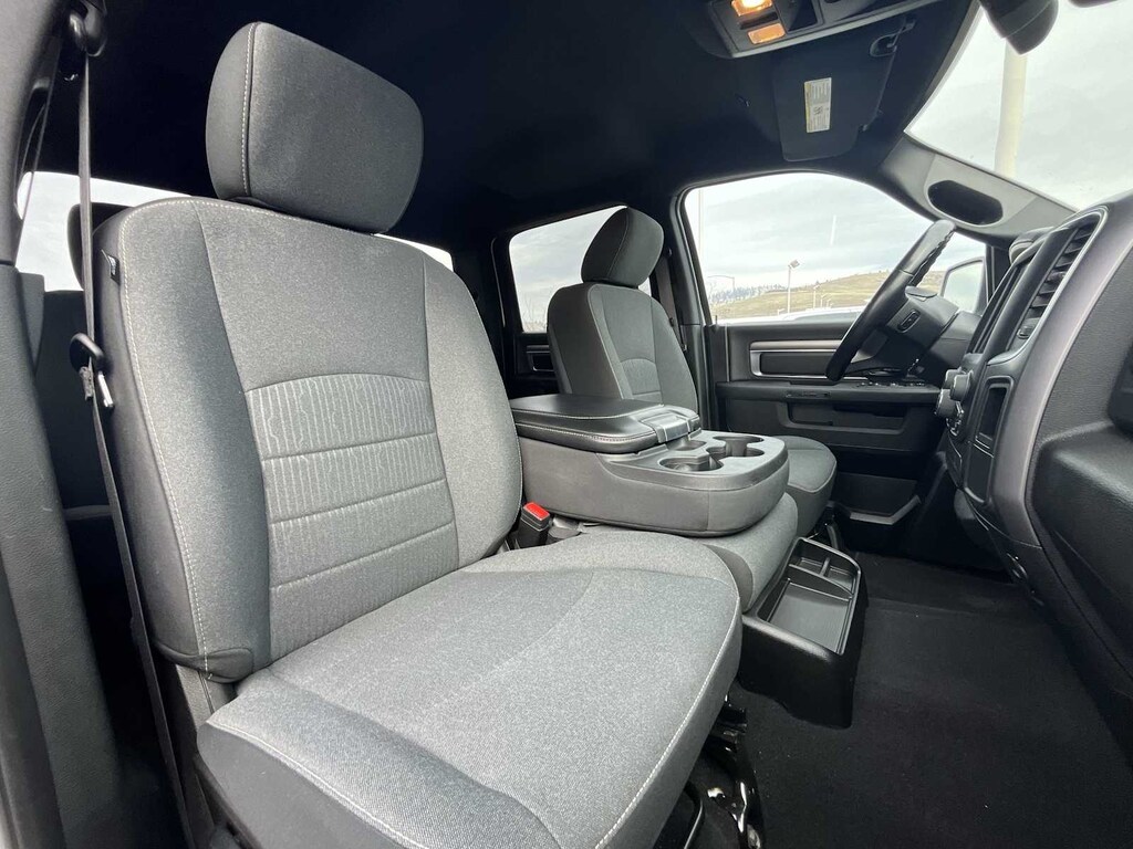 LUXURY GROUP Auto-Dimming Rearview Mirror, Leather-Wrapped Steering Wheel, Exterior Mirrors w/Turn Signals, Rear Dome Lamp w/On/Off Switch, LED Bed Lighting, Steering Wheel-Mounted Audio Controls, Exterior Mirrors w/Courtesy Lamps, Glove Box Lamp, Auto-Dimming Exterior Driver Mirror, 7 Colour In-Cluster Display, Universal Garage Door Opener, Power Folding Exterior Mirrors, 2nd Row In-Floor Storage Bins, Black Power Fold Heated Mirrors w/Signals, Sun Visors w/Illuminated Vanity Mirrors, Overhead Console/Garage Door Opener, REMOTE START & SECURITY ALARM GROUP Remote Start System, Security Alarm, QUICK ORDER PACKAGE 26F WARLOCK Engine: 5.7L HEMI VVT V8 w/FuelSaver MDS, Transmission: 8-Speed TorqueFlite Automatic (DFK), Black Door Handles, Black Powder-Coated Rear Bumper, Black RAMs Head Tailgate Badge, Black 4x4 Badge, Semi-Gloss Black Wheel Centre Hub, Bi-Function Halogen Projector Headlamps, Rear Heavy-Duty Shock Absorbers, Sport Tail Lamps, Black Exterior Badging, Black Powder-Coated Front Bumper, Warlock Package, Black Grille w/RAM Lettering, Black Headlamp Filler Panel, Dedicated Daytime Running Lights, Front Wheel Well Liners, Warlock Interior Accents, Dual Rear Exhaust w/Bright Tips, Black Wheel Flares, ELECTRONICS CONVENIENCE GROUP Google Android Auto®, For SiriusXM Info Call 888-539-7474, SiriusXM Satellite Radio, USB Mobile Projection, Media Hub w/2 USB & Aux Input Jack, Radio: Uconnect 4C w/8.4 Display, A/C w/Dual-Zone Automatic Temperature Control, Humidity Sensor, 8.4 Touchscreen, Apple CarPlay® Capable, TRANSMISSION: 8-SPEED TORQUEFLITE AUTOMATIC (DFK), ENGINE: 5.7L HEMI VVT V8 W/FUELSAVER MDS GVWR: 3,129 kgs (6,900 lbs), Electronically Controlled Throttle, Heavy-Duty Engine Cooling, Next Generation Engine Controller, Engine Oil Heat Exchanger, Hemi Badge, Heavy-Duty Transmission Oil Cooler, CLASS IV HITCH RECEIVER.