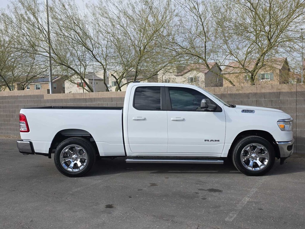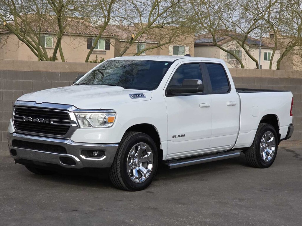 Our bold, Accident Free 2021 RAM 1500 Big Horn Quad Cab 4X2 with the Level 1 Pack makes a powerful impression in Bright White! Motivated by a 5.7 Liter HEMI V8 supplying 395hp connected to an 8 Speed Automatic transmission so you can tow or haul without breaking a sweat. This trail-friendly Rear Wheel Drive truck also rewards you with responsive handling, and it achieves nearly 22mpg on the highway. Take command of your challenges in style with our RAMs quad halogen headlights, fog lamps, a chrome grille, alloy wheels, bright bumpers, and our Level 1 Pack for a Class IV receiver-hitch and heated power-folding mirrors. Step bars and a spray-on bedliner have been installed, too.