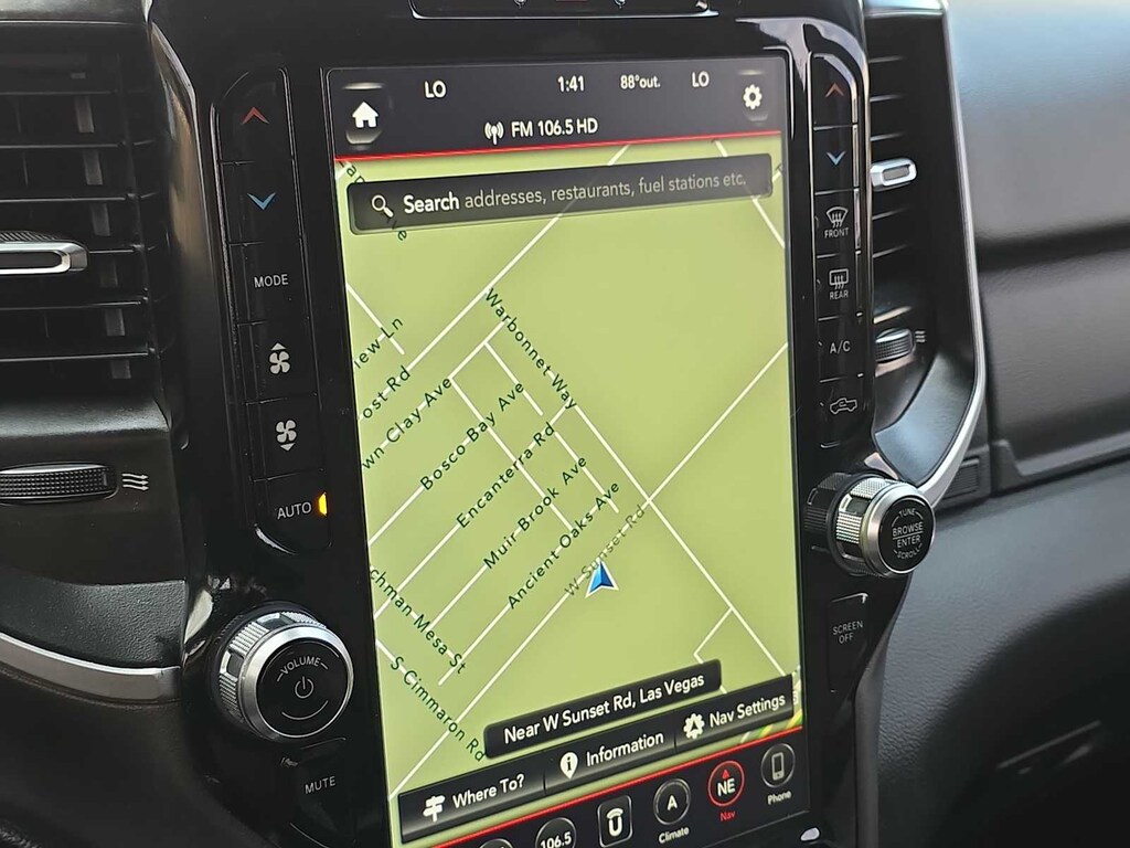 Blending comfort and utility, our Big Horn cabin serves you well with Level 2 Equipment like heated front seats, a heated steering wheel, dual-zone automatic climate control, power-adjustable pedals, and advanced Uconnectî 4 technology that includes a 12-inch touchscreen, a full-color navigation system, Android Autoî/Apple CarPlayî, Bluetoothî, and a nine-speaker sound system. The smart layout keeps you fresh during long days, too!