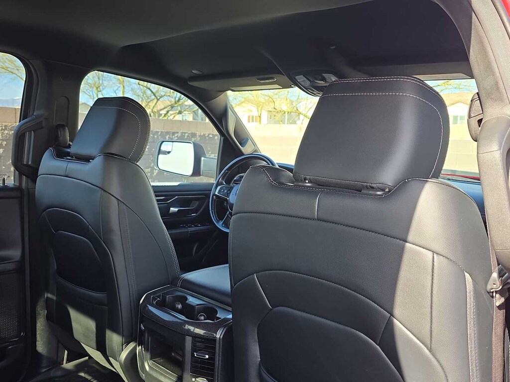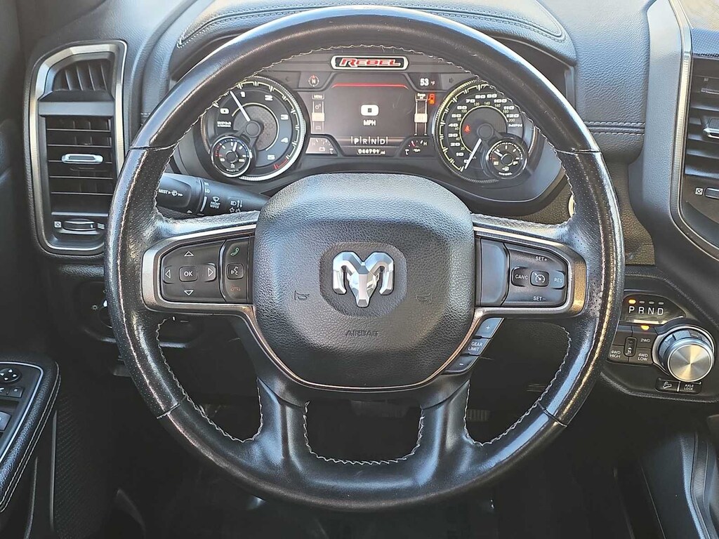 Our Rebel interior helps you tame the tough stuff with comfort and convenience. Top features include our Level 1 Equipment Package, exclusive Rebel heated front seats with 12-way power for the driver, mesh inserts, red accent stitching, a heated leather-wrapped steering wheel, air conditioning, power-adjustable pedals, a power rear window, and a 7-inch Rebel driver display. Uconnectî technology, an 8.4-inch infotainment screen, Bluetoothî, voice recognition, and a six-speaker sound system help you connect on the move.