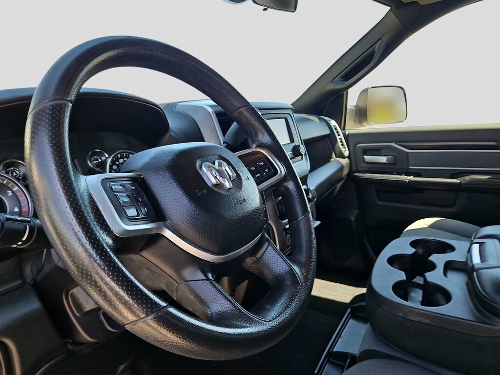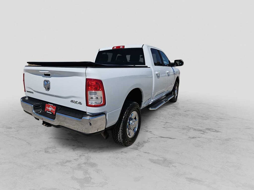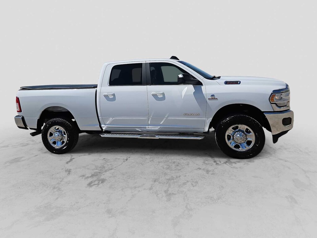 ENGINE: 6.7L I6 CUMMINS TURBO DIESEL Selective Catalytic Reduction (Urea), Dual 730 Amp Maintenance Free Batteries, Cummins Turbo Diesel Badge, Heavy Duty Engine Cooling, Tow Hooks, Diesel Exhaust Brake, Supplemental Heater, Front Bumper Sight Shields, Capless Fuel Fill w/o Discriminator, CHROME FLAT CAB-LENGTH SIDE STEPS, TRANSMISSION: 6-SPEED AUTOMATIC (68RFE) Chrome Accent Shift Control. Ram Big Horn with Bright White Clearcoat exterior and Diesel Gray/Black interior features a Straight 6 Cylinder Engine with 370 HP at 2800 RPM*.