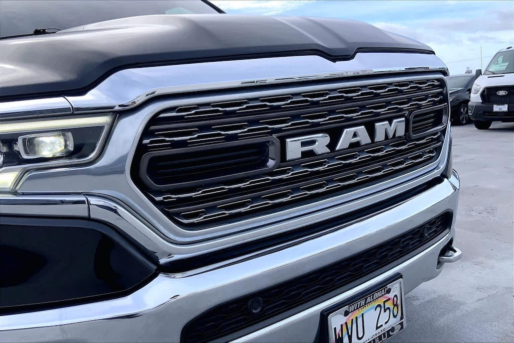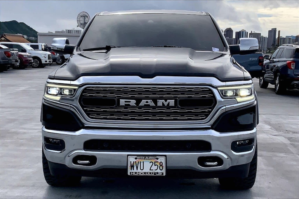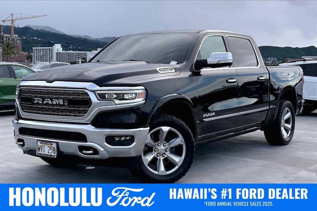 HONOLULU FORD! 808-532-1700, *DONT WAIT! CALL NOW!!, FINANCING AVAILABLE, GUARANTEED APPROVALS! LOW PAYMENTS! GREAT INTEREST RATES!, ***FORD CERTIFIED VEHICLE!! 172 POINT INSPECTION, OIL CHANGE, NEW WIPERS, NEW AIR FILTERS, FULL DET, WE SHIP TO NEIGHBOR ISLANDS!, 172 POINT INSPECTION BY FACTORY TRAINED TECHNICIANS!, STATE SAFETY INSPECTION COMPLETE!, APPLE CAR PLAY/ANDROID AUTO, BLUETOOTH HANDS FREE CALLING, ONE OWNER!!, ACCIDENT FREE CARFAX!, *LEATHER SEATS*, *HEATED SEATS, BACK-UP CAMERA, EXTRA CLEAN, WELL TAKEN CARE OF, EXCELLENT FUEL ECONOMY, PREMIUM WHEELS, EXCELLENT CONDITION!, EXCELLENT SERVICE HISTORY!!, ADAPTIVE CRUISE CONTROL, PARKING SENSORS, UPGRADED WHEELS, TOUCH SCREEN, 10 Speakers, 3.21 Rear Axle Ratio, 4 Way Front Headrests, 4-Wheel Disc Brakes, 48V Belt Starter Generator, ABS brakes, Active Noise Control System, Adjustable pedals, Air Conditioning, Alloy wheels, AM/FM radio, Apple CarPlay/Android Auto, Audio memory, Auto High-beam Headlights, Auto-dimming door mirrors, Auto-Dimming Exterior Driver Mirror, Auto-Dimming Exterior Passenger Mirror, Auto-dimming Rear-View mirror, Auto-leveling suspension, Automatic temperature control, Bodyside moldings, Brake assist, Bucket Seats, Bumpers: chrome, Chrome Exterior Mirrors, Compass, Convex Wide-Angle Mirror Insert, Delay-off headlights, Driver door bin, Driver Seat Memory, Driver vanity mirror, Dual front impact airbags, Dual front side impact airbags, Dual Rear Exhaust w/Bright Tips, Electronic Stability Control, Exterior 115V AC Outlet, Exterior Mirrors Courtesy Lamps, Exterior Mirrors w/Heating Element, Exterior Mirrors w/Memory, Exterior Mirrors w/Supplemental Signals, Exterior Parking Camera Rear, Front anti-roll bar, Front Bucket Seats, Front Center Armrest w/Storage, Front dual zone A/C, Front fog lights, Front License Plate Bracket, Front reading lights, Front Seat Back Map Pockets, Front wheel independent suspension, Full Length Premium Floor Console, Fully automatic headlights, Garage door transmitter, Genuine wood console insert, Genuine wood dashboard insert, Genuine wood door panel insert, Heated door mirrors, Heated Front Seats, Heated front seats, Heated rear seats, Heated Second Row Seats, Heated Steering Wheel, Heated steering wheel, Heavy-Duty Engine Cooling, HEMI Badge, Illuminated entry, Leather steering wheel, Low tire pressure warning, Manufacturers Statement of Origin, Memory seat, Navigation System, Occupant sensing airbag, Outside temperature display, Overhead airbag, Overhead console, Panic alarm, Passenger door bin, Passenger vanity mirror, Pedal memory, Power 4-Way Driver Lumbar Adjust, Power 4-Way Passenger Lumbar Adjust, Power 8-Way Driver & Passenger Seats, Power door mirrors, Power driver seat, Power passenger seat, Power steering, Power windows, Power-Folding Mirrors, Premium Leather Trimmed Bucket Seats, Quick Order Package 27M Limited, Radio data system, Radio: Uconnect 5 Nav w/12.0 Display, Rain sensing wipers, RamBox Cargo Management System, Rear 60/40 Folding Split Recline Seat, Rear anti-roll bar, Rear seat center armrest, Rear step bumper, Rear window defroster, Remote keyless entry, Security system, Speed control, Split folding rear seat, Steering wheel mounted audio controls, Tachometer, Telescoping steering wheel, Tilt steering wheel, Traction control, Trip computer, Turn signal indicator mirrors, Variably intermittent wipers, Ventilated Front Seats, Ventilated front seats, Voltmeter, Wheels: 20 x 9 Aluminum Painted/Polished, Wheels: 20 x 9 Polished w/Inserts (DISC). Recent Arrival! Clean CARFAX. Diamond Black Crystal Pearlcoat 2022 Ram 1500 Limited RWD 8-Speed Automatic HEMI 5.7L V8 Multi Displacement VVT