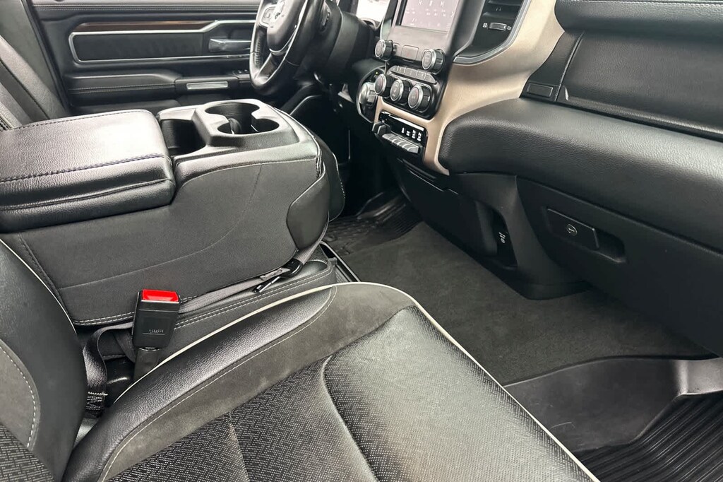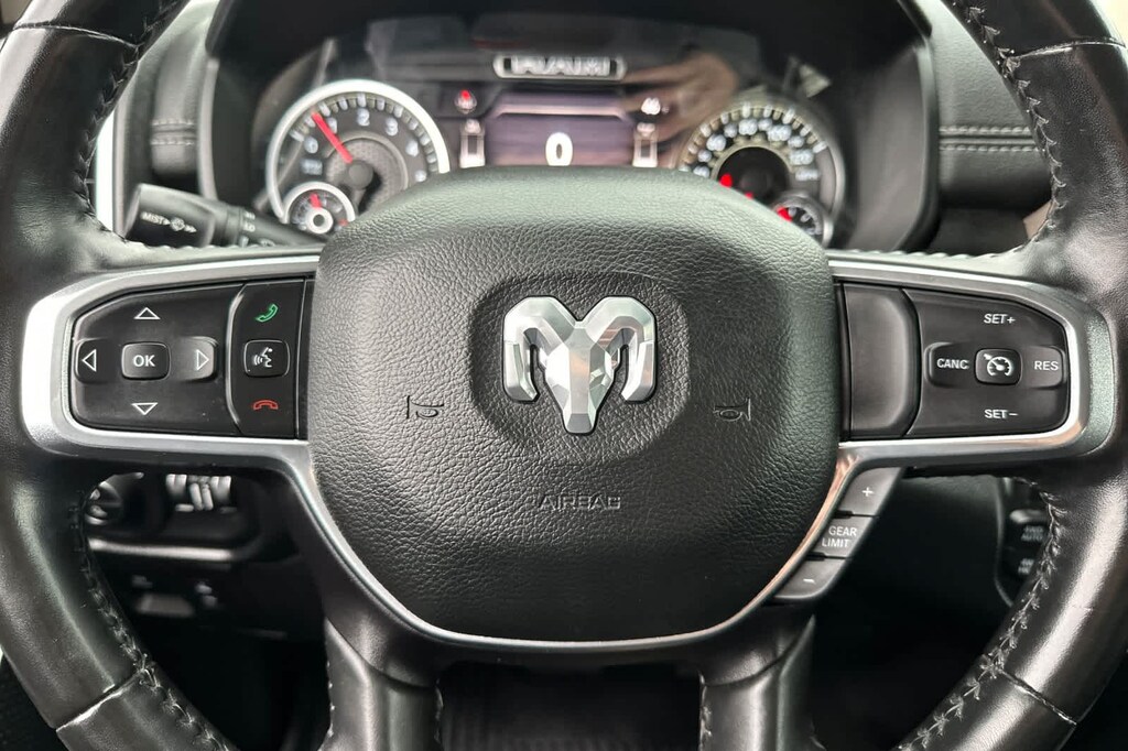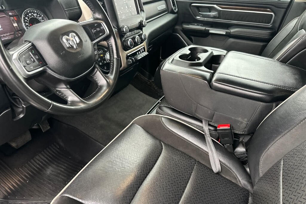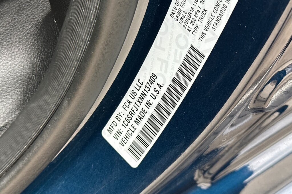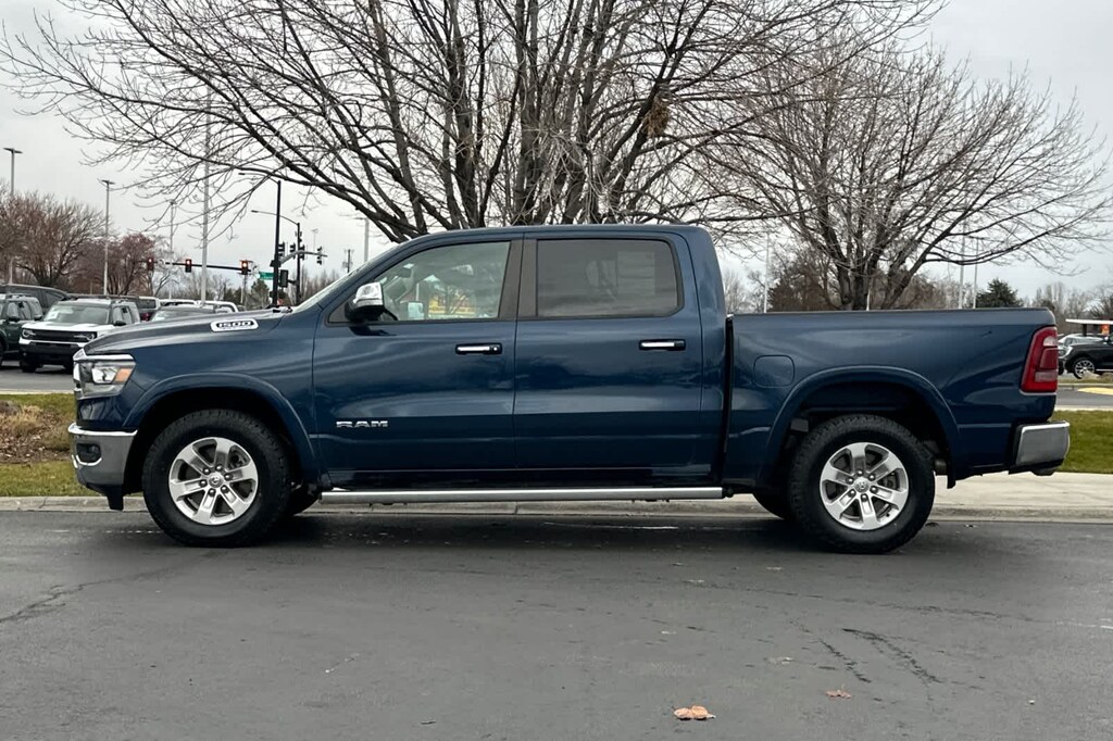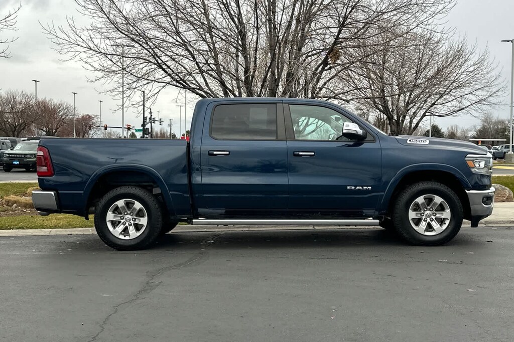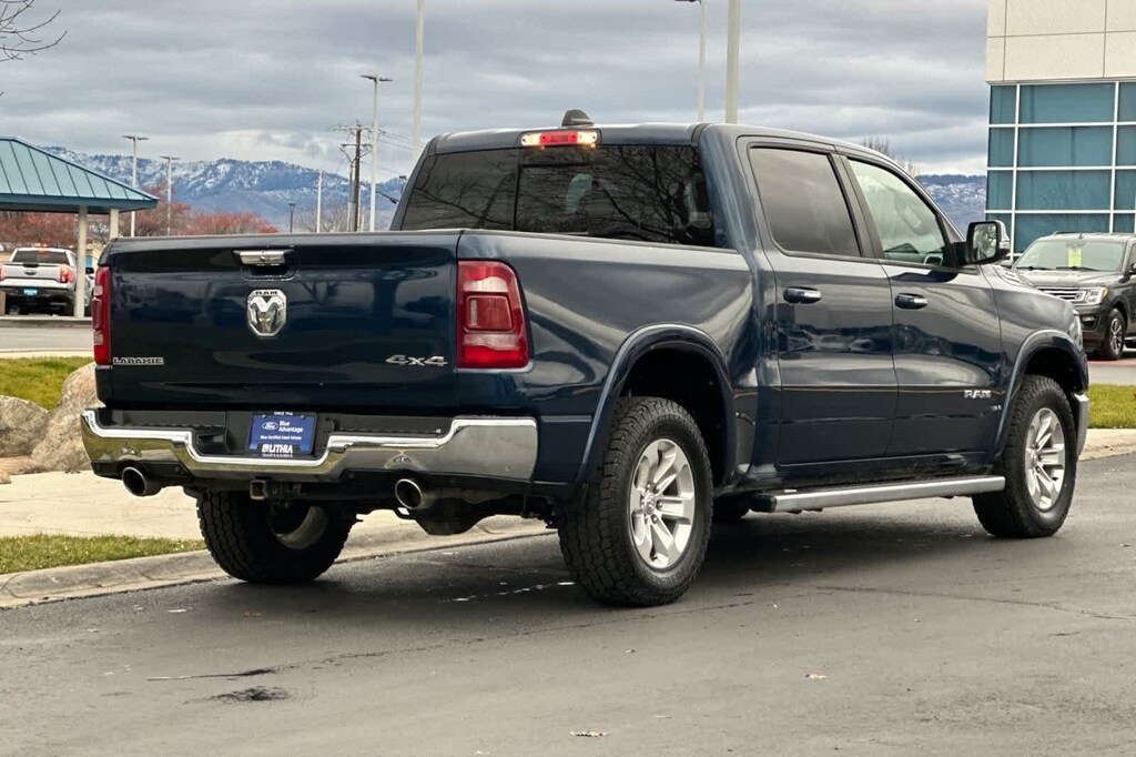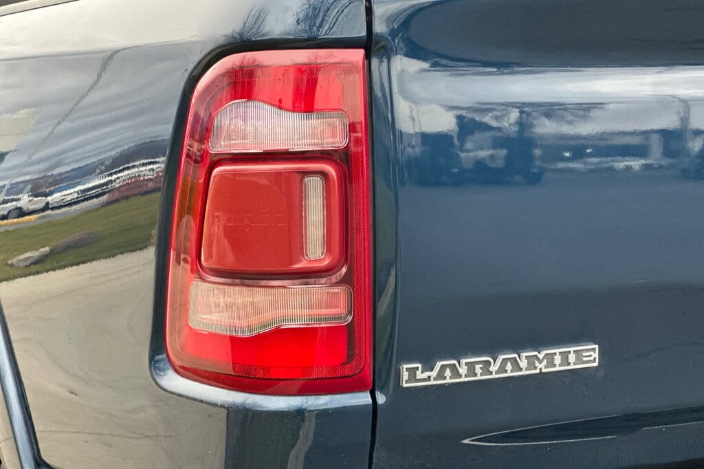 ENGINE: 5.7L V8 HEMI MDS VVT ETORQUE Active Noise Control System, Heavy Duty Engine Cooling, Passive Tuned Mass Damper, GPEC 5 Engine Controller, GVWR: 7,100 lbs, Dual Rear Exhaust w/Bright Tips, HEMI Badge, 23 Gallon Fuel Tank, 18 Aluminum Spare Wheel, LARAMIE LEVEL A EQUIPMENT GROUP Remote Tailgate Release, Auto High Beam Headlamp Control, Rain Sensitive Windshield Wipers, ParkSense Front/Rear Park Assist w/Stop, Foam Bottle Insert (Door Trim Panel), Rear 60/40 Folding Split Recline Seat, ANTI-SPIN DIFFERENTIAL REAR AXLE, TRANSMISSION: 8-SPEED AUTOMATIC (8HP75). 2022 Ram 1500 with Patriot Blue Pearlcoat exterior and Black interior features a 8 Cylinder Engine with 305 HP at 6400 RPM*.