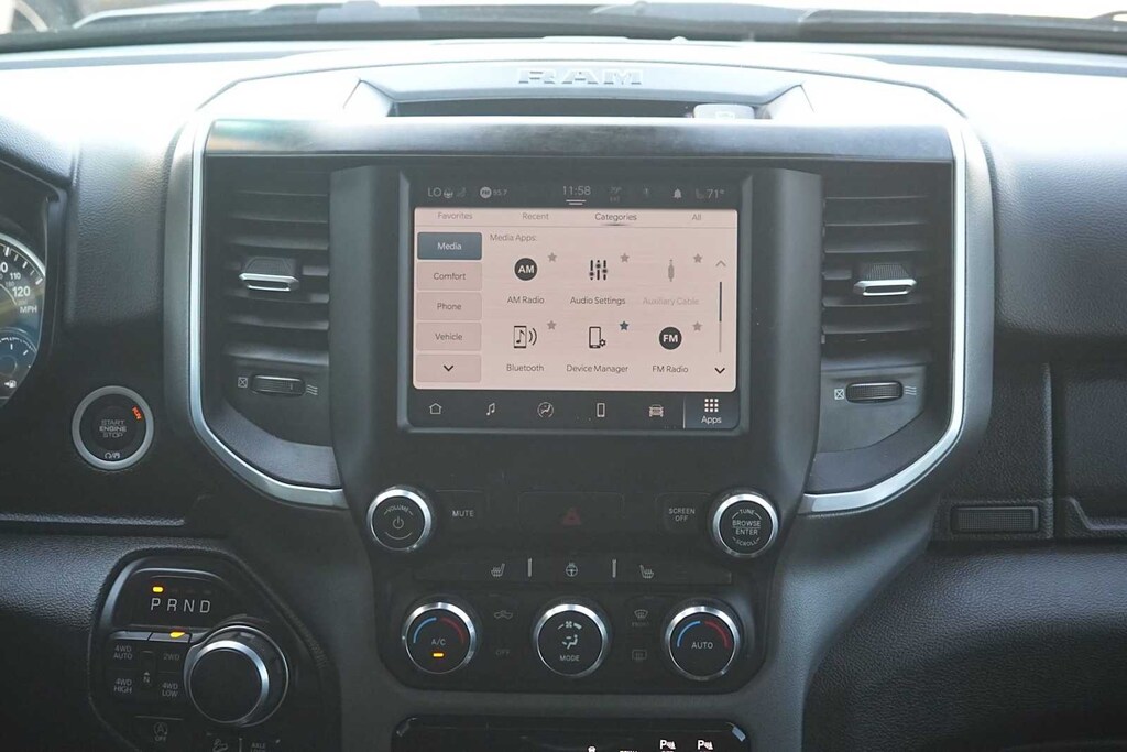 LOCAL TRADE, BLUETOOTH, CLEAN CARFAX, NON-SMOKER, CARFAX ONE OWNER, Service Records Available!, Remainder of Factory Warranty Still Applies!, ** TRAILER HITCH, ** HEATED SEATS, ** REARVIEW CAMERA, ** KEYLESS ENTRY, ** APPLE CARPLAY, ** REMOTE ENGINE START, ** BLUETOOTH, HANDS-FREE, ** KEYLESS START, ** PREMIUM WHEELS, ** ANDROID AUTO, ** LANE DEPARTURE WARNING, ** SATELLITE RADIO, ** STEERING WHEEL CONTROLS, ** ALARM SYSTEM, ** WIFI HOTSPOT, ** AUXILIARY AUDIO INPUT, ** LOCAL TRADE-IN, ** LOCALLY OWNED AND SERVICED, ** ALL WHEEL DRIVE, ** FOUR WHEEL DRIVE, ** BACK UP CAMERA, ** ALLOY WHEELS, 1500 Big Horn/Lone Star, 4D Crew Cab, HEMI 5.7L V8 Multi Displacement VVT, 8-Speed Automatic, 4WD, Billet Silver Metallic Clearcoat, Black Cloth, 115V Auxiliary Power Outlet, 115V Auxiliary Rear Power Outlet, 26 Gal. Fuel Tank (Replace 23 Gal.) (DISC), 2nd Row In Floor Storage Bins, 3 Rear Seat Head Restraints, 3.21 Rear Axle Ratio, 4 Way Front Headrests, 4-Wheel Disc Brakes, 400W Inverter, 48V Belt Starter Generator, 4G LTE Wi-Fi Hot Spot, 6 Speakers, 8.4 Touchscreen Display, 9 Amplified Speakers w/Subwoofer, ABS brakes, Air Conditioning, Air Conditioning ATC w/Dual Zone Control, All Plant-Installed Decals, Alloy wheels, AM/FM radio, Anti-Spin Differential Rear Axle, Apple CarPlay, Auto-Dimming Exterior Driver Mirror, Auto-Dimming Rear-View Mirror, Big Horn Level 2 Equipment Group, Black Exterior Mirrors, Black Exterior Truck Badging, Black Headlamp Bezels, Black Interior Accents, Black Premium Power Mirrors, Bluetooth Handsfree Phone & Audio, Body Color Front Bumper, Body Color Rear Bumper w/Step Pads, Brake assist, Bucket Seats, Bumpers: chrome, Class IV Receiver Hitch, Cloth Bench Seat, Cluster 7.0 TFT Color Display, Compass, Connectivity - US/Canada, Convex Wide-Angle Mirror Insert, Delay-off headlights, Delete LED Lamp - Floor Console Bin, Deluxe Cloth Bucket Seats, Driver door bin, Dual Exhaust w/Black Tips, Dual front impact airbags, Dual front side impact airbags, E-Locker Rear Axle, Electronic Stability Control, Emergency communication system: SiriusXM Guardian, Exterior Mirrors Courtesy Lamps, Exterior Mirrors w/Heating Element, Exterior Mirrors w/Supplemental Signals, For Details, Visit DriveUconnect.com, Front anti-roll bar, Front Center Armrest w/Storage, Front Extra HD Shock Absorbers, Front fog lights, Front License Plate Bracket, Front reading lights, Front Seat Back Map Pockets, Front wheel independent suspension, Full Length Floor Console, Fully automatic headlights, Global Telematics Box Module (TBM), Glove Box Lamp, Google Android Auto, GPS Antenna Input, Heated door mirrors, Heated Front Seats, Heated Steering Wheel, Heavy-Duty Engine Cooling, Hill Descent Control, Illuminated entry, Integrated Center Stack Radio, Integrated Voice Command w/Bluetooth, Leather steering wheel, Lone Star Badge, Low tire pressure warning, Manual Adjust 4-Way Front Passenger Seat, Media Hub w/2 Charge Only USBs, Night Edition (DISC), Occupant sensing airbag, Off Road Decals, Off Road Group, Outside temperature display, Overhead airbag, Overhead console, Panic alarm, ParkSense Front/Rear Park Assist w/Stop, ParkView Rear Back-Up Camera, Passenger door bin, Passenger vanity mirror, Power 2-Way Driver Lumbar Adjust, Power 8-Way Driver Seat, Power Adjustable Pedals, Power door mirrors, Power steering, Power windows, Power-Folding Mirrors, Quick Order Package 27R Lone Star (Regional), Radio data system, Radio: Uconnect 3 w/5 Display, Radio: Uconnect 5 W w/8.4 Display, Raised Ride Height, Rear 60/40 Folding Seat, Rear anti-roll bar, Rear Center Armrest, Rear Dome w/On/Off Switch Lamp, Rear Extra HD Shock Absorbers, Rear Power Sliding Window, Rear seat center armrest, Rear step bumper, Rear Window Defroster, Remote keyless entry, Remote Start System, Security Alarm, SiriusXM Radio Service, SiriusXM Satellite Radio, Speed control, Split folding rear seat, Steering wheel mounted audio controls, Sun Visors w/Illuminated Vanity Mirrors, Tachomete