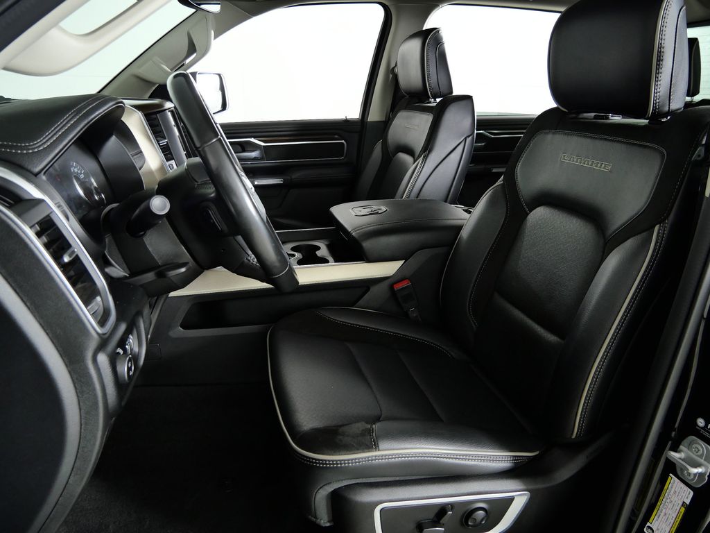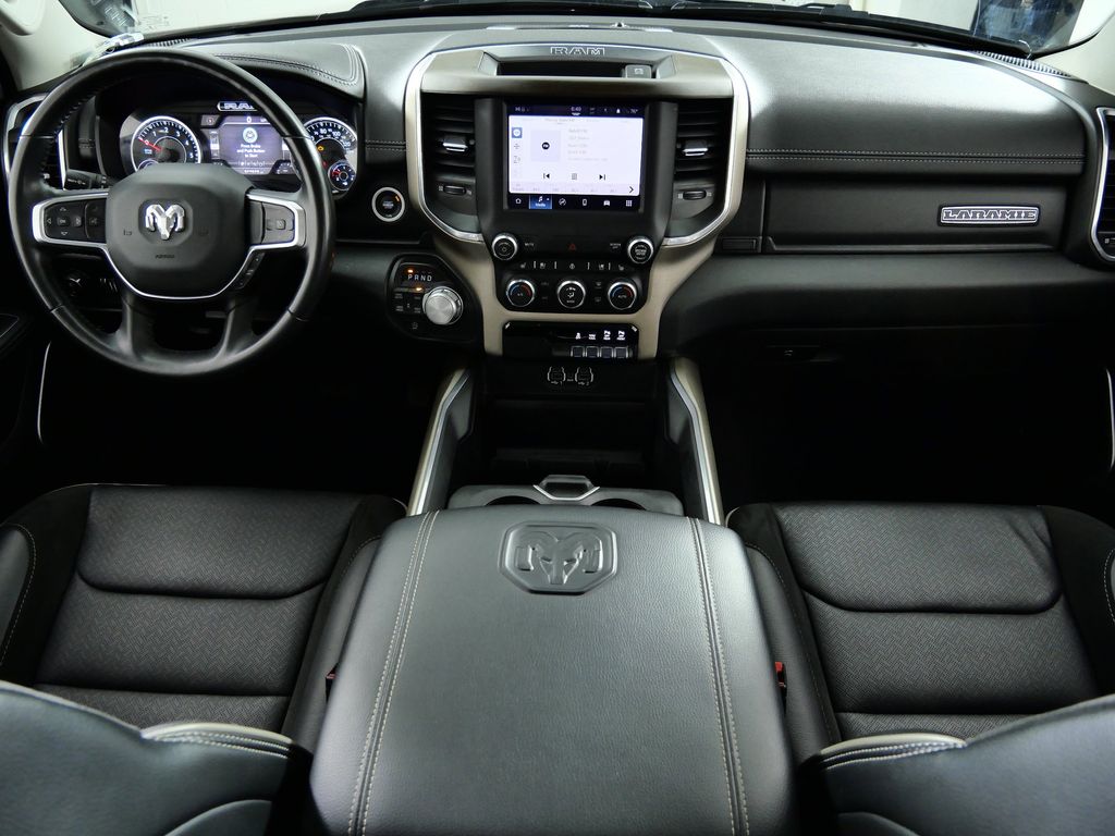 Step inside the 2022 Ram 1500 Laramie and experience the epitome of modern truck design. The spacious and well-appointed cabin offers an array of premium amenities, from the leather-wrapped steering wheel and heated front seats to the advanced Uconnect infotainment system with an 8.4-inch touchscreen display. Enjoy the convenience of features like remote tailgate release, auto high-beam headlamps, and rain-sensitive windshield wipers, all seamlessly integrated into the Laramie's sophisticated interior.