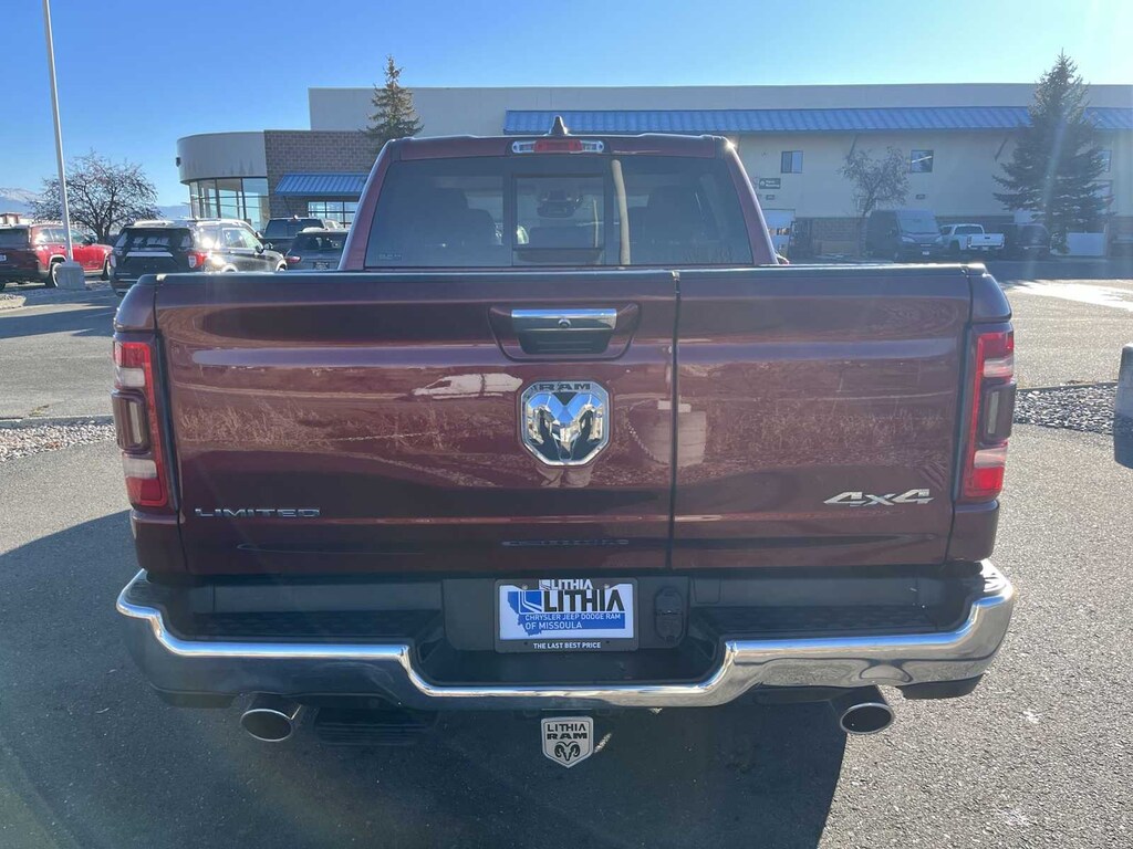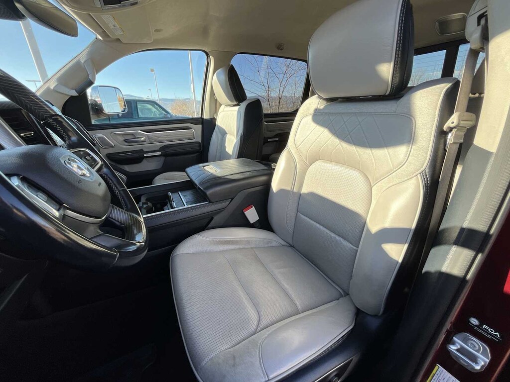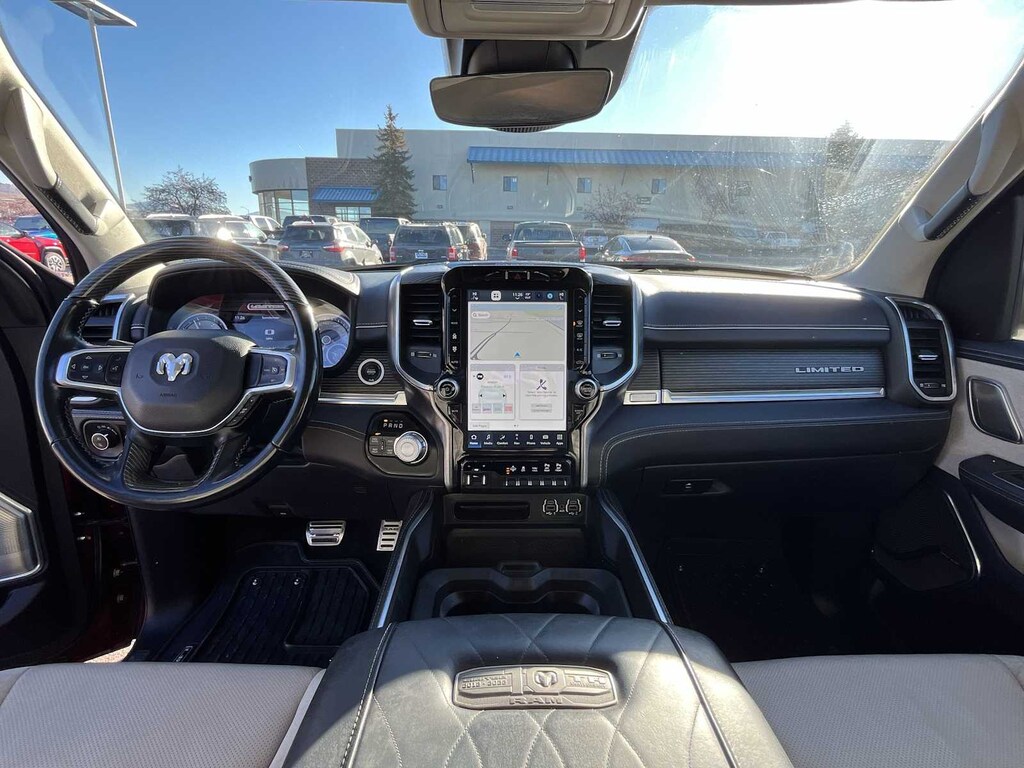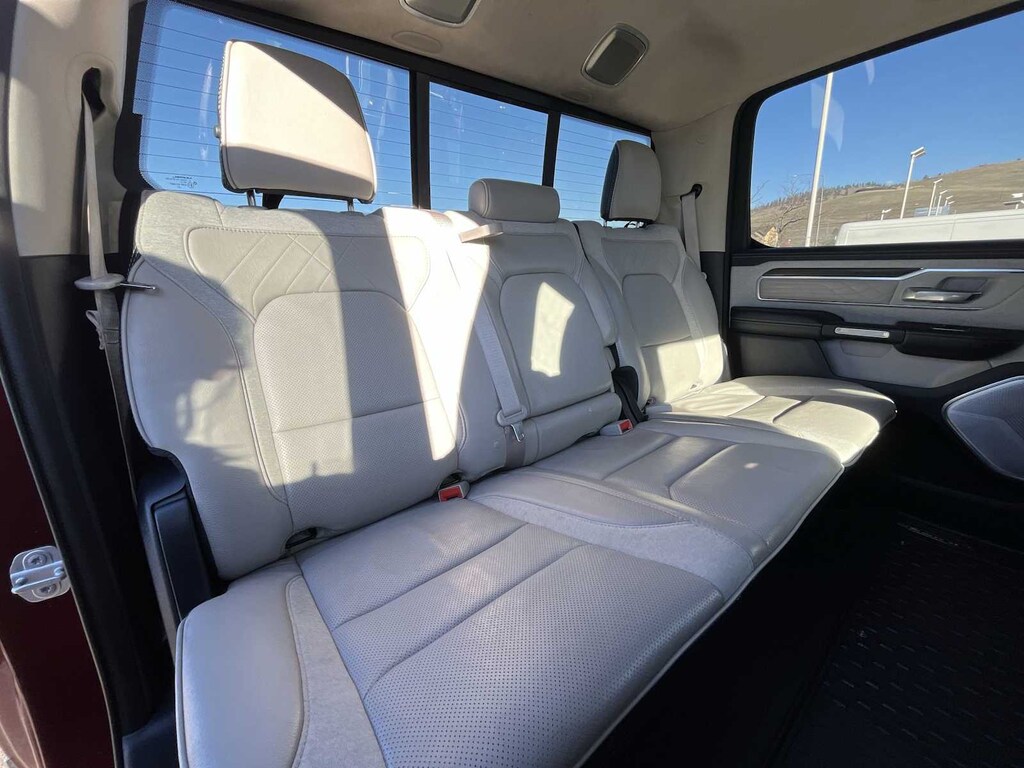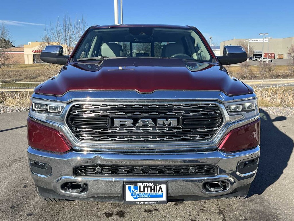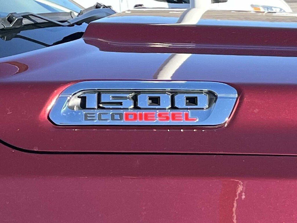 ENGINE: 3.0L V6 TURBO DIESEL GEN 3 Secondary Active Grille Shutters, 800 Amp Maintenance Free Battery, EcoDiesel Badge, 250 Amp Alternator, GVWR: 7,200 lbs, Thermal Rear Axle, LIMITED 10TH ANNIVERSARY EDITION Multi-Function Tailgate, harman/kardon® 19 Speaker Premium Sound, Rotary Shifter-Jeweled, Suede Headliner, Instrument Cluster Theme 8, MOPAR 4 Adjustable Cargo Tie-Down Hooks, Tailgate Ajar Warning Lamp, MOPAR Deployable Bed Step Center Mount, MOPAR Bright Pedal Kit, CHROME POWER-FOLD TRAILER TOW MIRRORS Mirror-Mounted Aux Reverse Lamps, Mirror Clearance/Running Lights, Trailer Tow Mirrors, TRANSMISSION: 8-SPEED AUTOMATIC (8HP75) (DFV). Ram Limited with Delmonico Red Pearlcoat exterior and Indigo/Sea Salt interior features a V6 Cylinder Engine with 395 HP at 5600 RPM*.
