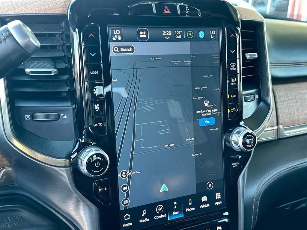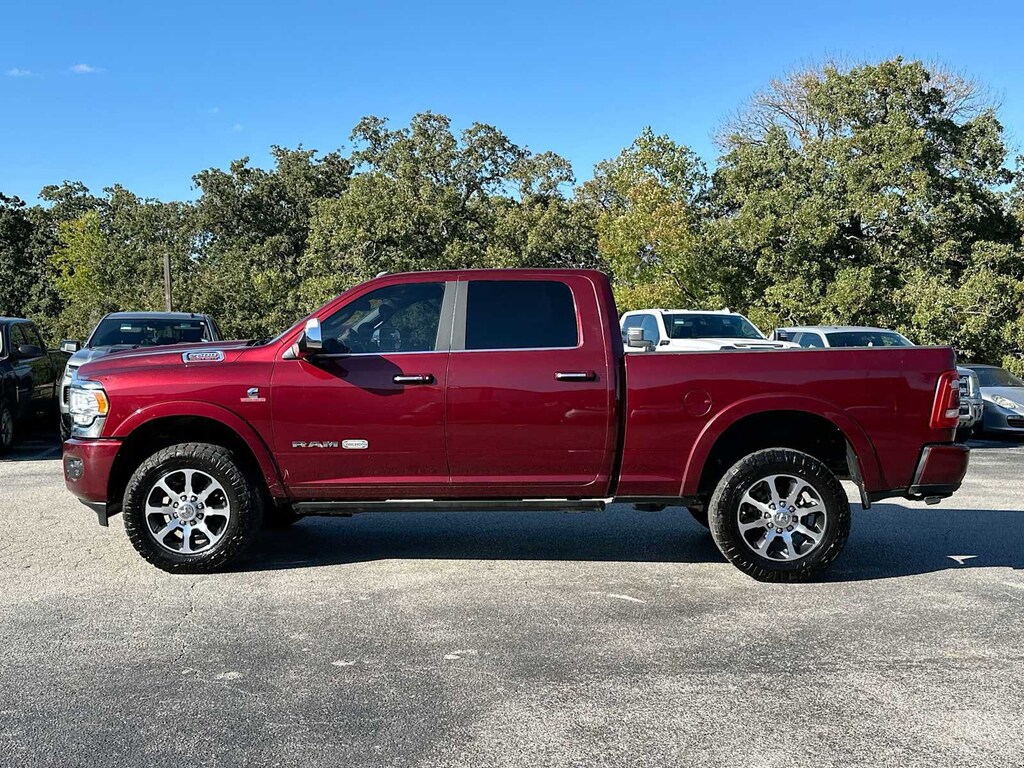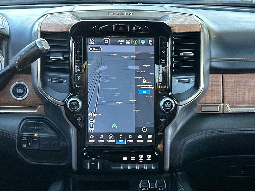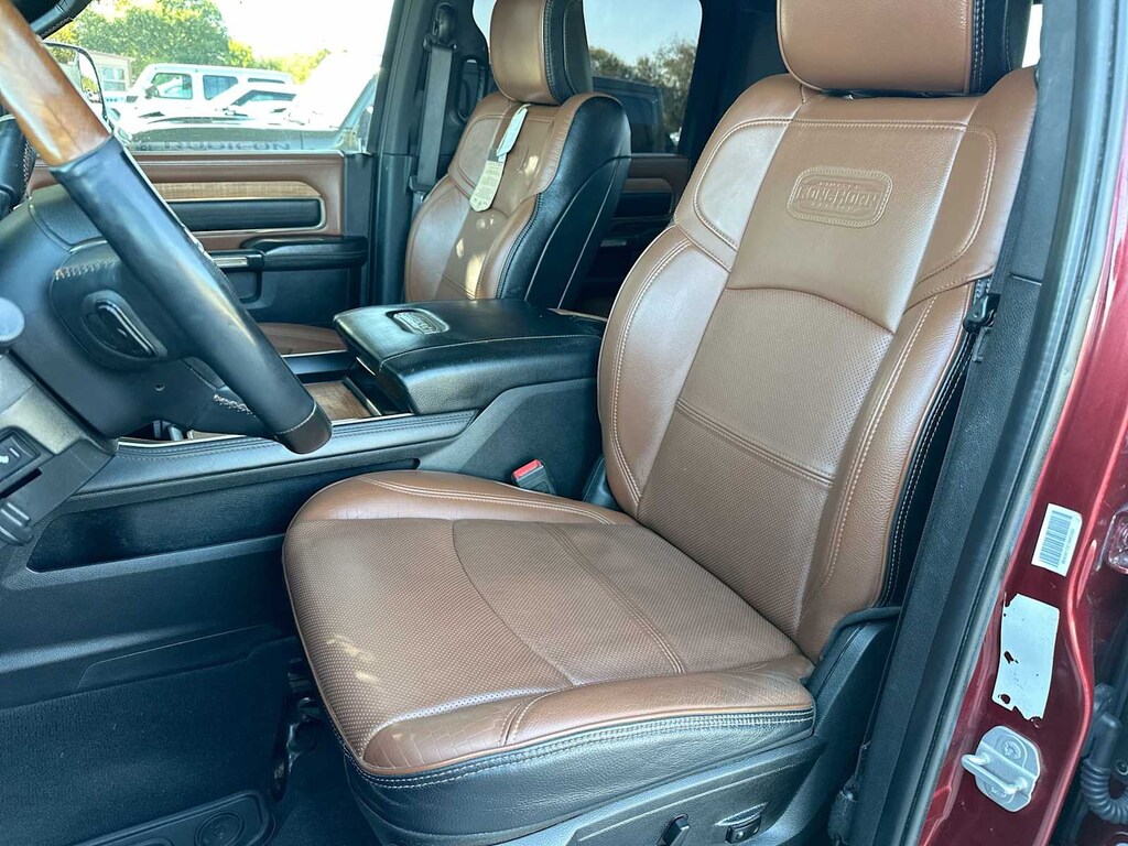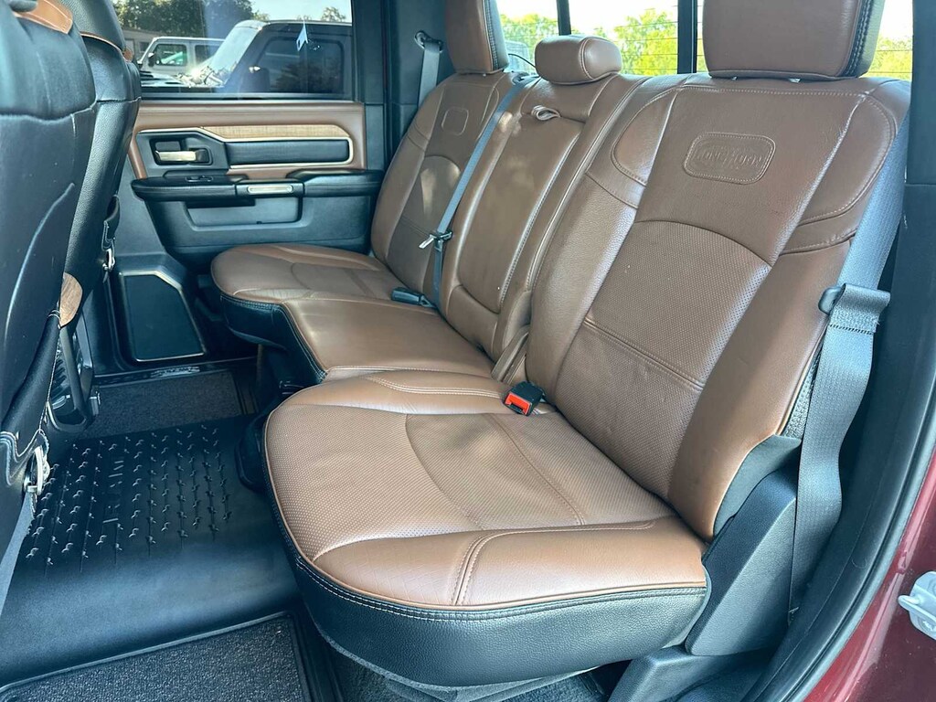 ENGINE: 6.7L I6 CUMMINS TURBO DIESEL Selective Catalytic Reduction (Urea), Dual 730 Amp Maintenance Free Batteries, Cummins Turbo Diesel Badge, Heavy Duty Engine Cooling, Supplemental Heater, 220 Amp Alternator, Diesel Exhaust Brake, Front Bumper Sight Shields, Capless Fuel Fill w/o Discriminator, Distribution Services Tracking, LONGHORN LEVEL 1 EQUIPMENT GROUP 17 Speaker harman/kardon Premium Sound, Power Deployable Running Boards, Blind Spot & Cross Path Detection, Ramcharger Wireless Charging Pad, Radio: Uconnect 5 Nav w/12.0 Display, For Details, Visit DriveUconnect.com, For More Info, Call 800-643-2112, 12 Touchscreen Display, All Radio Equipped Vehicles, All R1 High Radios, WHEELS: 20 X 8.0 DIAMOND CUT FACE ALUMINUM Tires: LT285/60R20E OWL On/Off Road, TOWING TECHNOLOGY GROUP CTR Stop Lamp w/Cargo View Camera, Surround View Camera System, Trailer Reverse Guidance, TRANSMISSION: 6-SPEED AUTOMATIC (68RFE) Leather Wrapped Shift Control. Ram Longhorn with Delmonico Red Pearlcoat exterior and Cattle Tan/Black interior features a Straight 6 Cylinder Engine with 370 HP at 2800 RPM*.