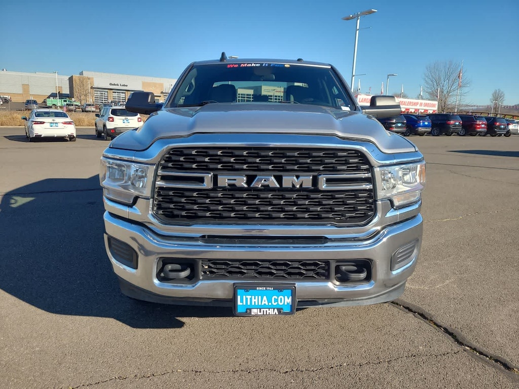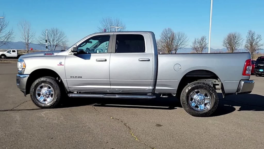 ENGINE: 6.7L I6 CUMMINS TURBO DIESEL Selective Catalytic Reduction (Urea), Dual 730 Amp Maintenance Free Batteries, Cummins Turbo Diesel Badge, Heavy Duty Engine Cooling, Supplemental Heater, Tow Hooks, Diesel Exhaust Brake, Front Bumper Sight Shields, Capless Fuel Fill w/o Discriminator, Distribution Services Tracking, CHROME FLAT CAB-LENGTH SIDE STEPS, TRANSMISSION: 6-SPEED AUTOMATIC (68RFE) Chrome Accent Shift Control. Ram Big Horn with Billet Silver Metallic Clearcoat exterior and Diesel Gray/Black interior features a Straight 6 Cylinder Engine with 370 HP at 2800 RPM*.