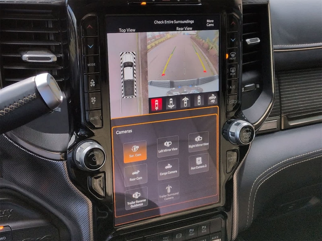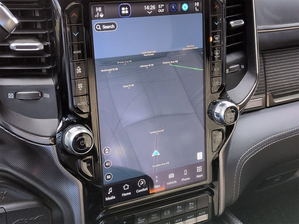 10 Speakers, 12 Touchscreen Display, 17 Speaker harman kardon Premium Sound, 220 Amp Alternator, 3.73 Axle Ratio, 4-Wheel Disc Brakes, 4G LTE Wi-Fi Hot Spot, 50 Gallon Fuel Tank, ABS brakes, Active Noise Control System, Adaptive Cruise Control w/Stop, Adaptive Steering System, Adjustable pedals, Air Conditioning, Air Suspension Decal, Alloy wheels, AM/FM radio: SiriusXM with 360L, Apple CarPlay, Apple CarPlay/Android Auto, Audio memory, Auto High-beam Headlights, Auto Level Rear Air Suspension, Auto-dimming Rear-View mirror, Automatic temperature control, Bodyside moldings, Brake assist, Bumpers: chrome, Center Hub, Compass, Connected Travel & Traffic Services, Connectivity - US/Canada, CTR Stop Lamp w/Cargo View Camera, Dash Pass Thru Wire Circuits, Delay-off headlights, Digital Rearview Mirror, Disassociated Touchscreen Display, Driver door bin, Driver vanity mirror, Dual Alternators Rated At 440 Amps, Dual front impact airbags, Dual front side impact airbags, Electronic Stability Control, Electronically Controlled Throttle, Front anti-roll bar, Front Bucket Seats, Front Center Armrest w/Storage, Front dual zone A/C, Front fog lights, Front License Plate Bracket, Front reading lights, Full Speed Forward Collision Warning Plus, Fully automatic headlights, Garage door transmitter, Genuine wood console insert, Genuine wood dashboard insert, Genuine wood door panel insert, Global Telematics Box Module (TBM), Google Android Auto, GPS Antenna Input, GPS Navigation, HD Radio, Heated door mirrors, Heated front seats, Heated rear seats, Heated steering wheel, I/P Mounted Auxiliary Switches, Illuminated entry, Integrated Voice Command w/Bluetooth, Lane Keep Assist, Leather steering wheel, Limited Leather Bucket Seats, Limited Level 1 Equipment Group, Low tire pressure warning, Manufacturers Statement of Origin, Memory seat, MOPAR Deployable Bed Step, Navigation System, Occupant sensing airbag, Off-Road Information Pages, Outside temperature display, Overhead airbag, Overhead console, Panic alarm, ParkView Rear Back-Up Camera, Passenger door bin, Passenger vanity mirror, Pedal memory, Power door mirrors, Power driver seat, Power passenger seat, Power steering, Power windows, Protection Group, Quick Order Package 21M Limited, Radio data system, Radio: Uconnect 5 Nav w/12.0 Display, Rain sensing wipers, Rear reading lights, Rear seat center armrest, Rear step bumper, Rear window defroster, Remote keyless entry, Security system, Selectable Tire Fill Alert, SiriusXM w/360L, Speed control, Split folding rear seat, Steering wheel mounted audio controls, Surround View Camera System, Tachometer, Tilt steering wheel, Tip Start, Traction control, Trailer Reverse Guidance, Trip computer, Turn signal indicator mirrors, Variably intermittent wipers, Ventilated front seats, Voltmeter, Wheels: 20 x 8.0 Satin Carbon w/Chrome Insert. Some of our Pre-Owned vehicles may be subject to unrepaired safety recalls. Check for a vehicle??s unrepaired recalls by VIN at http://vinrcl.safercar.gov/vin/