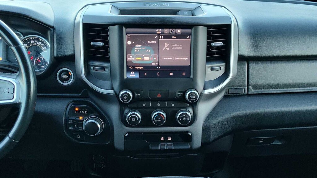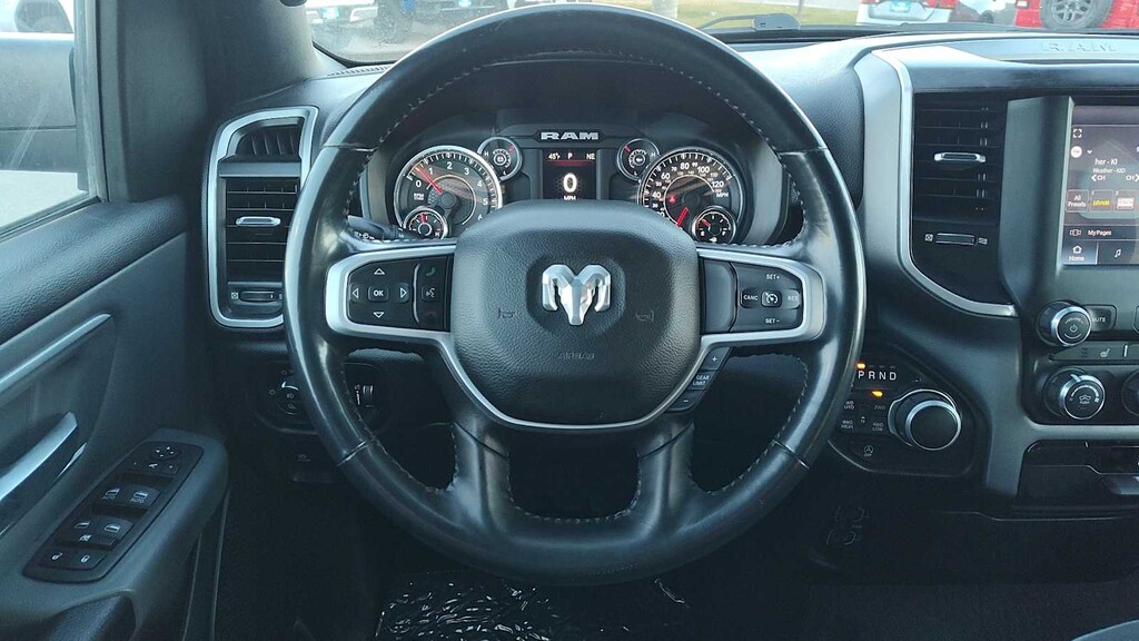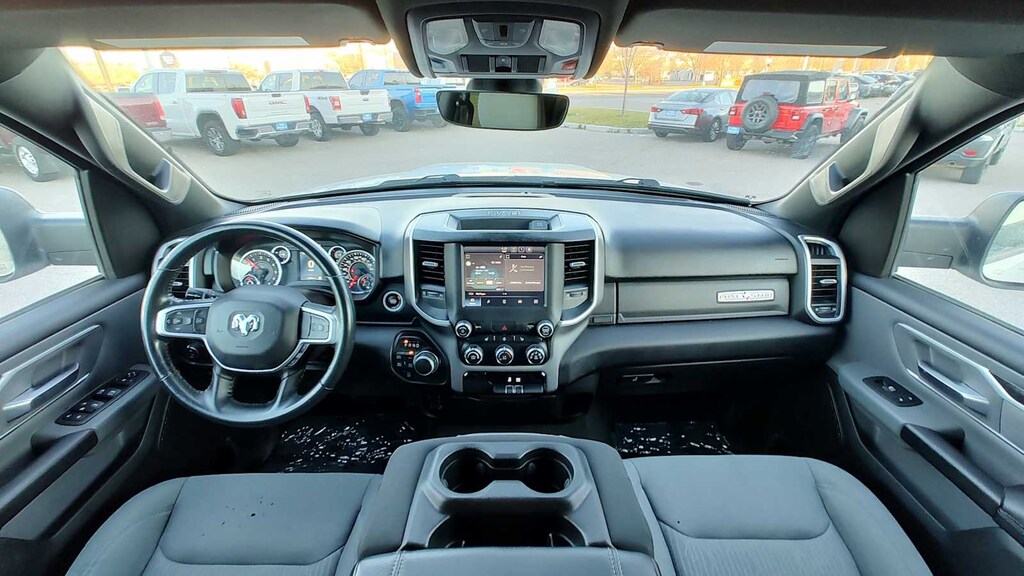 BIG HORN LEVEL 1 EQUIPMENT GROUP Google Android Auto®, Bluetooth® Handsfree Phone & Audio, USB Host Flip, Rear Window Defroster, Integrated Center Stack Radio, Rear View Auto Dim Mirror, For More Info, Call 800-643-2112, Rear Power Sliding Window, Rear Dome w/On/Off Switch Lamp, Front Fog Lamps, Connectivity - US/Canada, Lone Star IP Badge, Glove Box Lamp, 4G LTE Wi-Fi Hot Spot, Auto Dim Exterior Driver Mirror, Heated Front Seats, Radio: Uconnect 5 W w/8.4 Display, Heated Steering Wheel, 8.4 Touchscreen Display, Class IV Receiver Hitch, Black Premium Power Mirrors, Apple CarPlay®, SiriusXM Satellite Radio, Exterior Mirrors w/Supplemental Signals, Exterior Mirrors Courtesy Lamps, Passenger Sun Visor w/Illuminated Mirror, Electric Shift On Demand Transfer Case, Power-Folding Mirrors, 2nd, TRANSMISSION: 8-SPEED AUTOMATIC (8HP75) (STD), ENGINE: 5.7L V8 HEMI MDS VVT ETORQUE (STD). Ram Lone Star with Bright White Clearcoat exterior and Diesel Gray/Black interior features a 8 Cylinder Engine with 395 HP at 5600 RPM*.
