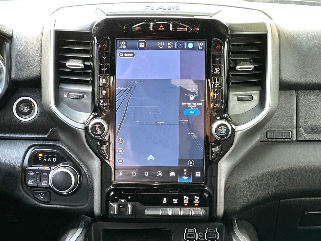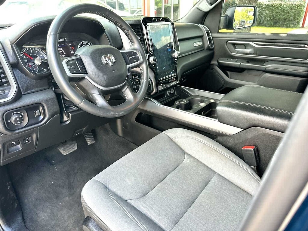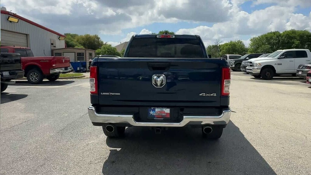 BIG HORN LEVEL B EQUIPMENT GROUP SiriusXM Radio Service, Rear Window Defroster, ParkSense Front/Rear Park Assist w/Stop, Rear View Auto Dim Mirror, Power Adjustable Pedals, Rear Power Sliding Window, Rear Dome w/On/Off Switch Lamp, Front Fog Lamps, Lone Star IP Badge, Glove Box Lamp, Media Hub w/2 Charge Only USBs, Power 8-Way Driver Seat, Auto Dim Exterior Driver Mirror, Heated Front Seats, Heated Steering Wheel, Class IV Receiver Hitch, Security Alarm, Black Premium Power Mirrors, Remote Start System, SiriusXM Satellite Radio, 400W Inverter, 9 Amplified Speakers w/Subwoofer, Radio: Uconnect 5 Nav w/12.0 Display, Google Android Auto®, USB Host Flip, Disassociated Touchscreen Display, HD Radio, Integrated Center Stack Radio, For More Info, Call 800-643-2112, Connectivity - US/Canada, 12, ENGINE: 5.7L V8 HEMI MDS VVT ETORQUE Active Noise Control System, Heavy Duty Engine Cooling, Passive Tuned Mass Damper, Dual Rear Exhaust w/Bright Tips, HEMI Badge, 23 Gallon Fuel Tank, 18 Aluminum Spare Wheel, WHEELS: 20 X 9 ALUMINUM CHROME CLAD, DIESEL GRAY/BLACK, DELUXE CLOTH BUCKET SEATS Power 8-Way Driver Seat, Center Console Parts Module, Bucket Seats, Manual Adjust 4-Way Front Passenger Seat, Full Length Floor Console, Rear Center Armrest, Power 2-Way Driver Lumbar Adjust, ANTI-SPIN DIFFERENTIAL REAR AXLE, TRANSMISSION: 8-SPEED AUTOMATIC (8HP75). Ram Lone Star with Patriot Blue Pearlcoat exterior and Diesel Gray/Black interior features a 8 Cylinder Engine with 395 HP at 5600 RPM*.