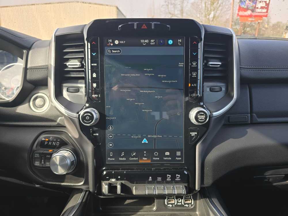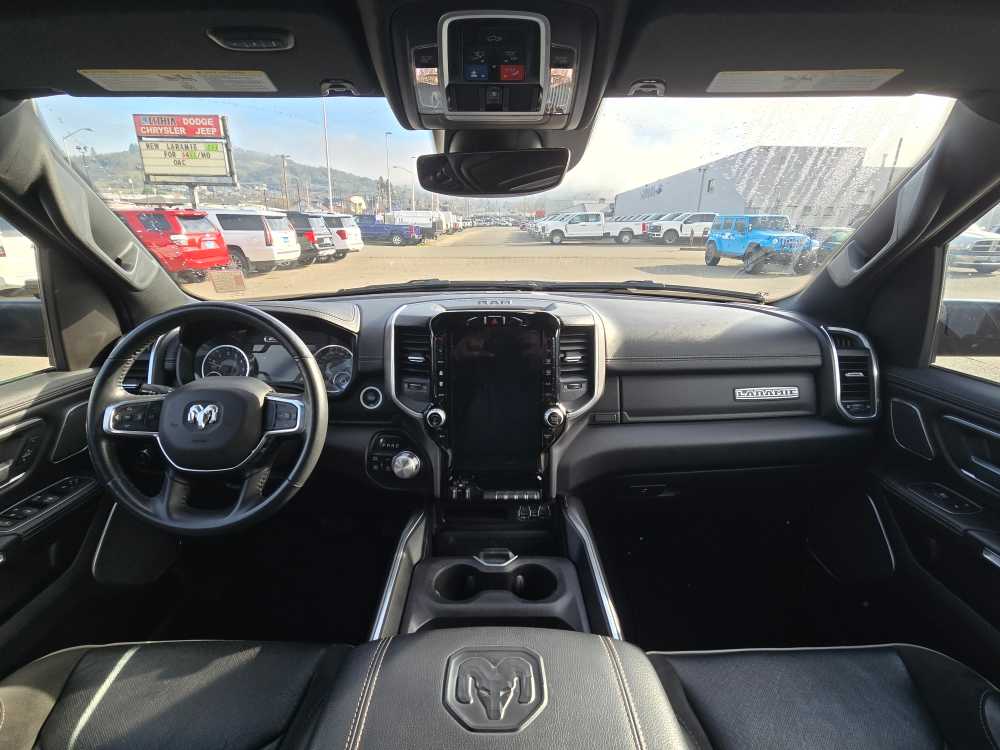 LARAMIE LEVEL B EQUIPMENT GROUP Radio: Uconnect 5W Nav w/12.0 Display, Rear Window Defroster, Blind-Spot/Cross-Path, Rain-Sensing Windshield Wipers, Park-Sense Front/Rear Park Assist w/Stop, Rear Power Sliding Window, 12 Touchscreen, Rear Underseat Compartment Storage, Front LED Fog Lamps, LED Reflector Headlamps, Second-Row Heated Seats, Door Trim Panel Foam Bottle Insert, Remote Tailgate Release, 19-Speaker harman/kardon® Prem Sound, Automatic High-Beam Headlamp Control, Electric Shift-On-Demand Transfer Case, Front Door Accent Lighting, 2nd Row In-Floor Storage Bins, Rear Door Accent Lighting, BLACK, LEATHER-FACED BUCKET SEATS Bucket Seats, Full-Length Upgraded Floor Console, BRIGHT POWER FOLD TRAILER TOW MIRRORS Mirror-Mounted Aux Reverse Lamps, Mirror Clearance/Running Lights, Trailer Tow Mirrors, CLASS IV RECEIVER HITCH, TRANSMISSION: 8-SPEED AUTOMATIC (STD), ANTI-SPIN DIFFERENTIAL REAR AXLE, ENGINE: 5.7L HEMI VVT V8 W/FUELSAVER MDS Active Noise Control System, Heavy-Duty Engine Cooling, Passive Tuned Mass Damper, Dual Rear Exhaust w/Bright Tips, HEMI Badge, 220 Amp Alternator (STD). Ram Laramie with Red Pearl exterior and Black interior features a 8 Cylinder Engine with 305 HP at 6400 RPM*.