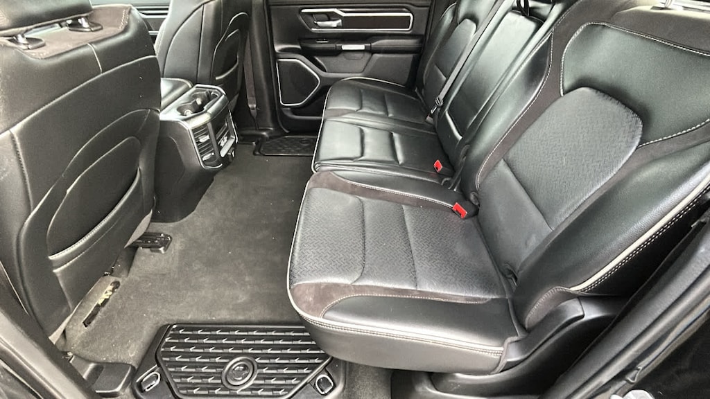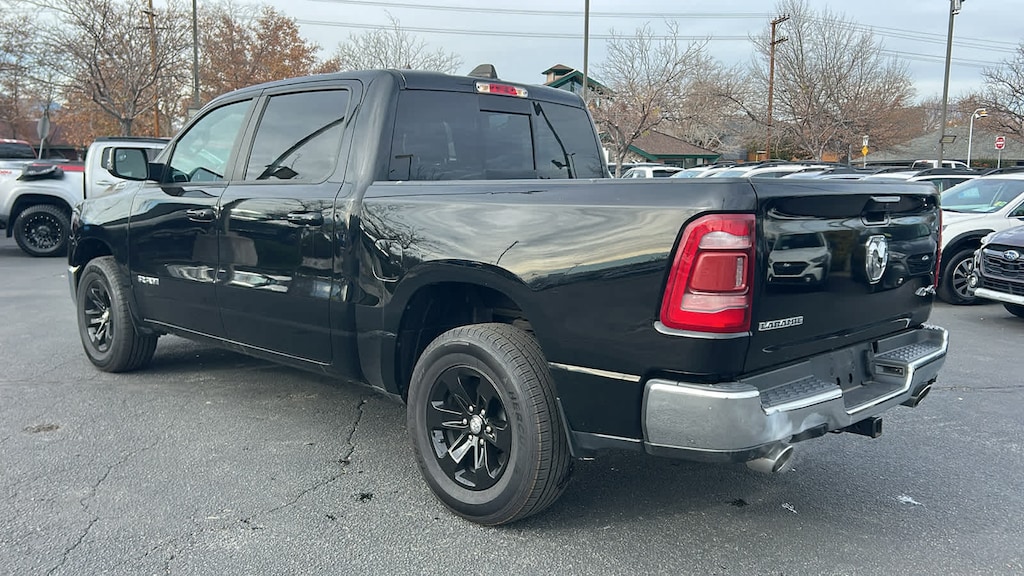 ENGINE: 5.7L V8 HEMI MDS VVT ETORQUE Active Noise Control System, Heavy Duty Engine Cooling, Passive Tuned Mass Damper, GVWR: 7,100 lbs, Dual Rear Exhaust w/Bright Tips, HEMI Badge, 23 Gallon Fuel Tank, 18 Aluminum Spare Wheel, LARAMIE LEVEL 1 EQUIPMENT GROUP Rear Window Defroster, Blind Spot & Cross Path Detection, Rain Sensitive Windshield Wipers, ParkSense Front/Rear Park Assist w/Stop, Rear Power Sliding Window, 12 Touchscreen Display, Front LED Fog Lamps, LED Reflector Headlamps, Foam Bottle Insert (Door Trim Panel), Radio: Uconnect 5 Nav w/12.0 Display, Remote Tailgate Release, Auto High Beam Headlamp Control, Electric Shift On Demand Transfer Case, Front Door Accent Lighting, 2nd Row In Floor Storage Bins, Rear Door Accent Lighting, DUAL-PANE PANORAMIC SUNROOF LED Dome/Reading Lamp, Dome Dual LED Reading Lamp, BLACK, LEATHER TRIMMED BUCKET SEATS Bucket Seats, Center Console Parts Module, Full Length Upgraded Floor Console, ANTI-SPIN DIFFERENTIAL REAR AXLE, CLASS IV RECEIVER HITCH, TRANSMISSION: 8-SPEED AUTOMATIC (8HP75). Ram Laramie with Diamond Black Crystal Pearlcoat exterior and Black interior features a 8 Cylinder Engine with 395 HP at 5600 RPM*.