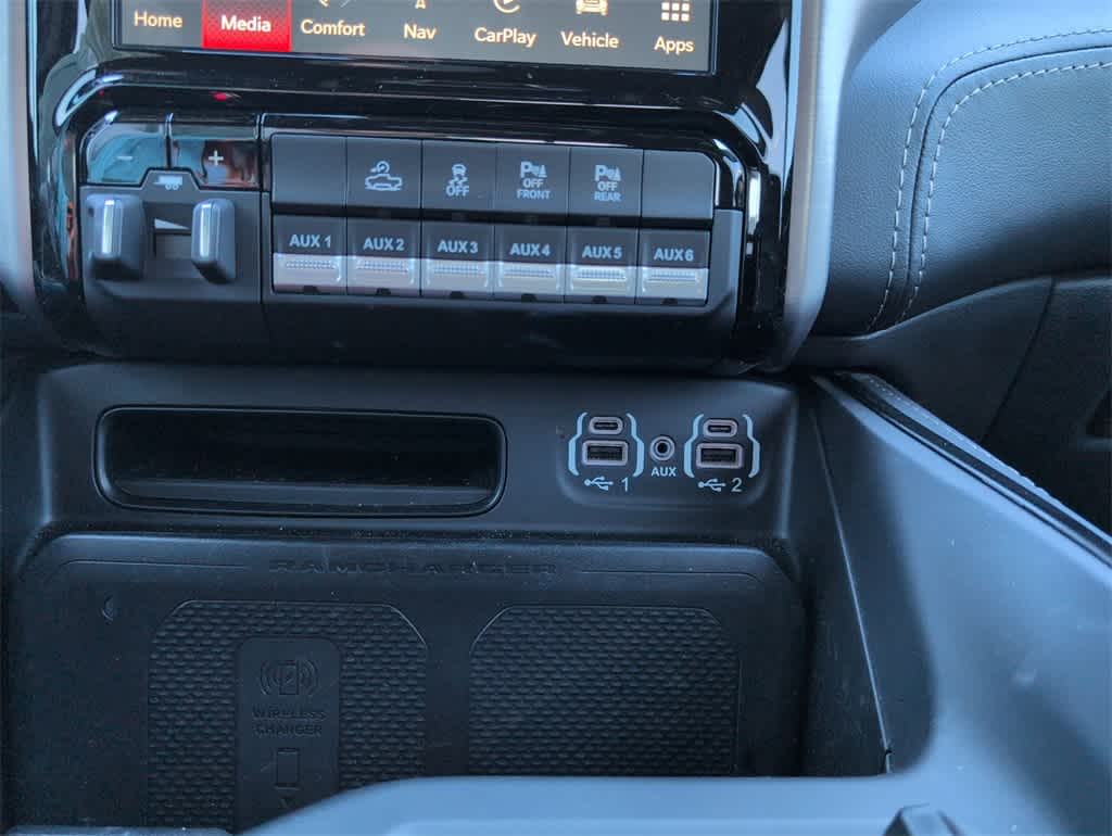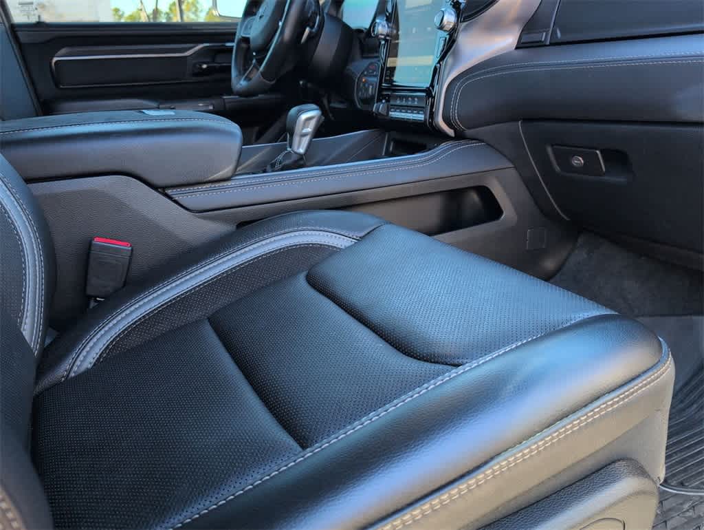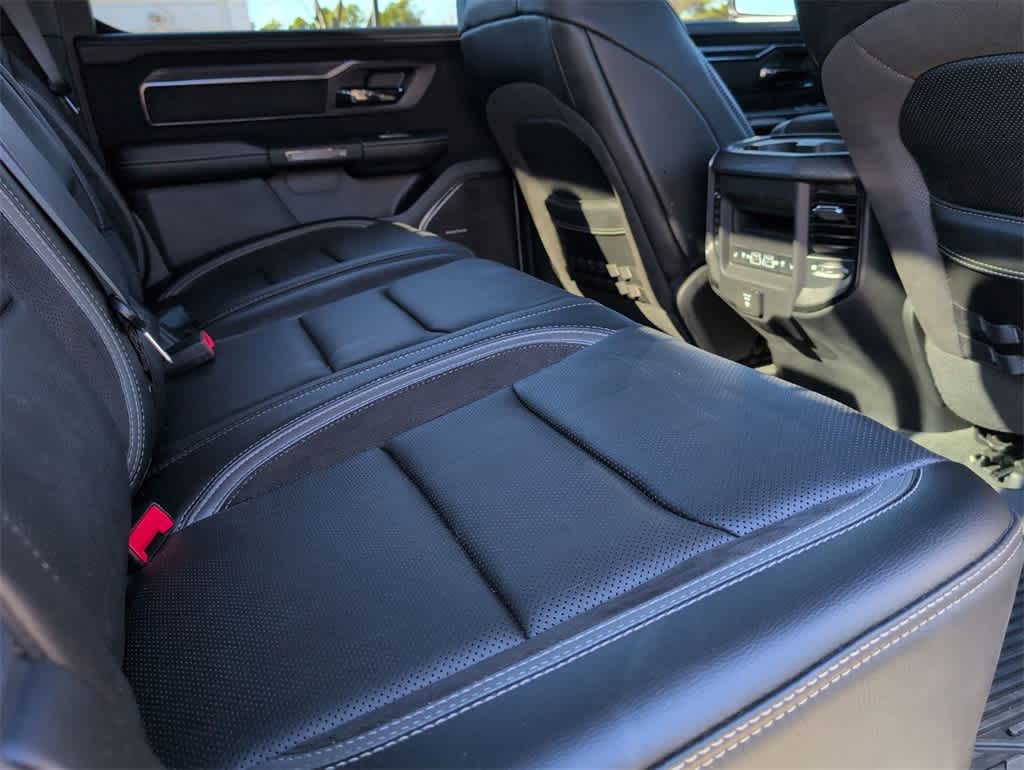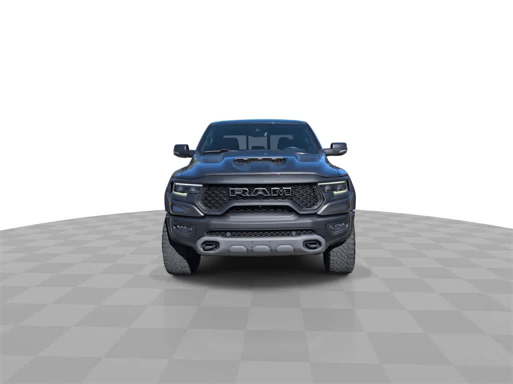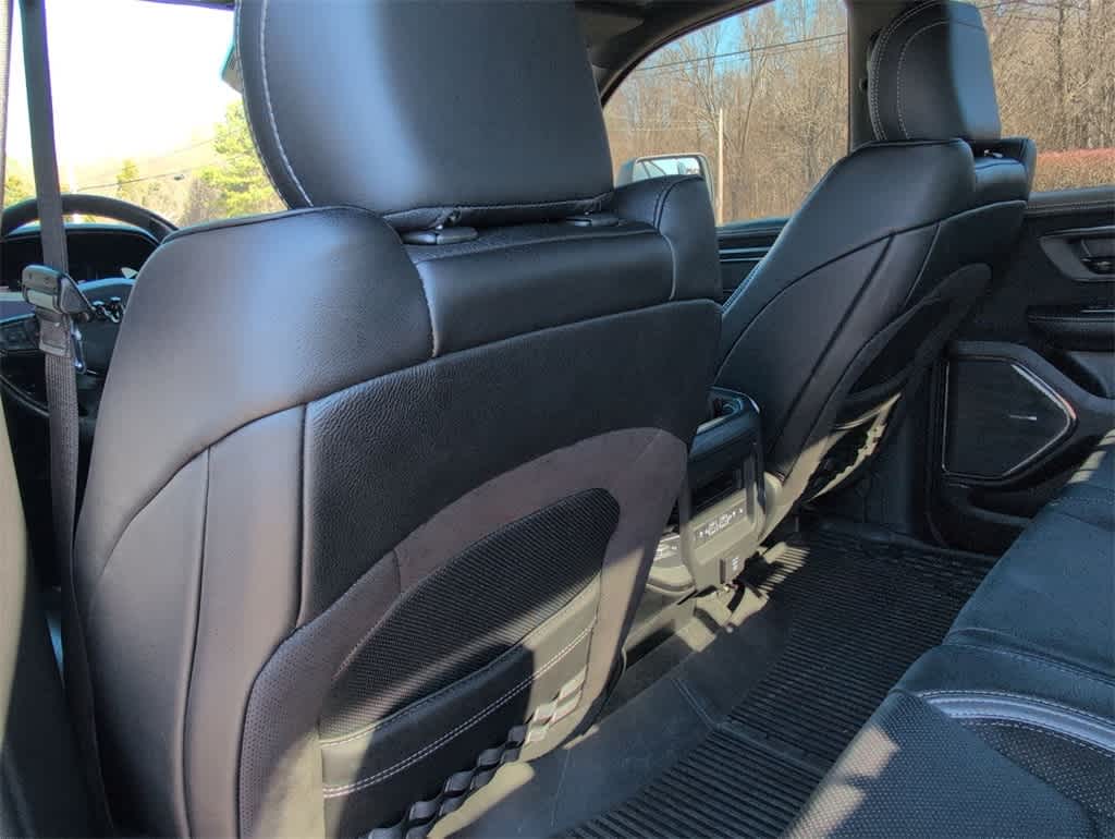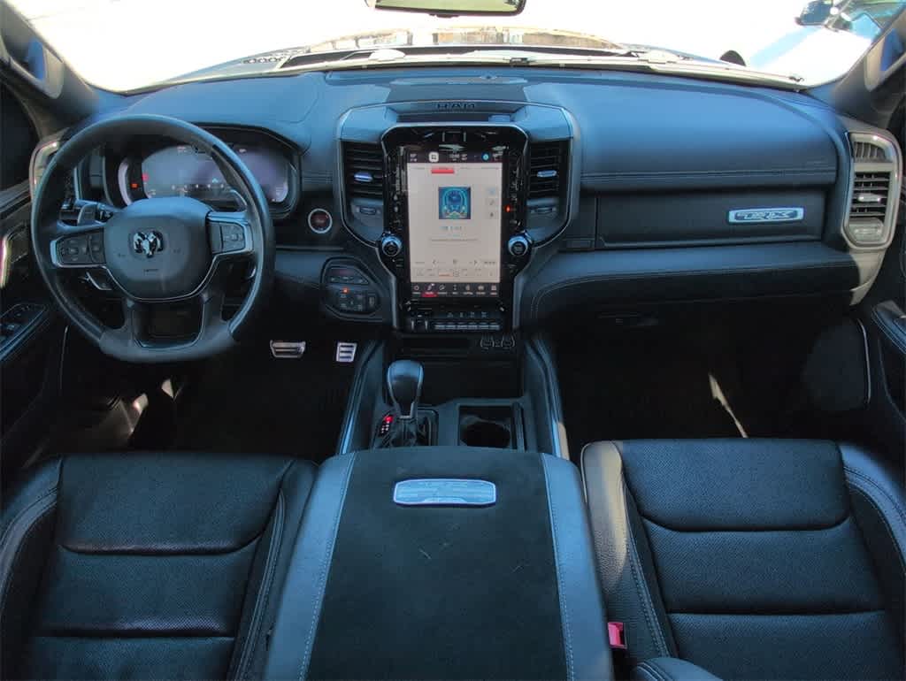 This 1500 TRX is nicely equipped with Quick Order Package 29Y, TRX Level 2 Equipment Group (#2 Seat Foam Cushion, 2-Door Passive Entry, Front Door Locks, 4 Way Front Headrests, Accent Color Door Handles, Blind Spot & Cross Path Detection, Bucket Seats, Center Console Parts Module, Digital Rearview Mirror, Driver Seat Memory, Driver/Passenger Wrapped Assist Handles, Exterior Mirrors w/Memory, Front Door Accent Lighting, Front Seat Back Map Pockets, Full Length Premium Upgraded Floor Console, Heads-Up Display, Heated Front Seats, Heated Second Row Seats, Heated Steering Wheel, IP LED Ambient Light Pipe, Leather Trimmed Bucket Seats, Leather/Suede Flat-Bottom Steering Wheel, LED CHMSL Lamp, Luxury Front Door Trim Panel, MOPAR Bright Pedal Kit, ParkSense Front/Rear Park Assist w/Stop, Pick-Up Box Lighting, Power 4-Way Driver Lumbar Adjust, Power 4-Way Passenger Lumbar Adjust, Power 8-Way Driver & Passenger Seats, Power Adjustable Pedals w/Memory, Premium Wrapped IP Bezel, Radio/Driver Seat/Mirrors/Pedals Memory, Rain Sensitive Windshield Wipers, Rear 60/40 Folding Seat, Rear 60/40 Folding Split Recline Seat, Rear Door Accent Lighting, Rear Underseat Compartment Storage, Rear Window Defroster, Remote Tailgate Release, Sun Visors w/Illuminated Vanity Mirrors, Surround View Camera System, Trailer Brake Control, Universal Garage Door Opener, Ventilated Front Seats, Ventilated Rear Seats, and Wireless Charging Pad), 10 Speakers, 3.55 Rear Axle Ratio, 4-Wheel Disc Brakes, ABS brakes, Adaptive suspension, Air Conditioning, Alloy wheels, AM/FM radio: SiriusXM with 360L, Apple CarPlay/Android Auto, Auto High-beam Headlights, Auto-dimming door mirrors, Auto-dimming Rear-View mirror, Automatic temperature control, Black Exterior Mirrors, Brake assist, Cloth/Vinyl Bucket Seats, Compass, Delay-off headlights, Dome Dual LED Reading Lamp, Driver door bin, Dual front impact airbags, Dual front side impact airbags, Dual-Pane Panoramic Sunroof, Electronic Stability Control, Exterior Mirrors Courtesy Lamps, Exterior Mirrors w/Heating Element, Exterior Mirrors w/Supplemental Signals, Front anti-roll bar, Front Bucket Seats, Front Center Armrest w/Storage, Front dual zone A/C, Front fog lights, Front License Plate Bracket, Front reading lights, Front wheel independent suspension, Fully automatic headlights, harman/kardon 19 Speaker Premium Sound (DISC), Heated door mirrors, Illuminated entry, Leather Shift Knob, Leather steering wheel, Low tire pressure warning, MOPAR Rock Rails, Navigation System, Occupant sensing airbag, Outside temperature display, Overhead airbag, Overhead console, Panic alarm, ParkView Rear Back-Up Camera, Passenger door bin, Passenger vanity mirror, Power door mirrors, Power driver seat, Power steering, Power windows, Power-Folding Mirrors, Radio data system, Radio: Uconnect 5 Nav w/12.0 Display, Rear seat center armrest, Rear step bumper, Remote keyless entry, Security system, Speed control, Split folding rear seat, Sport steering wheel, Steering wheel mounted audio controls, Tachometer, Telescoping steering wheel, Tilt steering wheel, Traction control, Trip computer, Turn signal indicator mirrors, Variably intermittent wipers, Voltmeter, and Wheels: 18 x 9 Black Paint/Polish Aluminum. Price does not include licensing costs, registration fees, taxes and dealer doc fee of $899.50 which are to be paid by the consumer.