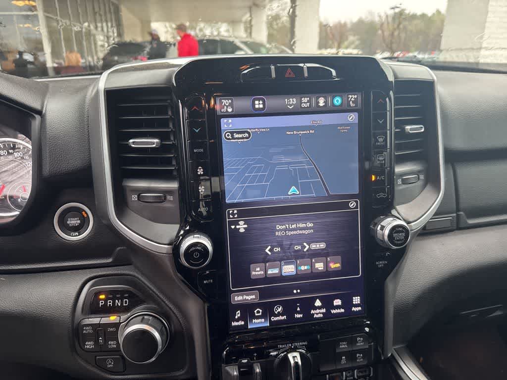 This 1500 Big Horn/Lone Star is nicely equipped with Big Horn Level B Equipment Group (115V Auxiliary Power Outlet, 12 Touchscreen Display, 2nd Row In Floor Storage Bins, 400W Inverter, 4G LTE Wi-Fi Hot Spot, 9 Amplified Speakers w/Subwoofer, Air Conditioning ATC w/Dual Zone Control, All R1 High Radios, All Radio Equipped Vehicles, Apple CarPlay, Auto-Dimming Exterior Driver Mirror, Auto-Dimming Rear-View Mirror, Black Exterior Mirrors, Black Premium Power Mirrors, Class IV Receiver Hitch, Cluster 7.0 TFT Color Display, Connected Travel & Traffic Services, Connectivity - US/Canada, Convex Wide-Angle Exterior Mirror Insert, Disassociated Touchscreen Display, Exterior Mirrors Courtesy Lamps, Exterior Mirrors w/Heating Element, Exterior Mirrors w/Supplemental Signals, For Details, Visit DriveUconnect.com, For More Info, Call 800-643-2112, Front Fog Lamps, Global Telematics Box Module (TBM), Glove Box Lamp, Google Android Auto, GPS Antenna Input, GPS Navigation, HD Radio, Heated Front Seats, Heated Steering Wheel, Integrated Center Stack Radio, Integrated Voice Command w/Bluetooth, LED Footwell Lighting, Media Hub w/2 Charge Only USBs, ParkSense Front/Rear Park Assist w/Stop, Power 2-Way Driver Lumbar Adjust, Power 8-Way Driver Seat, Power Adjustable Pedals, Power-Folding Mirrors, Radio: Uconnect 5 Nav w/12.0 Display, Rear Dome w/On/Off Switch Lamp, Rear Power Sliding Window, Rear Window Defroster, Remote Start System, Security Alarm, SiriusXM Radio Service, SiriusXM Satellite Radio, SiriusXM w/360L, Sun Visors w/Illuminated Vanity Mirrors, Universal Garage Door Opener, and USB Host Flip), Quick Order Package 27Z Big Horn (Big Horn Badge), Trailer Tow Group (Trailer Brake Control, Trailer Light Check, Trailer Reverse Steering Control, Trailer Tire Pressure Monitoring System, and Trailer Tow Mirrors), 26 Gal. Fuel Tank (Replace 23 Gal.), 3 Rear Seat Head Restraints, 3.21 Rear Axle Ratio, 4 Way Front Headrests, 4-Wheel Disc Brakes, 48V Belt Starter Generator, 6 Speakers, ABS brakes, Air Conditioning, Alloy wheels, AM/FM radio, Black Trailer Tow Power Mirrors (DISC), Brake assist, Bumpers: chrome, Cloth Bench Seat, Compass, Delay-off headlights, Driver door bin, Dual front impact airbags, Dual front side impact airbags, Electronic Stability Control, Emergency communication system: SiriusXM Guardian, Front anti-roll bar, Front Center Armrest w/Storage, Front reading lights, Front Seat Back Map Pockets, Front wheel independent suspension, Fully automatic headlights, Heated door mirrors, Illuminated entry, Leather steering wheel, Low tire pressure warning, Occupant sensing airbag, Outside temperature display, Overhead airbag, Overhead console, Panic alarm, ParkView Rear Back-Up Camera, Passenger door bin, Passenger vanity mirror, Power door mirrors, Power steering, Power windows, Radio data system, Radio: Uconnect 3 w/5 Display, RAM Grille Badge - Chrome, Rear 60/40 Folding Seat, Rear anti-roll bar, Rear seat center armrest, Rear step bumper, Remote keyless entry, Speed control, Split folding rear seat, Steering wheel mounted audio controls, Tachometer, Telescoping steering wheel, Tilt steering wheel, Traction control, Trip computer, Variably intermittent wipers, Voltmeter, Wheels: 18 x 8 Cast-Aluminum Painted, and Wheels: 20 x 9 Aluminum Chrome Clad. Price does not include licensing costs, registration fees, taxes and dealer doc fee of $899.50 which are to be paid by the consumer.