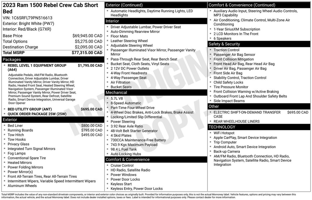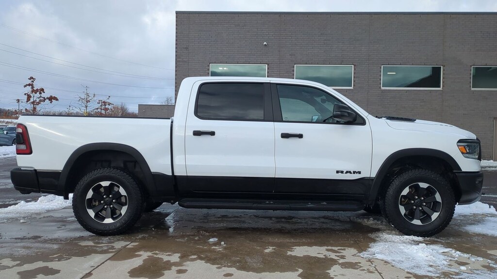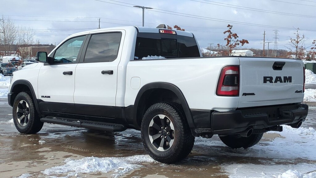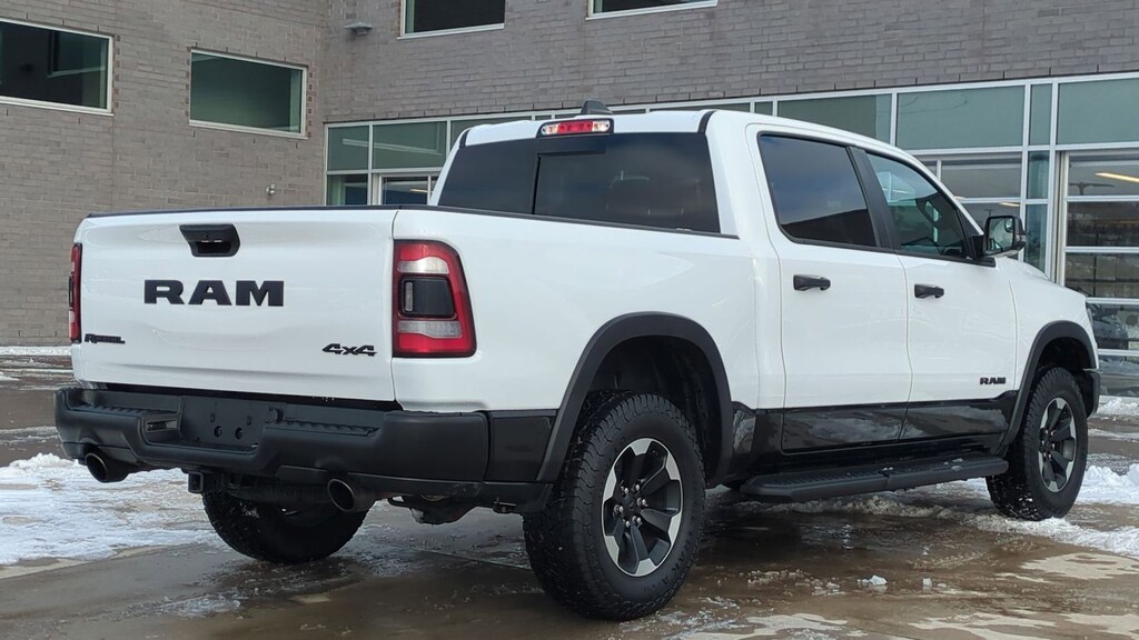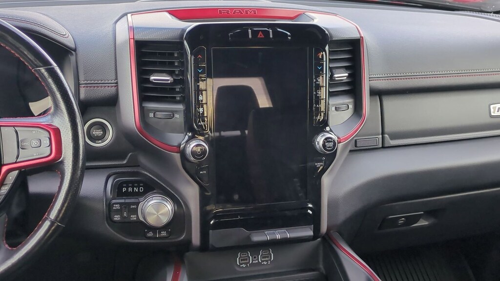 Clean CARFAX. 2023 Ram 1500 Rebel Is nicely equipped with Bed Utility Group (MOPAR 4 Adjustable Cargo Tie-Down Hooks and Pick-Up Box Lighting), Rebel Level 1 Equipment Group (12" Touchscreen Display, 2nd Row In Floor Storage Bins, 4G LTE Wi-Fi Hot Spot, 9 Amplified Speakers w/Subwoofer, Apple CarPlay, Auto-Dimming Exterior Driver Mirror, Black Exterior Mirrors, Black Premium Power Mirrors, Connected Travel & Traffic Services, Connectivity - US/Canada, Convex Wide-Angle Exterior Mirror Insert, Disassociated Touchscreen Display, Exterior Mirrors Courtesy Lamps, Exterior Mirrors w/Heating Element, Exterior Mirrors w/Supplemental Signals, Foam Bottle Insert (Door Trim Panel), For Details, Visit DriveUconnect.com, For More Info, Call 800-643-2112, Global Telematics Box Module (TBM), Google Android Auto, GPS Antenna Input, GPS Navigation, HD Radio, Heated Front Seats, Heated Steering Wheel, Integrated Center Stack Radio, Integrated Voice Command w/Bluetooth, Off-Road Information Pages, Power 2-Way Driver Lumbar Adjust, Power 8-Way Driver Seat, Power Adjustable Pedals, Power-Folding Mirrors, Radio: Uconnect 5 Nav w/12.0" Display, Rear Dome w/On/Off Switch Lamp, Rear Power Sliding Window, Rear Window Defroster, SiriusXM Radio Service, SiriusXM w/360L, Sun Visors w/Illuminated Vanity Mirrors, Universal Garage Door Opener, and USB Host Flip), 3.92 Rear Axle Ratio, 4 Way Front Headrests, 4-Wheel Disc Brakes, 48V Belt Starter Generator, 6 Speakers, ABS brakes, Air Conditioning, Alloy wheels, AM/FM radio: SiriusXM with 360L, Apple CarPlay/Android Auto, Auto-dimming Rear-View mirror, Automatic temperature control, Brake assist, Bucket Seats, Class IV Receiver Hitch, Cloth/Vinyl Low Back Bucket Seats, Compass, Delay-off headlights, Driver door bin, Dual front impact airbags, Dual front side impact airbags, Electric Shift-On-Demand Transfer Case, Electronic Stability Control, Emergency communication system: SiriusXM Guardian, Front anti-roll bar, Front Bucket Seats, Front Center Armrest w/Storage, Front dual zone A/C, Front fog lights, Front reading lights, Front Seat Back Map Pockets, Front wheel independent suspension, Full Length Upgraded Floor Console, Fully automatic headlights, Heated door mirrors, Illuminated entry, Leather steering wheel, Low tire pressure warning, Mopar Black Tubular Side Steps, MOPAR Spray In Bedliner, Navigation System, Occupant sensing airbag, Outside temperature display, Overhead airbag, Overhead console, Panic alarm, ParkView Rear Back-Up Camera, Passenger door bin, Passenger vanity mirror, Power door mirrors, Power steering, Power windows, Radio data system, Radio: Uconnect 5 Nav w/8.4" Display, Rear 60/40 Folding Seat, Rear anti-roll bar, Rear seat center armrest, Rear step bumper, Rear Wheelhouse Liners, Remote keyless entry, Speed control, Split folding rear seat, Steering wheel mounted audio controls, Tachometer, Telescoping steering wheel, Tilt steering wheel, Traction control, Trip computer, Variably intermittent wipers, Voltmeter, and Wheels: 18" x 8.0" Painted Mid-Gloss BlacK.