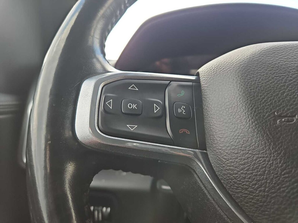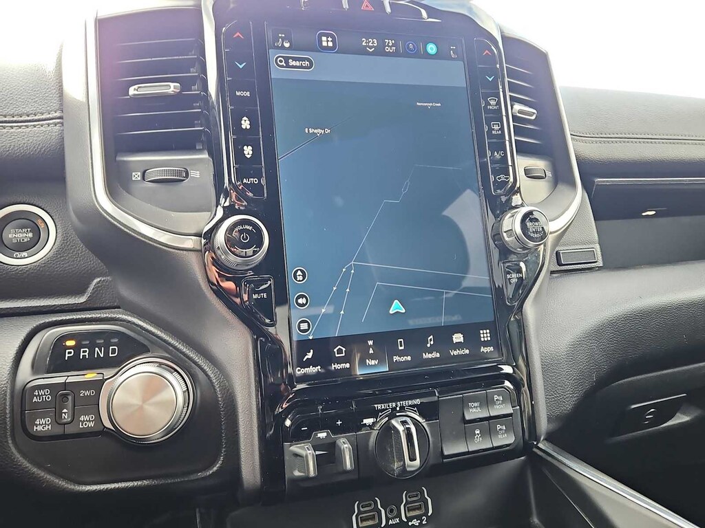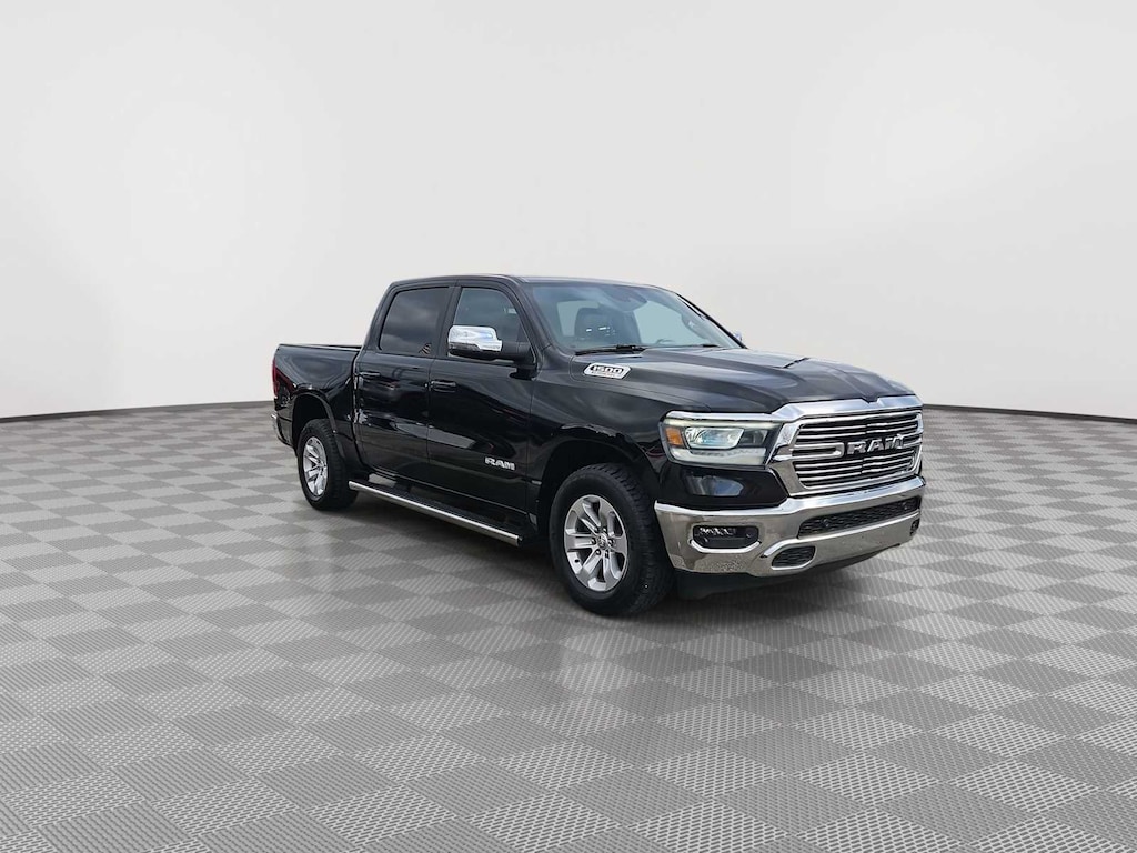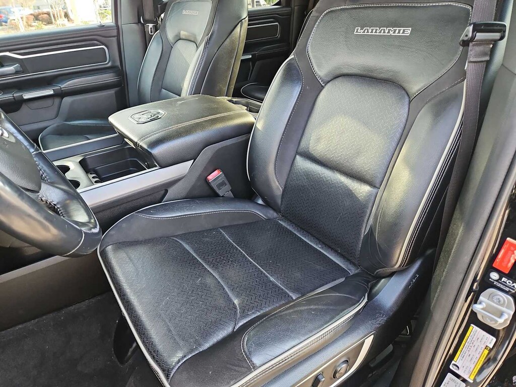 CARFAX One-Owner. Diamond Black Crystal Pearlcoat This 1500 Laramie is nicely equipped with Laramie Level 1 Equipment Group (12 Touchscreen Display, 2nd Row In Floor Storage Bins, 4G LTE Wi-Fi Hot Spot, Apple CarPlay, Auto High Beam Headlamp Control, Blind Spot & Cross Path Detection, Connected Travel & Traffic Services, Connectivity - US/Canada, Disassociated Touchscreen Display, Electric Shift-On-Demand Transfer Case, Foam Bottle Insert (Door Trim Panel), For Details, Visit DriveUconnect.com, For More Info, Call 800-643-2112, Front Door Accent Lighting, Front LED Fog Lamps, Global Telematics Box Module (TBM), Google Android Auto, GPS Antenna Input, GPS Navigation, HD Radio, Integrated Center Stack Radio, Integrated Voice Command w/Bluetooth, LED Reflector Headlamps, Radio: Uconnect 5 Nav w/12.0 Display, Rain Sensitive Windshield Wipers, Rear Door Accent Lighting, Rear Power Sliding Window, Rear Window Defroster, Remote Tailgate Release, SiriusXM Radio Service, SiriusXM w/360L, and USB Host Flip), Quick Order Package 28H Laramie (DISC), Trailer Tow Group (Trailer Brake Control, Trailer Light Check, Trailer Reverse Steering Control, and Trailer Tire Pressure Monitoring System), #1 Seat Foam Cushion, 10 Speakers, 3 Rear Seat Head Restraints, 3.21 Rear Axle Ratio, 4 Way Front Headrests, 4-Wheel Disc Brakes, 48V Belt Starter Generator, ABS brakes, Adjustable pedals, Air Conditioning, Alloy wheels, AM/FM radio: SiriusXM with 360L, Apple CarPlay/Android Auto, Audio memory, Auto-dimming door mirrors, Auto-Dimming Exterior Driver Mirror, Auto-dimming Rear-View mirror, Automatic temperature control, Brake assist, Bumpers: chrome, Chrome Exterior Mirrors, Class IV Receiver Hitch, Compass, Convex Wide-Angle Exterior Mirror Insert, Delay-off headlights, Driver door bin, Driver Seat Memory, Driver vanity mirror, Dual front impact airbags, Dual front side impact airbags, Electronic Stability Control, Exterior Mirrors Courtesy Lamps, Exterior Mirrors w/Heating Element, Exterior Mirrors w/Memory, Exterior Mirrors w/Supplemental Signals, Front anti-roll bar, Front Center Armrest w/Storage, Front dual zone A/C, Front fog lights, Front reading lights, Front Seat Back Map Pockets, Front wheel independent suspension, Fully automatic headlights, Garage door transmitter, Heated door mirrors, Heated Front Seats, Heated front seats, Heated Steering Wheel, Heated steering wheel, Illuminated entry, Leather steering wheel, Leather Trim 40/20/40 Bench Seat, Low tire pressure warning, Memory seat, Navigation System, Occupant sensing airbag, Outside temperature display, Overhead airbag, Overhead console, Panic alarm, ParkSense Front/Rear Park Assist w/Stop (DISC), ParkView Rear Back-Up Camera, Passenger door bin, Passenger vanity mirror, Pedal memory, Power 2-Way Driver Lumbar Adjust, Power 2-Way Passenger Lumbar Adjust, Power 8-Way Driver & Passenger Seats, Power door mirrors, Power driver seat, Power passenger seat, Power steering, Power windows, Power-Folding Mirrors, Radio data system, Radio: Uconnect 5 Nav w/8.4 Display, RAM Grille Badge - Chrome, Rear 60/40 Folding Seat, Rear anti-roll bar, Rear seat center armrest, Rear step bumper, Remote keyless entry, Security system, Speed control, Split folding rear seat, Steering wheel mounted audio controls, Tachometer, Telescoping steering wheel, Tilt steering wheel, Traction control, Trip computer, Turn signal indicator mirrors, Variably intermittent wipers, Ventilated Front Seats, Ventilated front seats, Voltmeter, and Wheels: 18 x 8 Aluminum Base Painted. Price does not include licensing costs, registration fees, taxes and dealer doc fee of $899.50 which are to be paid by the consumer. Mileage is EPA Estimated.