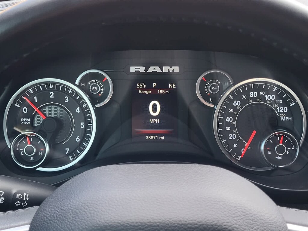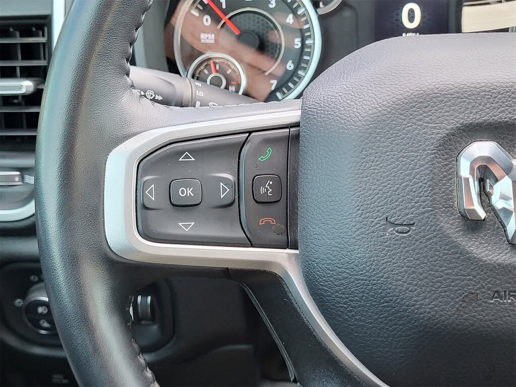 ENGINE: 5.7L V8 HEMI MDS VVT ETORQUE Active Noise Control System, Heavy Duty Engine Cooling, Passive Tuned Mass Damper, Dual Rear Exhaust w/Bright Tips, HEMI Badge, 23 Gallon Fuel Tank, 18 Aluminum Spare Wheel, BIG HORN LEVEL 1 EQUIPMENT GROUP Google Android Auto®, Bluetooth® Handsfree Phone & Audio, USB Host Flip, Rear Window Defroster, Integrated Center Stack Radio, Rear View Auto Dim Mirror, For More Info, Call 800-643-2112, Rear Power Sliding Window, Rear Dome w/On/Off Switch Lamp, Front Fog Lamps, Connectivity - US/Canada, Glove Box Lamp, 4G LTE Wi-Fi Hot Spot, Auto Dim Exterior Driver Mirror, Heated Front Seats, Radio: Uconnect 5 W w/8.4 Display, Heated Steering Wheel, 8.4 Touchscreen Display, Class IV Receiver Hitch, Black Premium Power Mirrors, Apple CarPlay®, Big Horn IP Badge, SiriusXM Satellite Radio, Exterior Mirrors w/Supplemental Signals, Exterior Mirrors Courtesy Lamps, Passenger Sun Visor w/Illuminated Mirror, Electric Shift On Demand Transfer Case, Power-Folding Mirrors, 2nd Row, LEVEL 1 SAFETY GROUP Advanced Brake Assist, Pedestrian Emergency Braking, Full Speed Forward Collision Warning Plus, Lane Keep Assist, REMOTE START SYSTEM, TRANSMISSION: 8-SPEED AUTOMATIC (8HP75). Ram Big Horn with Delmonico Red Pearlcoat exterior and Diesel Gray/Black interior features a 8 Cylinder Engine with 395 HP at 5600 RPM*.