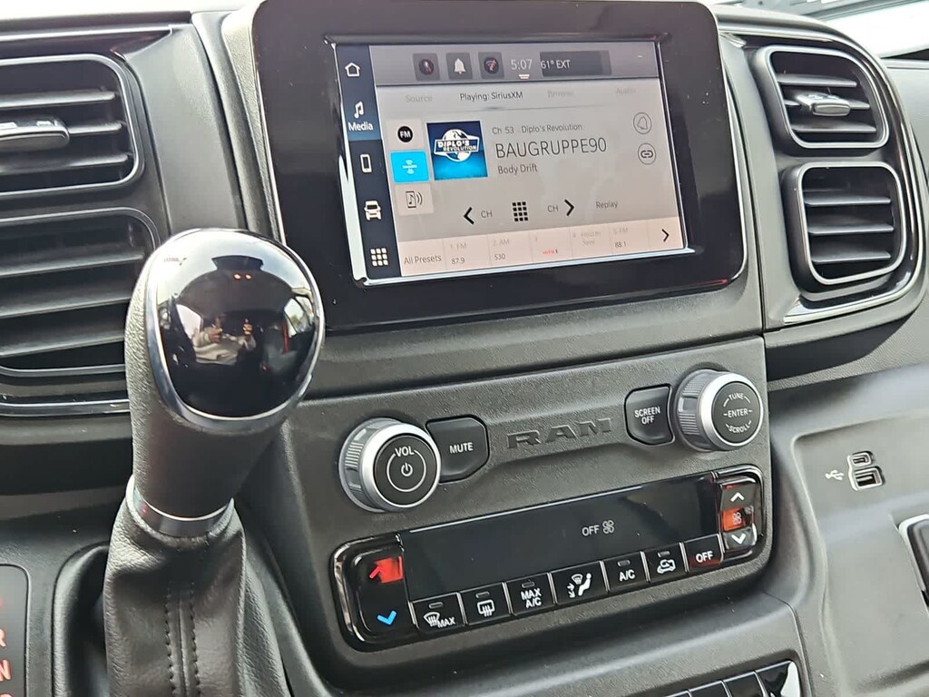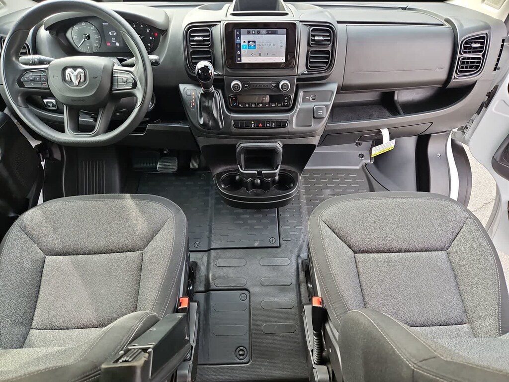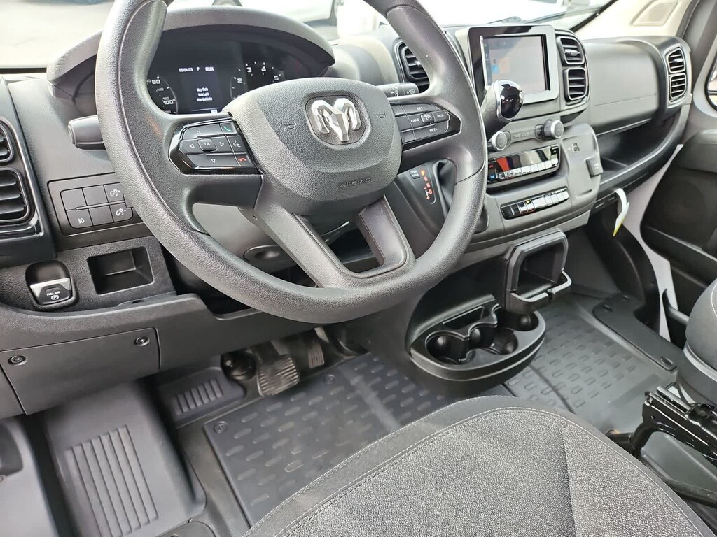 Our ProMaster cabin is all about all-day comfort with supportive cloth seats, a multifunction steering wheel, air conditioning, power accessories, keyless access, pushbutton ignition, and our Driver Convenience Pack for remote start. The fantastically functional infotainment system bundles a 7-inch touchscreen, a 3.5-inch driver display, WiFi compatibility, Apple CarPlayî, Android Autoî, Bluetoothî, voice command, and four-speaker audio for easy connectivity. The roomy rear is easy to upfit, too!