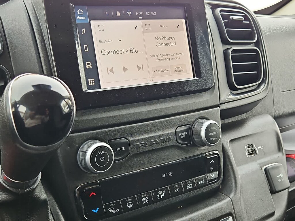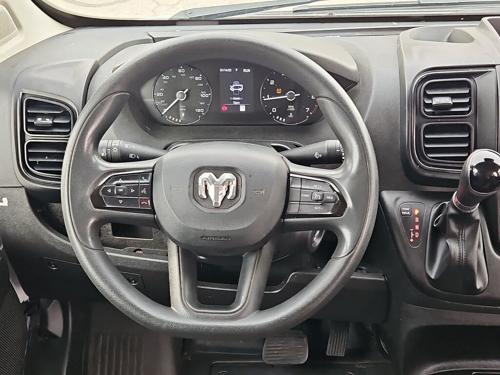 Our ProMaster cabin is all about all-day comfort with supportive cloth seats, a multifunction steering wheel, air conditioning, power accessories, keyless access, pushbutton ignition, and our Driver Convenience Pack for remote start. The fantastically functional infotainment system bundles a 7-inch touchscreen, a 3.5-inch driver display, WiFi compatibility, Apple CarPlayî, Android Autoî, Bluetoothî, voice command, and four-speaker audio for easy connectivity. The roomy rear is easy to upfit, too!