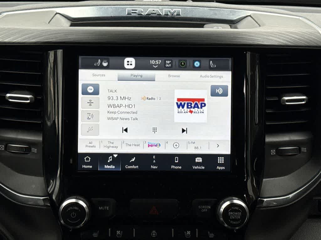 Navigation, Heated Driver Seat, Cooled Driver Seat, Back-Up Camera, Premium Sound System Ram Laramie with Bright White Clearcoat exterior and Black interior features a 8 Cylinder Engine with 395 HP at 5600 RPM*.