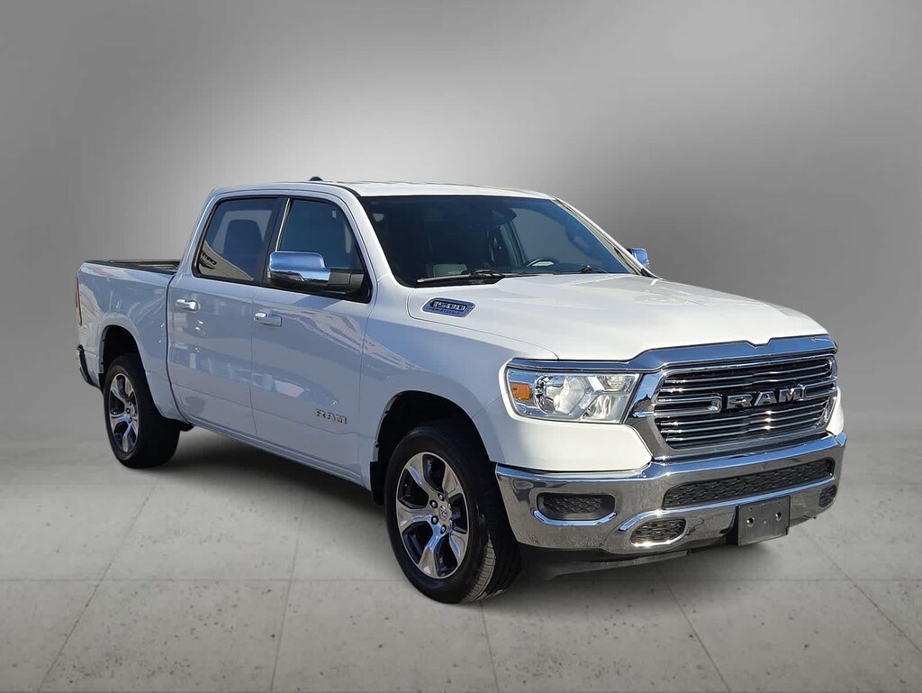 Leave it to our One Owner, Accident Free 2024 RAM 1500 Laramie Crew Cab 4X2 when you need a truck with comfortable capability in Bright White! Motivated by a 5.7 Liter eTorque HEMI V8 serving up 395hp to an 8 Speed Automatic transmission to help meet your needs. You can also score nearly 23mpg on the highway in this Rear Wheel Drive truck, which has a standard Class III bumper hitch, so you can start towing today. Showing off a powerful stance, our RAM expresses a bold attitude with LED taillamps, an LED hitch light, heated power-folding mirrors, aggressive alloy wheels, and chrome grille accents.