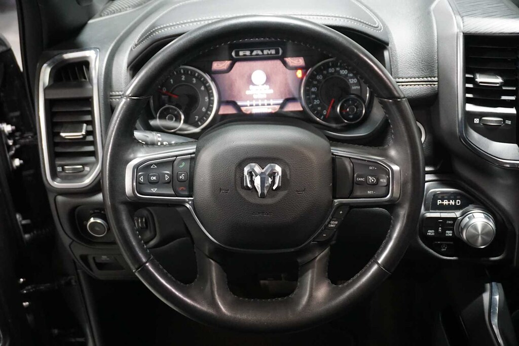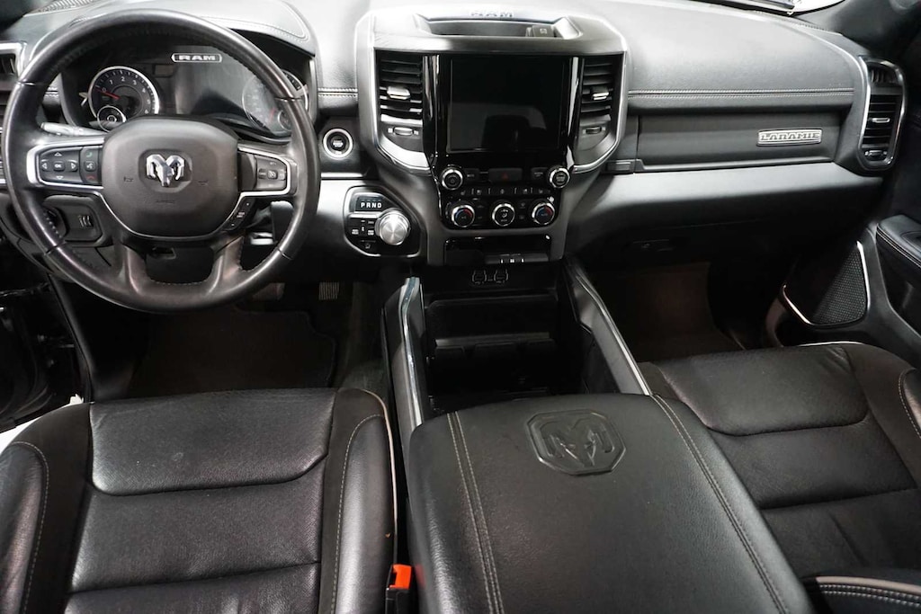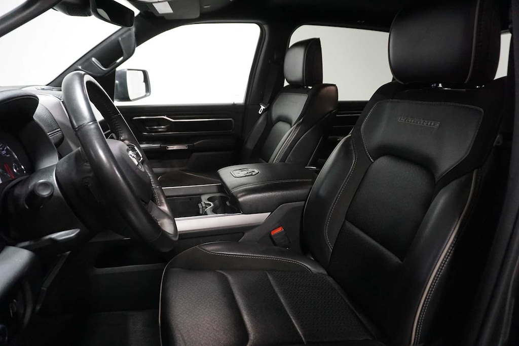 ENGINE: 5.7L V8 HEMI MDS VVT ETORQUE Active Noise Control System, Heavy Duty Engine Cooling, Passive Tuned Mass Damper, GVWR: 7,100 lbs, Dual Rear Exhaust w/Bright Tips, HEMI Badge, 23 Gallon Fuel Tank, 18 Aluminum Spare Wheel, BLACK, LEATHER TRIMMED BUCKET SEATS Bucket Seats, Full Length Upgraded Floor Console, TRANSMISSION: 8-SPEED AUTOMATIC (8HP75). Ram Laramie with Granite Crystal Metallic Clearcoat exterior and Black interior features a 8 Cylinder Engine with 395 HP at 5600 RPM*.
