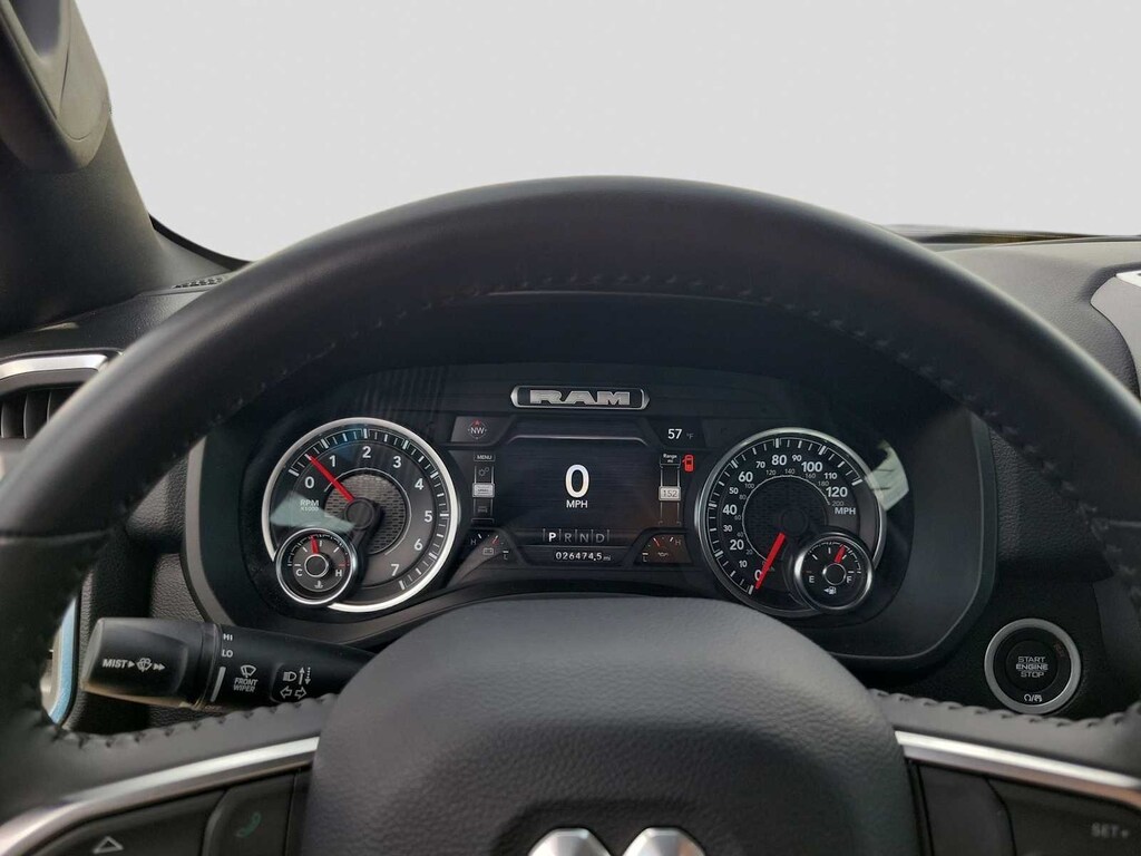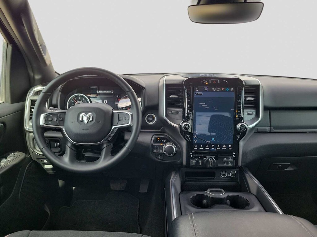 BIG HORN LEVEL B EQUIPMENT GROUP Rear Window Defroster, ParkSense Front/Rear Park Assist w/Stop, Rear View Auto Dim Mirror, Power Adjustable Pedals, Rear Power Sliding Window, Rear Dome w/On/Off Switch Lamp, Front Fog Lamps, Glove Box Lamp, Media Hub w/2 Charge Only USBs, Power 8-Way Driver Seat, Auto Dim Exterior Driver Mirror, Heated Front Seats, Heated Steering Wheel, Class IV Receiver Hitch, Security Alarm, Black Premium Power Mirrors, Big Horn IP Badge, Remote Start System, SiriusXM Satellite Radio, 400W Inverter, 9 Amplified Speakers w/Subwoofer, Radio: Uconnect 5 Nav w/12.0 Display, Google Android Auto®, SiriusXM Radio Service, USB Host Flip, HD Radio, For More Info, Call 800-643-2112, Connectivity - US/Canada, GPS Navigation, 4G LTE Wi-Fi Hot Spot, SiriusXM w/360L, All Radio, ENGINE: 5.7L V8 HEMI MDS VVT ETORQUE Active Noise Control System, Heavy Duty Engine Cooling, Passive Tuned Mass Damper, Dual Rear Exhaust w/Bright Tips, HEMI Badge, 23 Gallon Fuel Tank, 18 Aluminum Spare Wheel, PREMIUM LIGHTING GROUP Front LED Fog Lamps, LED Reflector Headlamps, LED Taillamps, BED UTILITY GROUP MOPAR Spray In Bedliner, MOPAR 4 Adjustable Cargo Tie-Down Hooks, Pick-Up Box Lighting, MOPAR Deployable Bed Step, LEVEL 1 SAFETY GROUP Advanced Brake Assist, Pedestrian Emergency Braking, Full Speed Forward Collision Warning Plus, Lane Keep Assist, BLACK, DELUXE CLOTH BUCKET SEATS Power 8-Way Driver Seat, Bucket Seats, Manual Adjust 4-Way Front Passenger Seat, Full Length Floor Console, Rear Center Armrest, Power 2-Way Driver Lumbar Adjust, TRANSMISSION: 8-SPEED AUTOMATIC (8HP75). Ram Big Horn with Bright White Clearcoat exterior and Black interior features a 8 Cylinder Engine with 395 HP at 5600 RPM*.