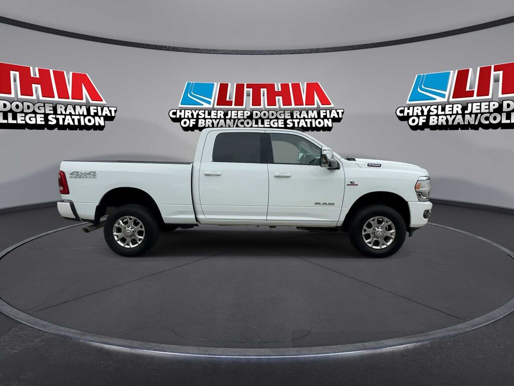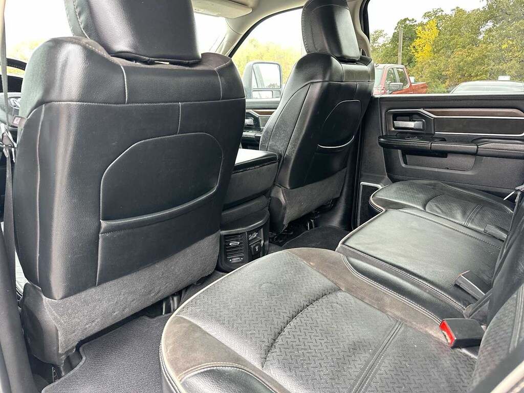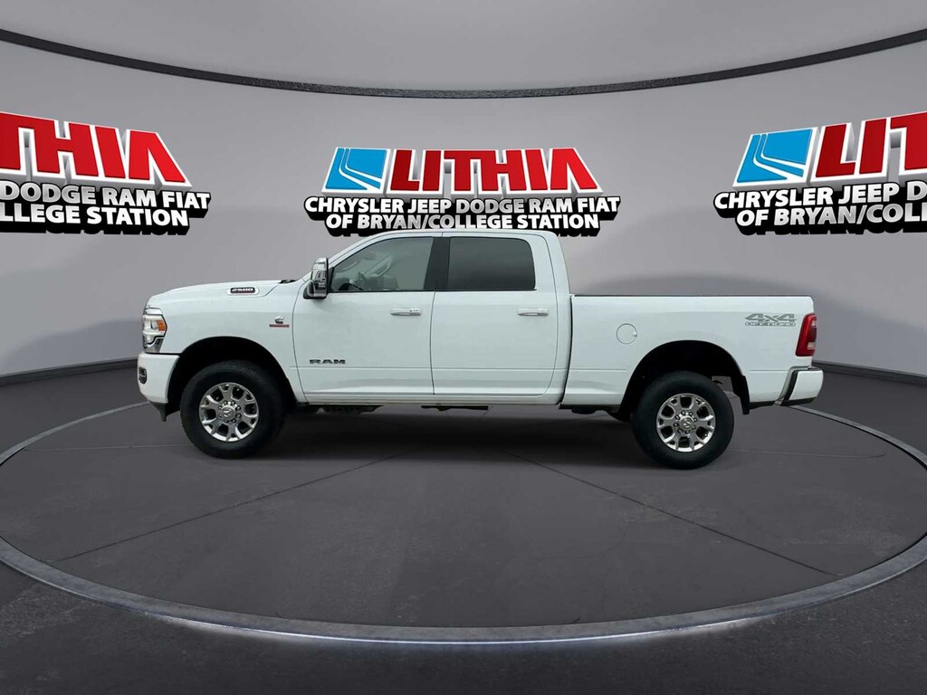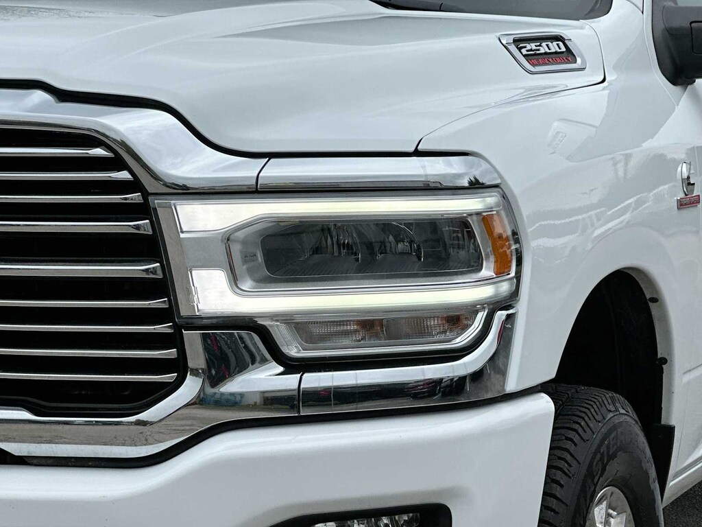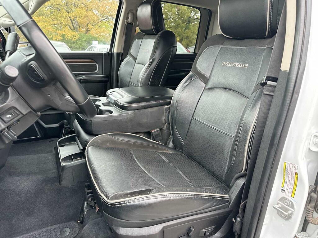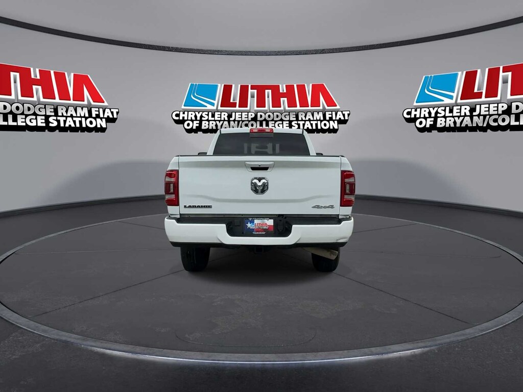 ENGINE: 6.7L I6 CUMMINS TURBO DIESEL Selective Catalytic Reduction (Urea), Dual 730 Amp Maintenance Free Batteries, Cummins Turbo Diesel Badge, Heavy Duty Engine Cooling, Supplemental Heater, 220 Amp Alternator, Tow Hooks, Diesel Exhaust Brake, Front Bumper Sight Shields, Capless Fuel Fill w/o Discriminator, TRANSMISSION: 6-SPEED AUTOMATIC (68RFE), LARAMIE LEVEL 1 EQUIPMENT GROUP Blind Spot & Cross Path Detection, LED Tail Lamps, Power Adjustable Pedals w/Memory, For Details, Visit DriveUconnect.com, For More Info, Call 800-643-2112, 12 Touchscreen Display, Auto Power-Folding Mirrors, Front LED Fog Lamps, Mirror Running Lights, Alexa Built-In, Power Adjustable Convex Aux Mirrors, Forward & Reverse Utility Lights, Disassociated Touchscreen Display, Remote Tailgate Release, Center Hub, 2nd Row In Floor Storage Bins, Rear Window Defroster, Rain Sensitive Windshield Wipers, Rear Power Sliding Window, GPS Navigation, Auto Dim Exterior Mirror, SiriusXM w/360L, Connected Travel & Traffic Services, LED Reflector Headlamps, Foam Bottle Insert (Door Trim Panel), Off-Road Information Pages, Selectable Tire Fill Alert, Trailer Tow Pages, HD. Ram Laramie with Bright White Clearcoat exterior and Black interior features a Straight 6 Cylinder Engine with 410 HP at 5600 RPM*.