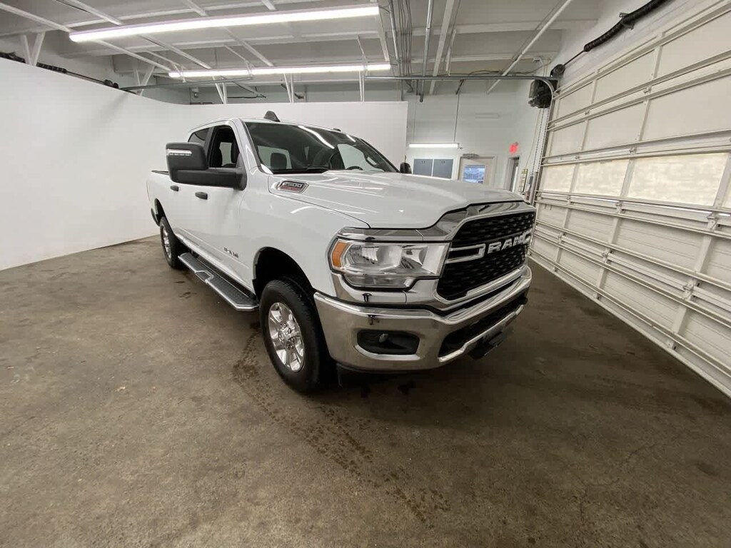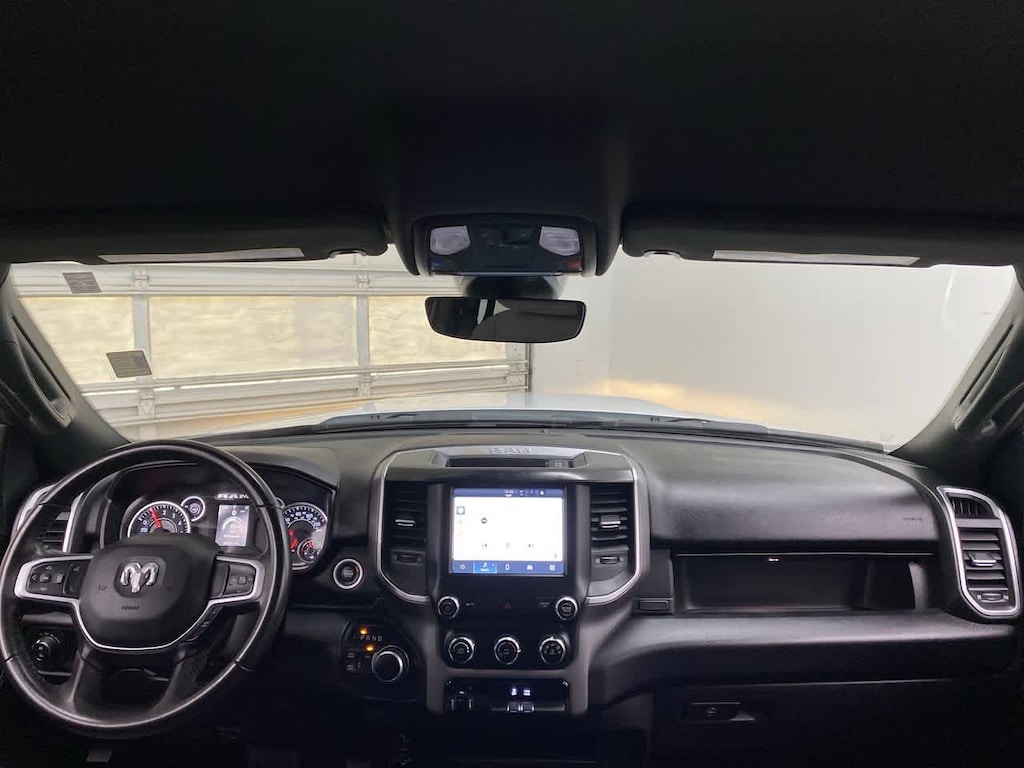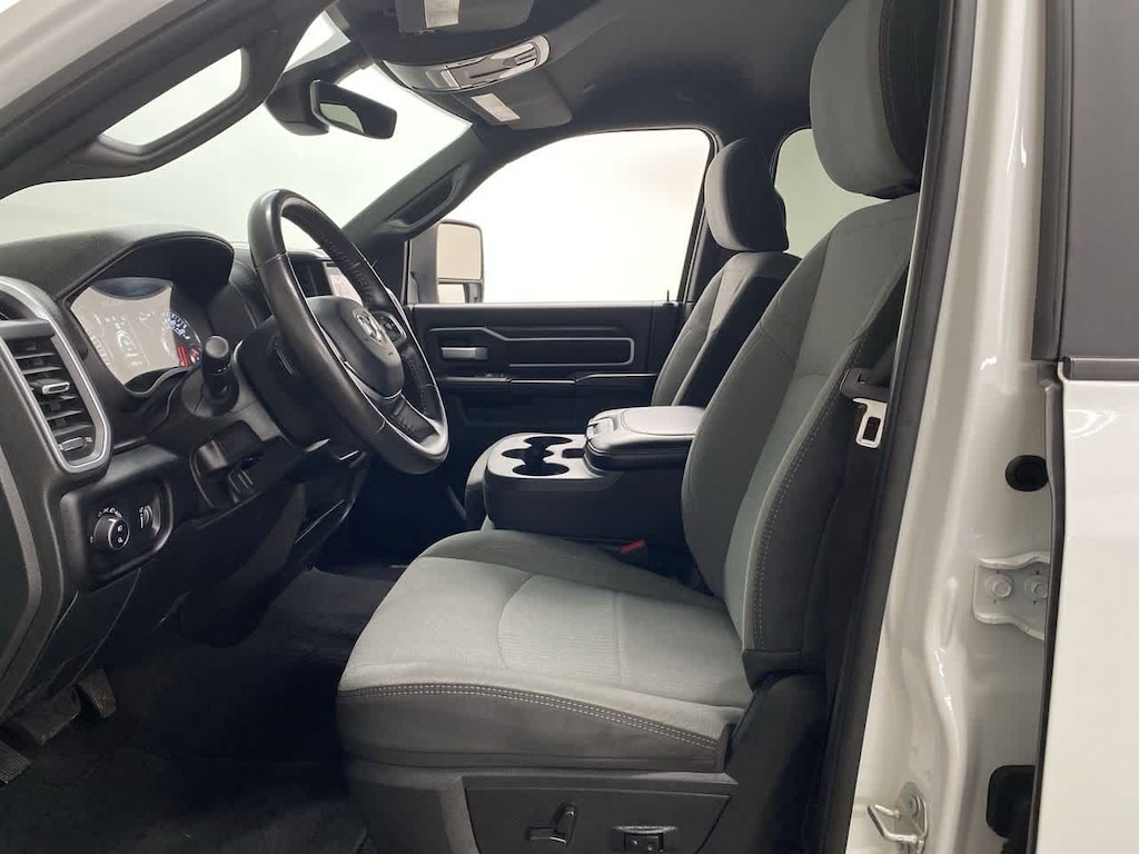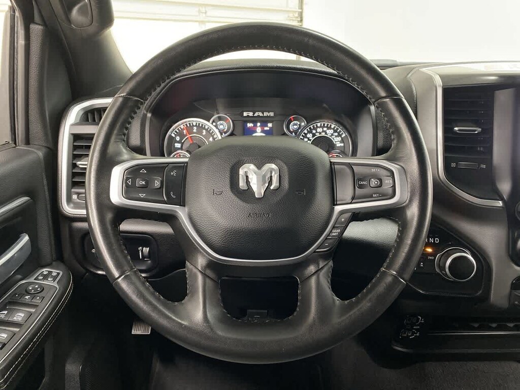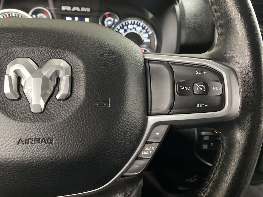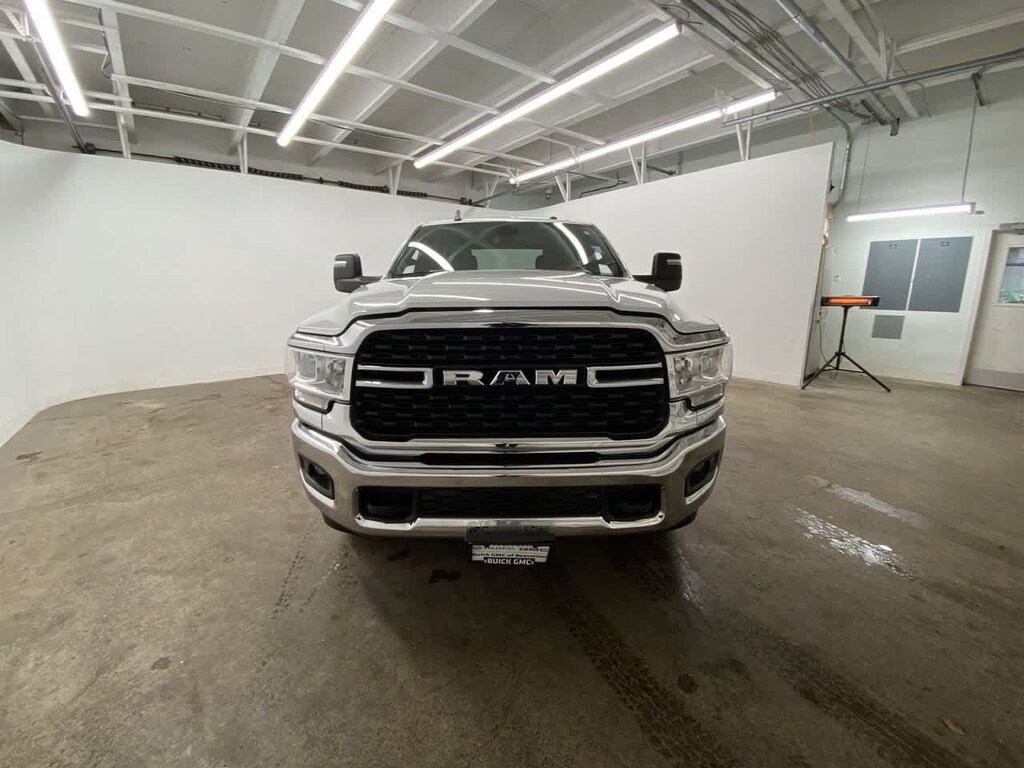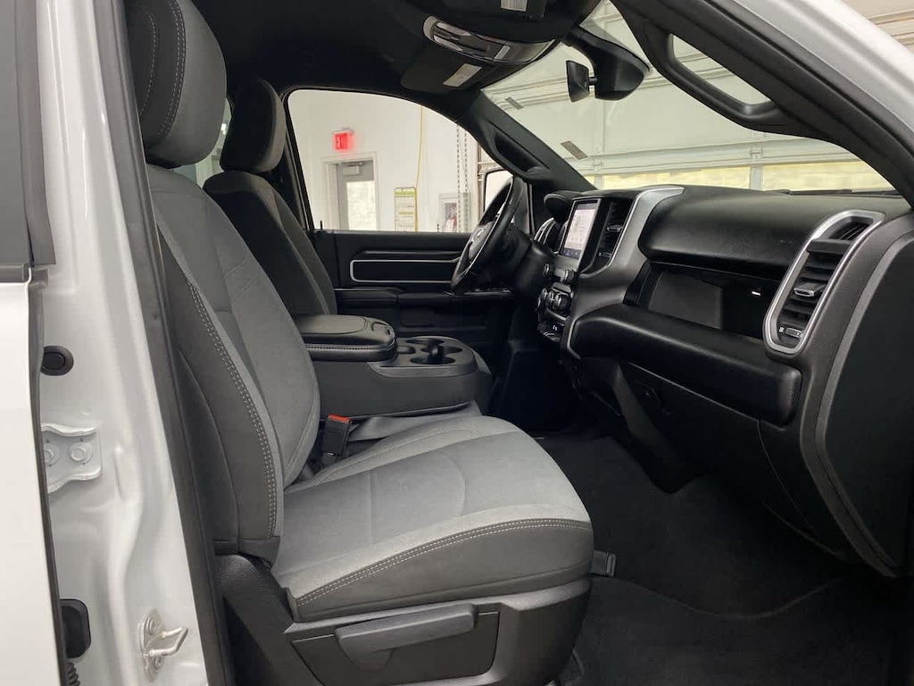 DIESEL GRAY/BLACK, PREMIUM CLOTH 40/20/40 BENCH SEAT Storage Tray, Rear 60/40 Folding Seat, Front Armrest w/Cupholders, Remote USB Port - Charge Only, Front Center Seat Cushion Storage, Manual Adjust 4-Way Front Passenger Seat, Power Adjust 8-Way Driver Seat, Front Seat Back Map Pockets, Power 2-Way Driver Lumbar Adjust, CHROME FLAT CAB-LENGTH SIDE STEPS, LEVEL 1 EQUIPMENT GROUP Google Android Auto®, For Details, Visit DriveUconnect.com, For More Info, Call 800-643-2112, Leather Wrapped Steering Wheel, Rear Dome w/On/Off Switch Lamp, Front Fog Lamps, Glove Box Lamp, Auto Power-Folding Mirrors, Footwell Courtesy Lamp, 4G LTE Wi-Fi Hot Spot, Mirror Running Lights, Radio: Uconnect 5 W w/8.4 Display, 8.4 Touchscreen Display, Foam Bottle Insert (Door Trim Panel), Wheels: 18 x 8.0 Polished Aluminum, Apple CarPlay®, Big Horn IP Badge, Power Adjustable Convex Aux Mirrors, Forward & Reverse Utility Lights, Locking Lower Glove Box, Selectable Tire Fill Alert, SiriusXM Satellite Radio, Power Heated Fold Telescope Mirrors, Exterior Mirrors w/Supplemental Signals, Steering Wheel Mounted Audio Controls, Exterior Mirrors Courtesy Lamps, Dual Glove, TRANSMISSION: 8-SPEED AUTO (8HP75-LCV) (STD), ENGINE: 6.4L V8 HEAVY DUTY HEMI MDS (STD). Privacy Glass, Keyless Entry, Child Safety Locks, Electronic Stability Control, Brake Assist.